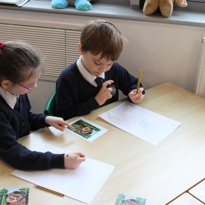 In the EYFS, the children begin to develop their fine motor skills and complete purposeful tasks to create a range of creative mediums. In Little Kingfisher Day Nursery, they celebrate artwork with their ‘Every child is an Artist’ display exploring a range of mediums and providing a variety of experiences. As they progress into Key Stage 1, the children then continue to build on these skills when looking at the work of Arcimboldo, Kandinsky, Matisse, Rousseau, Quentin Blake, Robert Delaunay and many more to have experience with a range of mediums.