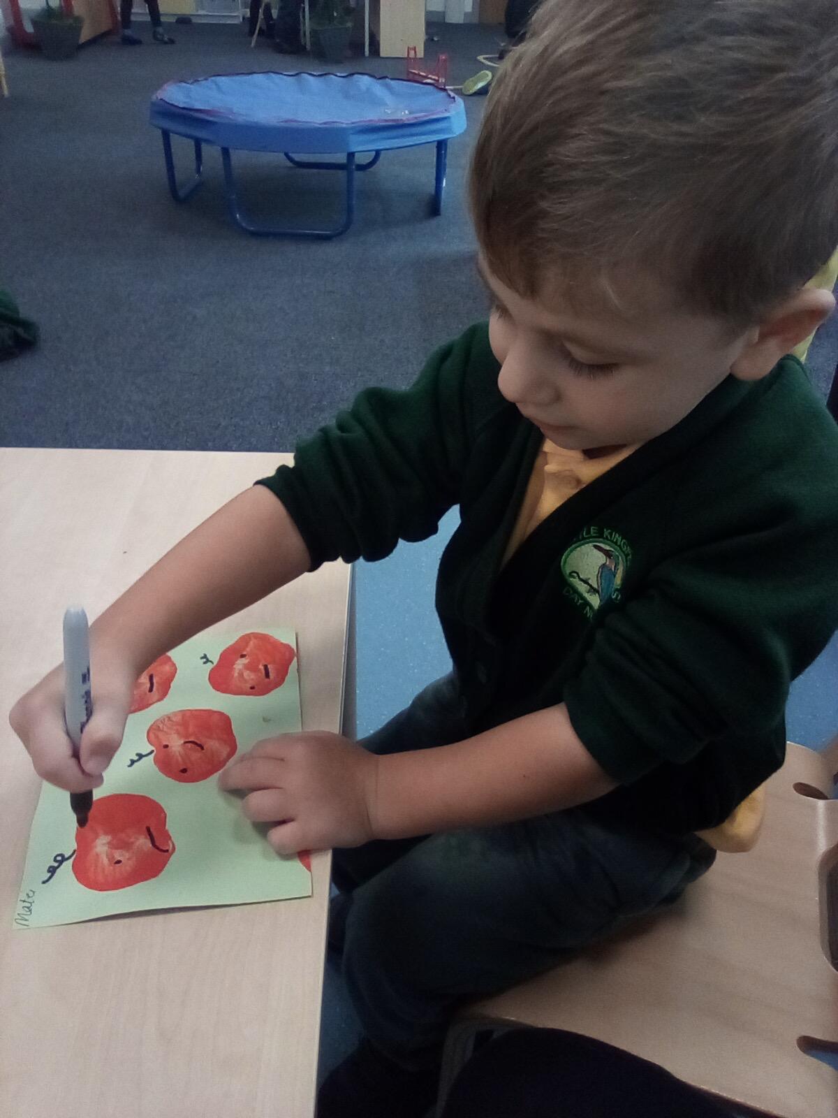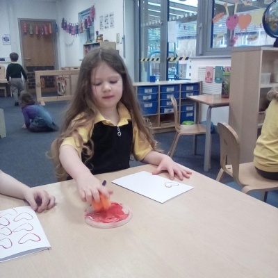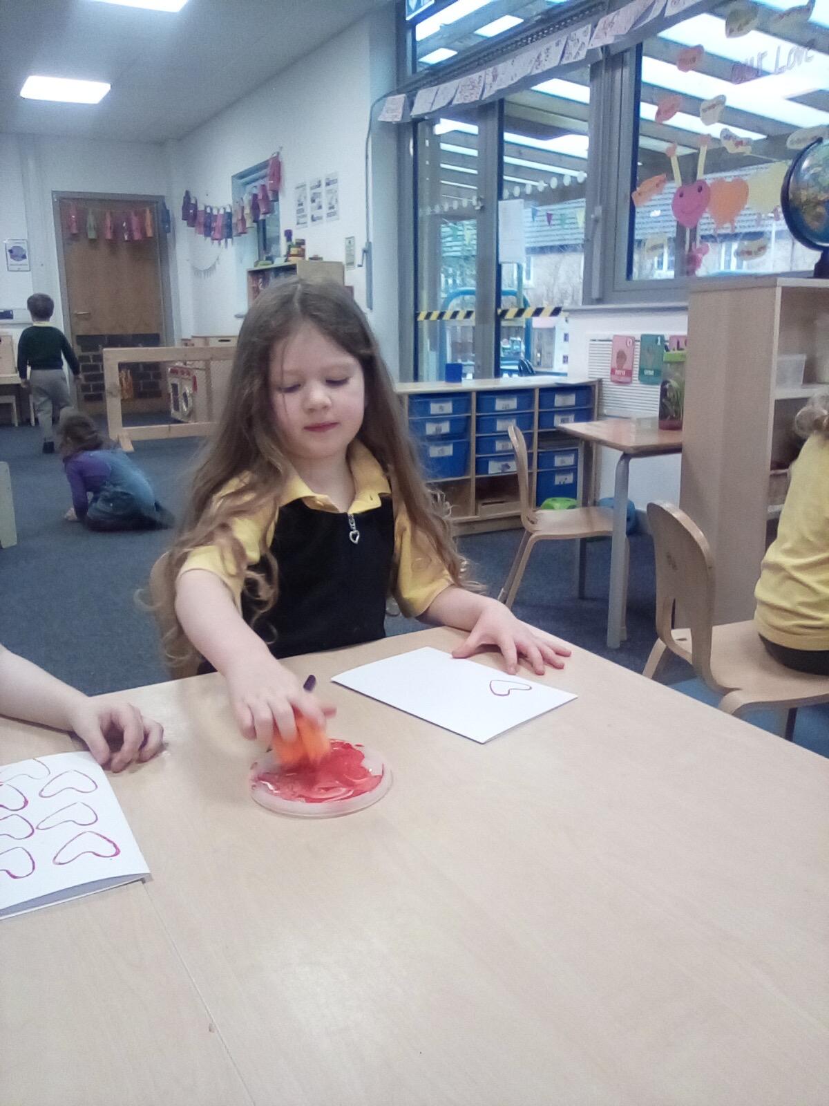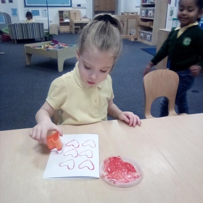 "I like drawing with crayons and painting love hearts using paint brushes." - Freya, Reception.