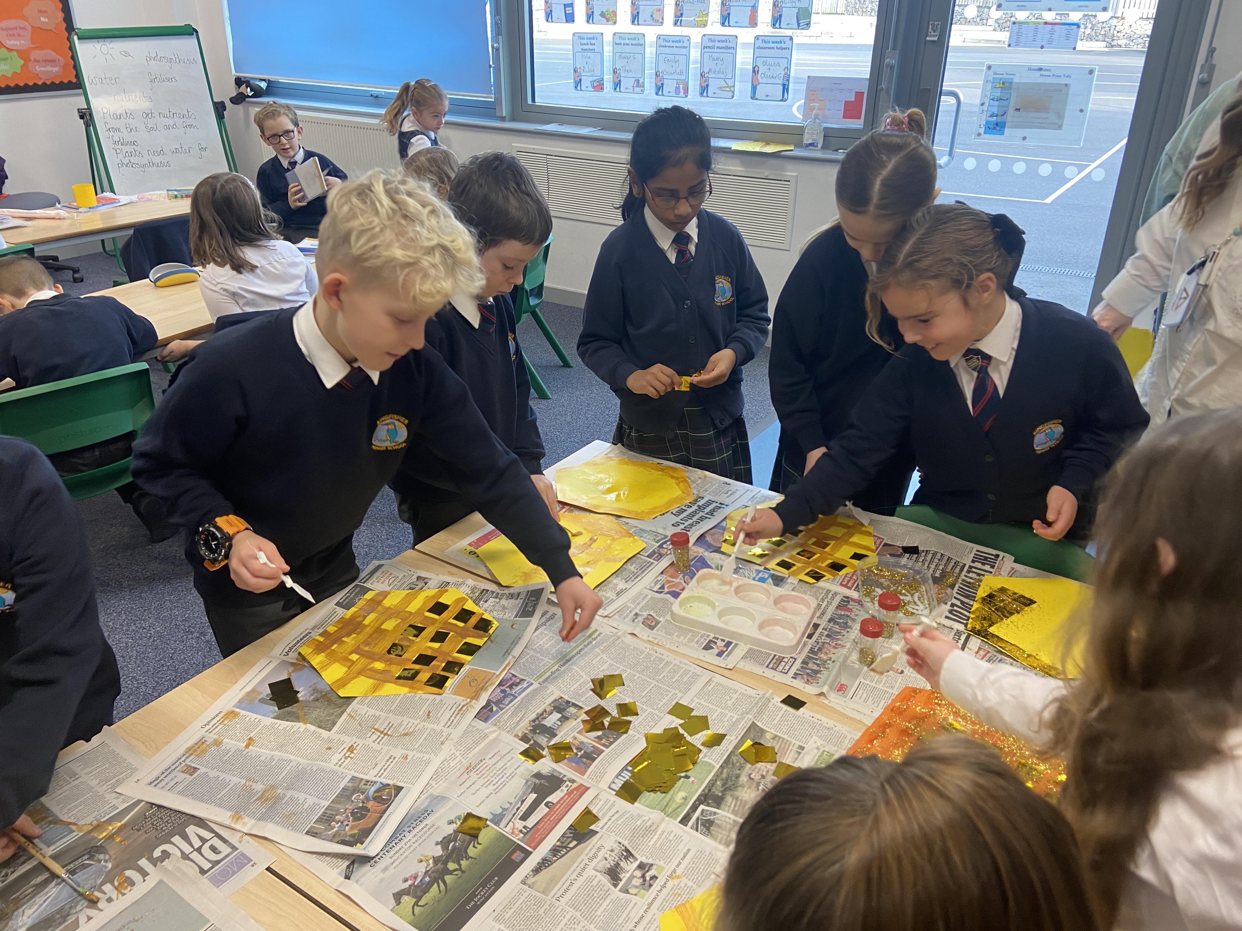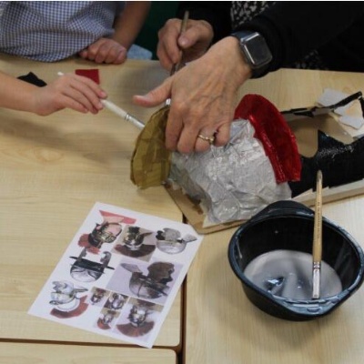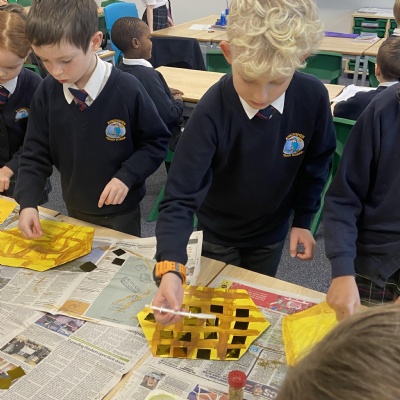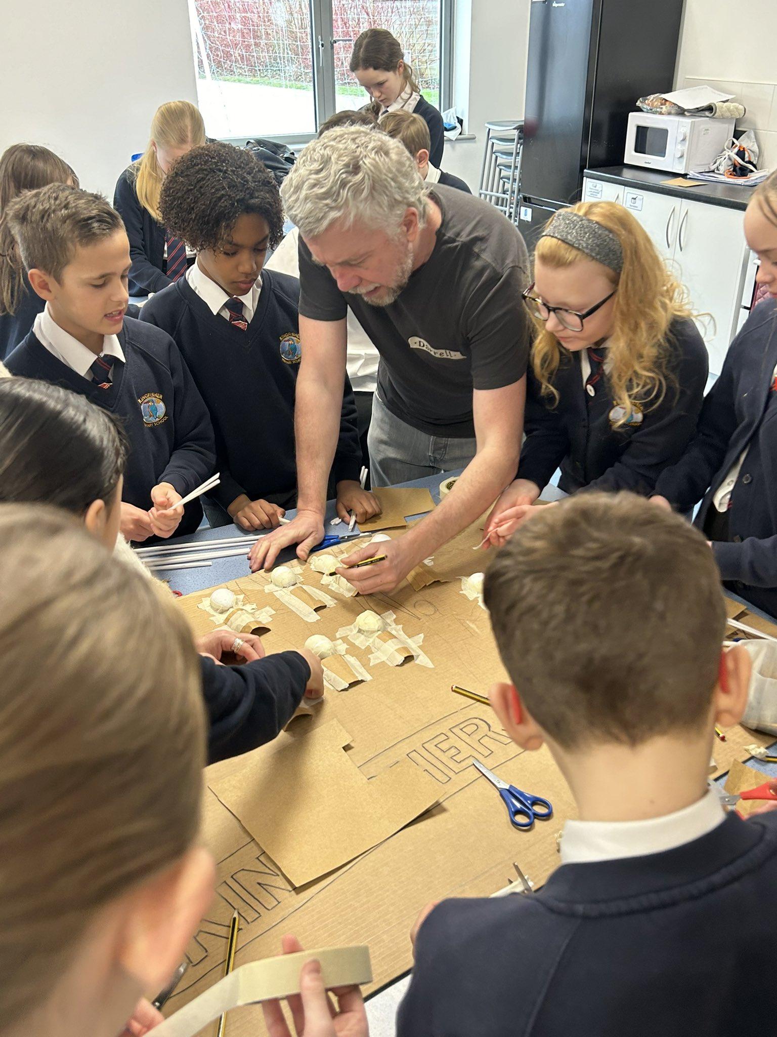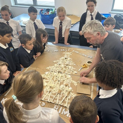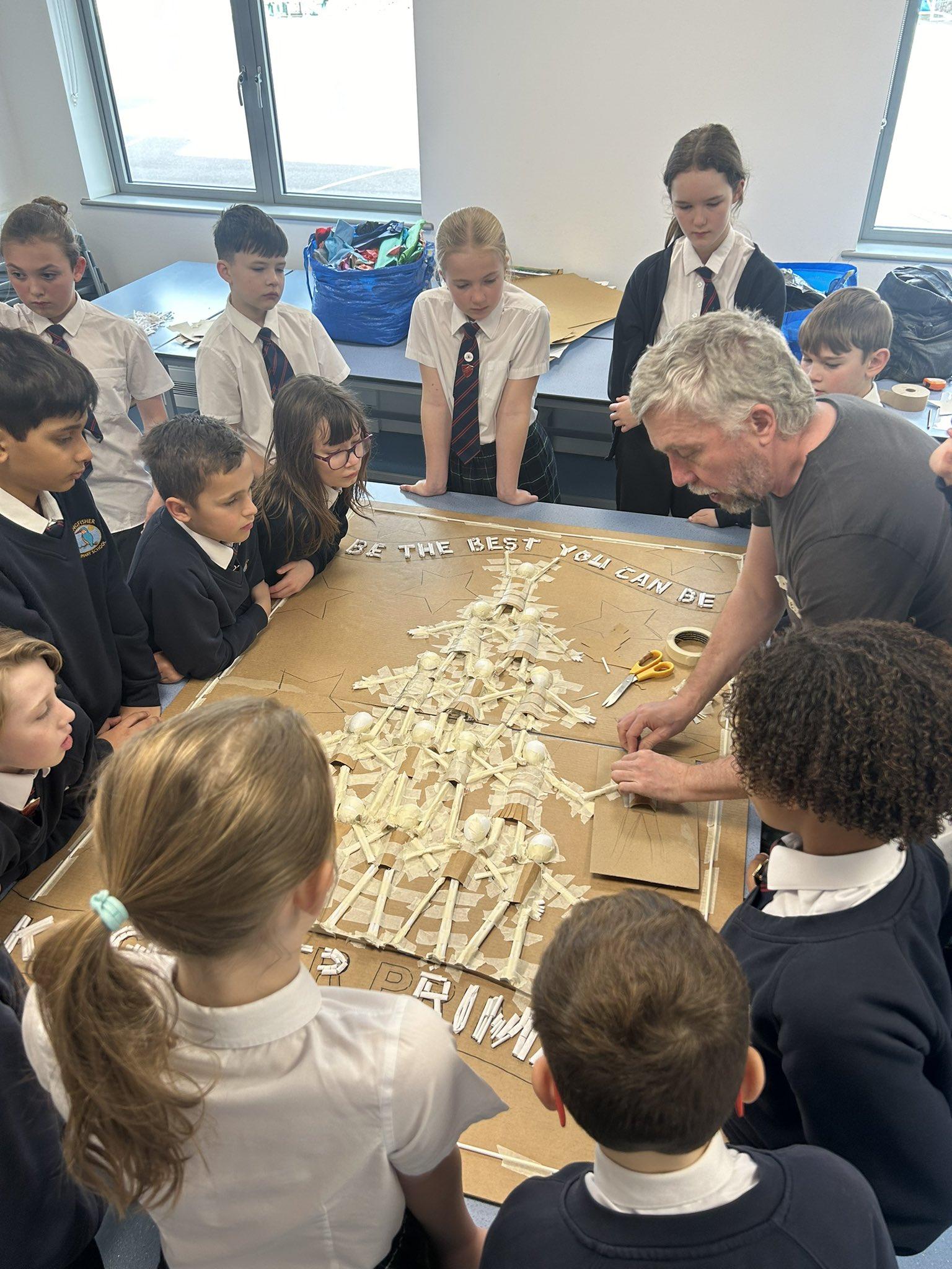We are incredibly fortunate to have the wonderful Darrell Wakelam, author of ‘Art Shaped’, visit and deliver incredible family learning sessions for our children and community. Darrell is an incredibly talented artist who uses recyclable materials, to create collaborative sculptures and displays around our school. He teaches the children to manipulate paper straws and cardboard to create these incredible design pieces and structures, which they then collage with tissue paper and PVA glue. You will find evidence of these amazing pieces showcased around our school.