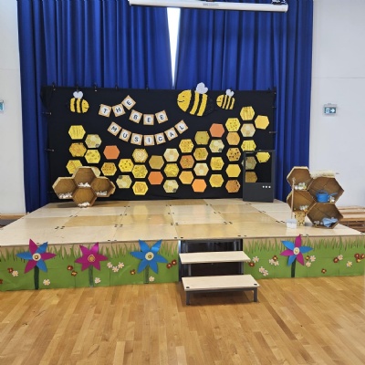The children and staff in Otter Class worked ‘un-bee-lievably’ hard on their class production. The children contributed towards the set production through applying their painting and collaging skills when creating their honeycomb for the backdrop. They then improved their collaging skills further when making flowers for the front of the stage too. It was incredible to see the diversity in each piece made by the children. Thank you to Mrs Streetin and Miss Wolny for all your hard work with supporting our students in making this incredible set.