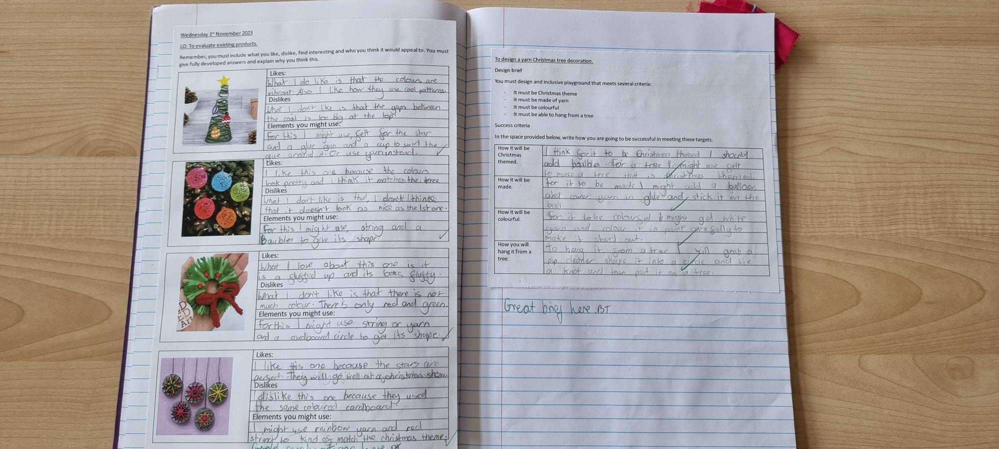 At Kingfisher Primary School, Design and Technology (DT) is carefully monitored and documented through a systematic approach. This includes sequential planning, where learning objectives are outlined and progress is recorded in DT workbooks, such as planning documents and written evaluations. Additionally, photographs capturing the application of skills and the final products serve as visual evidence of student achievement.