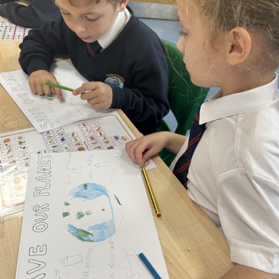Minnows loved learning about ways to help keep their world clean and the different bins they can use. In Year 3, the children wrote persuasive letters, investigated carbon footprints and created climate change posters. Pupils in Year 5 enjoyed engaging in debates about environmental topics while pupils in Year 2 created some super posters too, learned about rising sea levels and had a great outdoor learning session with Mrs Huggins. Eco-Councillors felt better informed about the ways they want to further improve our school environment and the wider world for everyone.