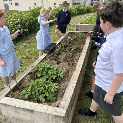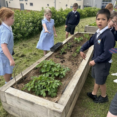 • The children have started to grow their own produce in our planters on the field and are working hard to maintain these. Including potatoes, peas, and some green beans.