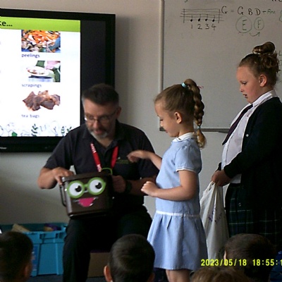 On Thursday 20th November 2025, we were very fortunate to have Gary and Kate from Carymoor come into school and lead an assembly raising awareness on the importance of recycling. Years 1, 2, 4 and 5 were also fortunate enough to receive workshops with them throughout the day.