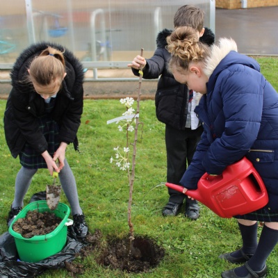 Our fabulous fruit trees have been planted by some hard working pupils this morning. It has been lovely to see the children so engaged in helping with the planting process and we can't wait to see our fruit blossom on the trees! We are incredibly proud of our apple and pear trees and hope you enjoy looking at them as you enter via the Nursery entrance.