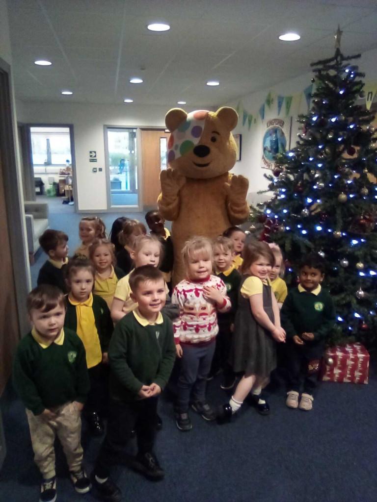 Pudsey came to visit the children at Little Kingfishers’ Day Nursery to say a big thank you for all their amazing fundraising efforts for Children in Need. The children were so excited to meet Pudsey in person. There were plenty of smiles, cuddles, and even a few high-fives!
