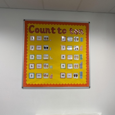 Children are introduced to number (starting with the numbers 1 – 5 ), through both discrete lessons and activities and through targeted questioning by staff. As well as this, children learn songs and rhymes to help them understand what numbers are and how they are used. To further enhance the learning of number, children are taught subitising through a variety of number games, planned activities or learning opportunities. Children are shown number in differing ways and reasoning is introduced with children being promoted to explain their answers such as how did you make 4.