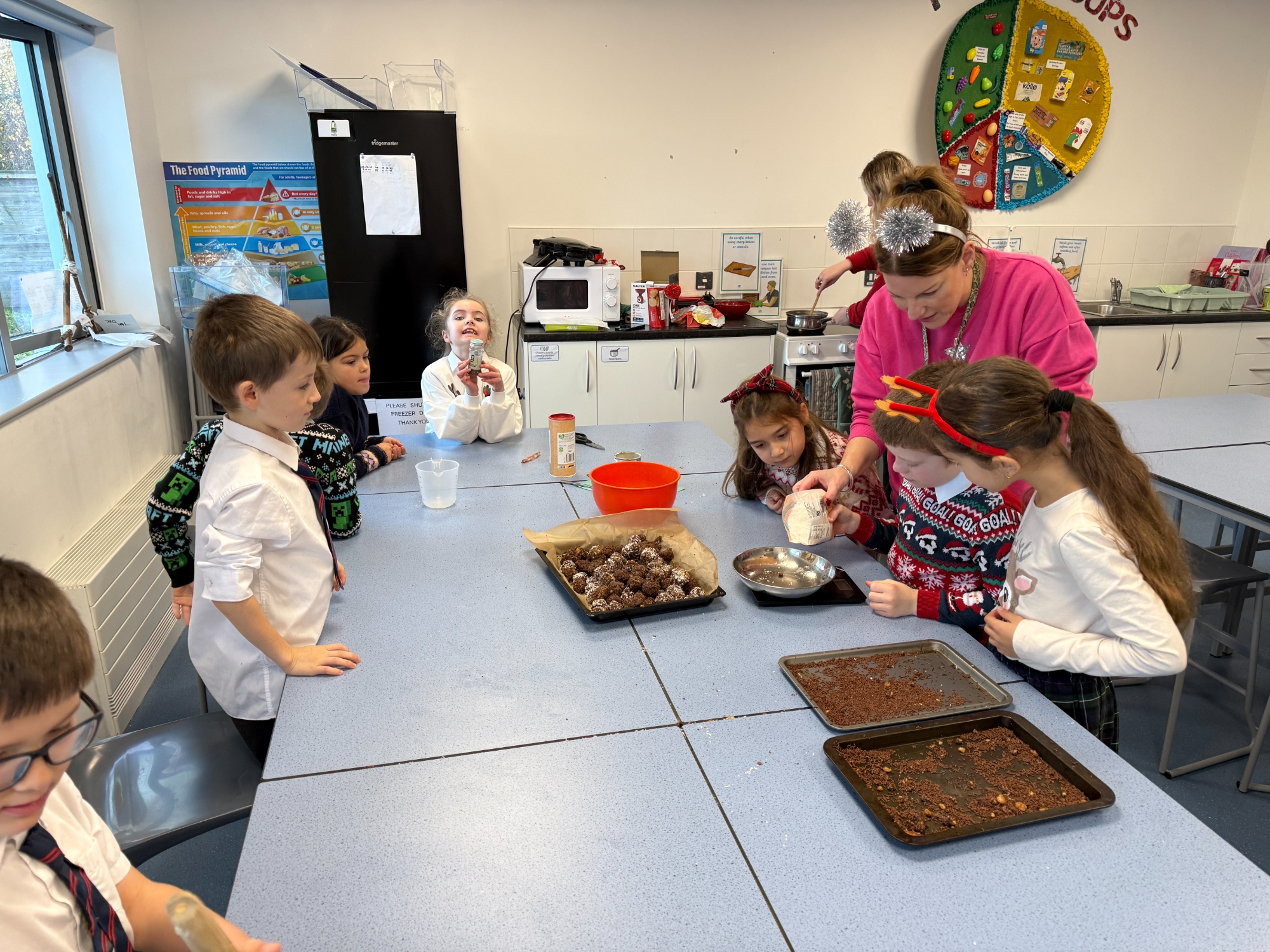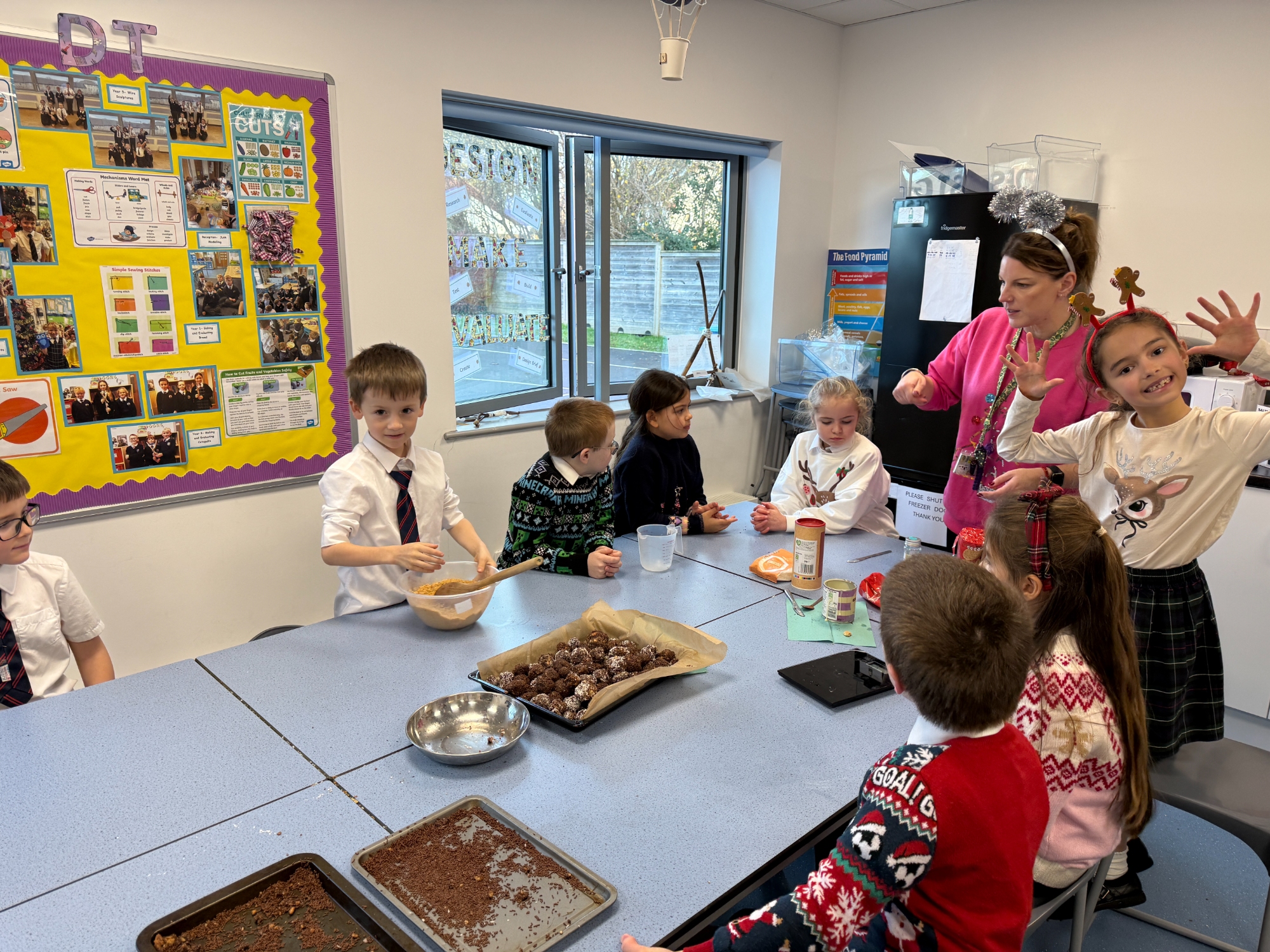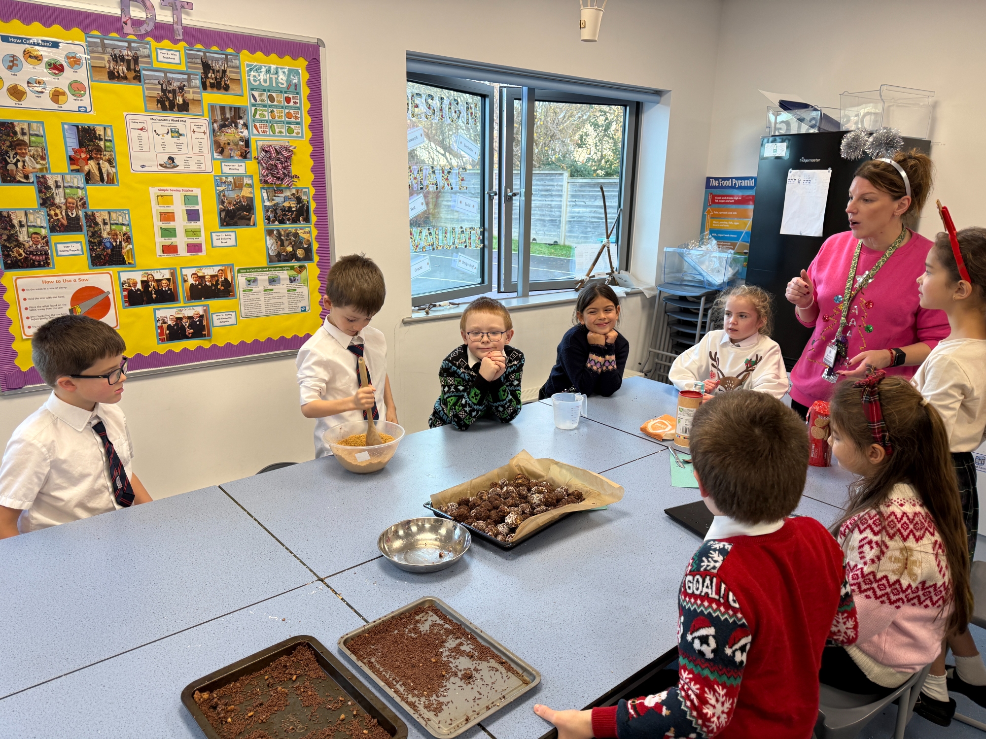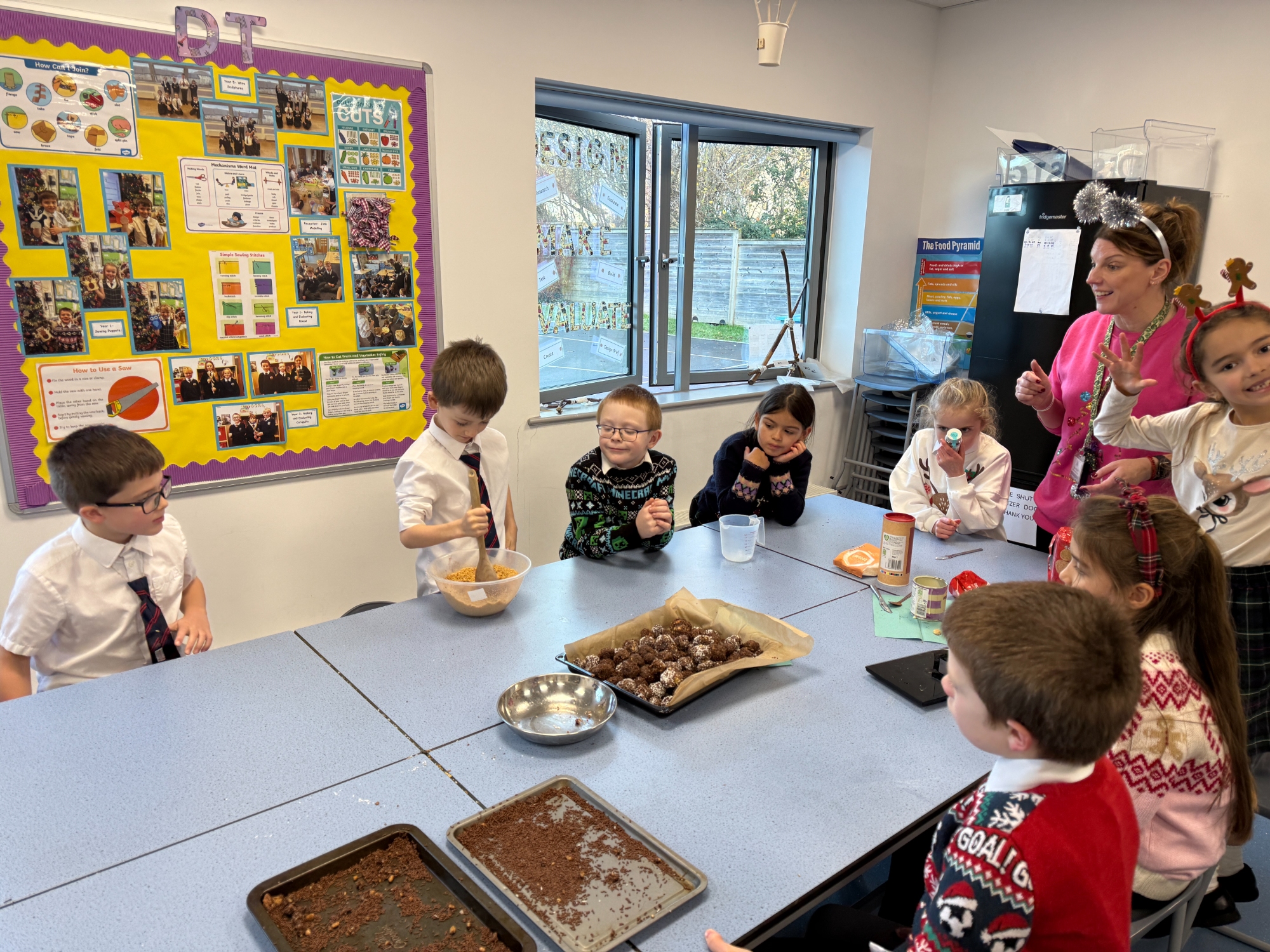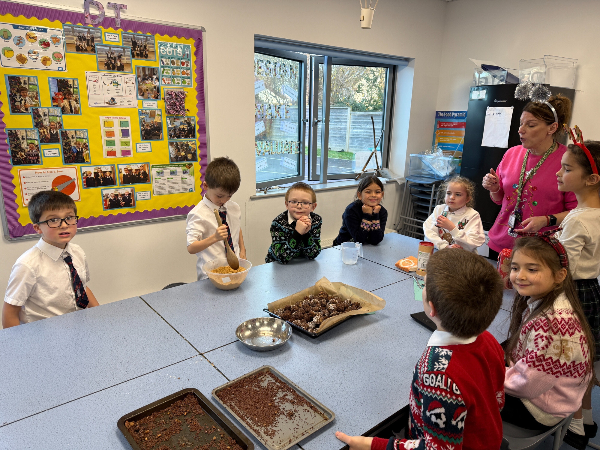 As part of their exciting DT project, the children had a fantastic time creating delicious chocolate truffles for their Christmas boxes. From start to finish, the classroom was filled with excitement (and the wonderful smell of chocolate!) as the children carefully followed instructions, measured ingredients, and mixed their truffles with great concentration. They showed real determination and teamwork while shaping and decorating their creations, taking pride in every step of the process.