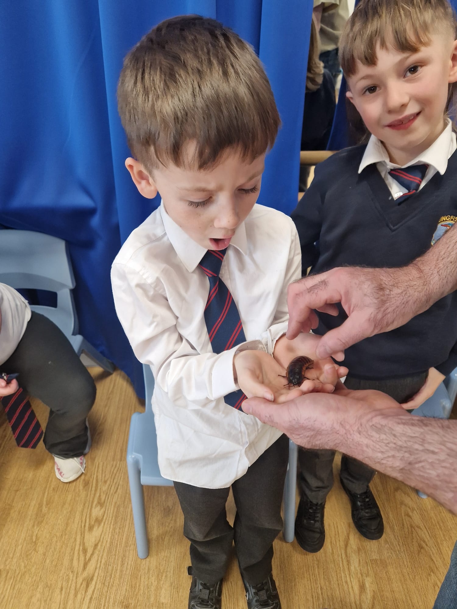 The children in Otter Class had a fantastic afternoon when Bugfest came to visit! Excitement filled the room as they met a fascinating range of creepy critters from around the world. The children bravely held stick insects, cockroaches, millipedes and even a gentle tarantula, learning how each creature moves and survives. They discovered how different habitats provide food, shelter and protection, and explored how ecosystems depend on every living thing, no matter how small. The session sparked curiosity and lots of thoughtful questions. By the end of the afternoon, Otter Class had not only overcome a few fears but had gained a wonderful understanding of minibeasts and their importance.