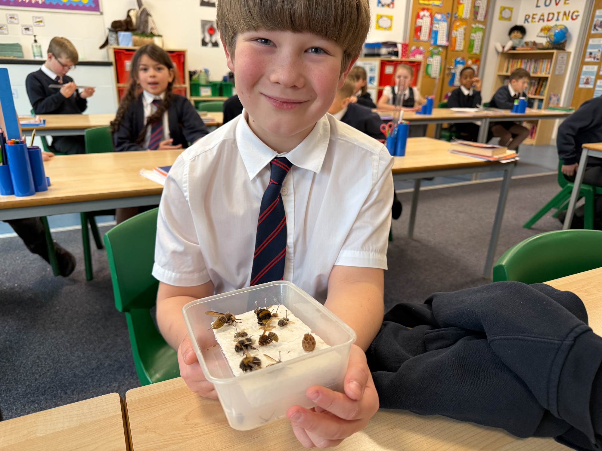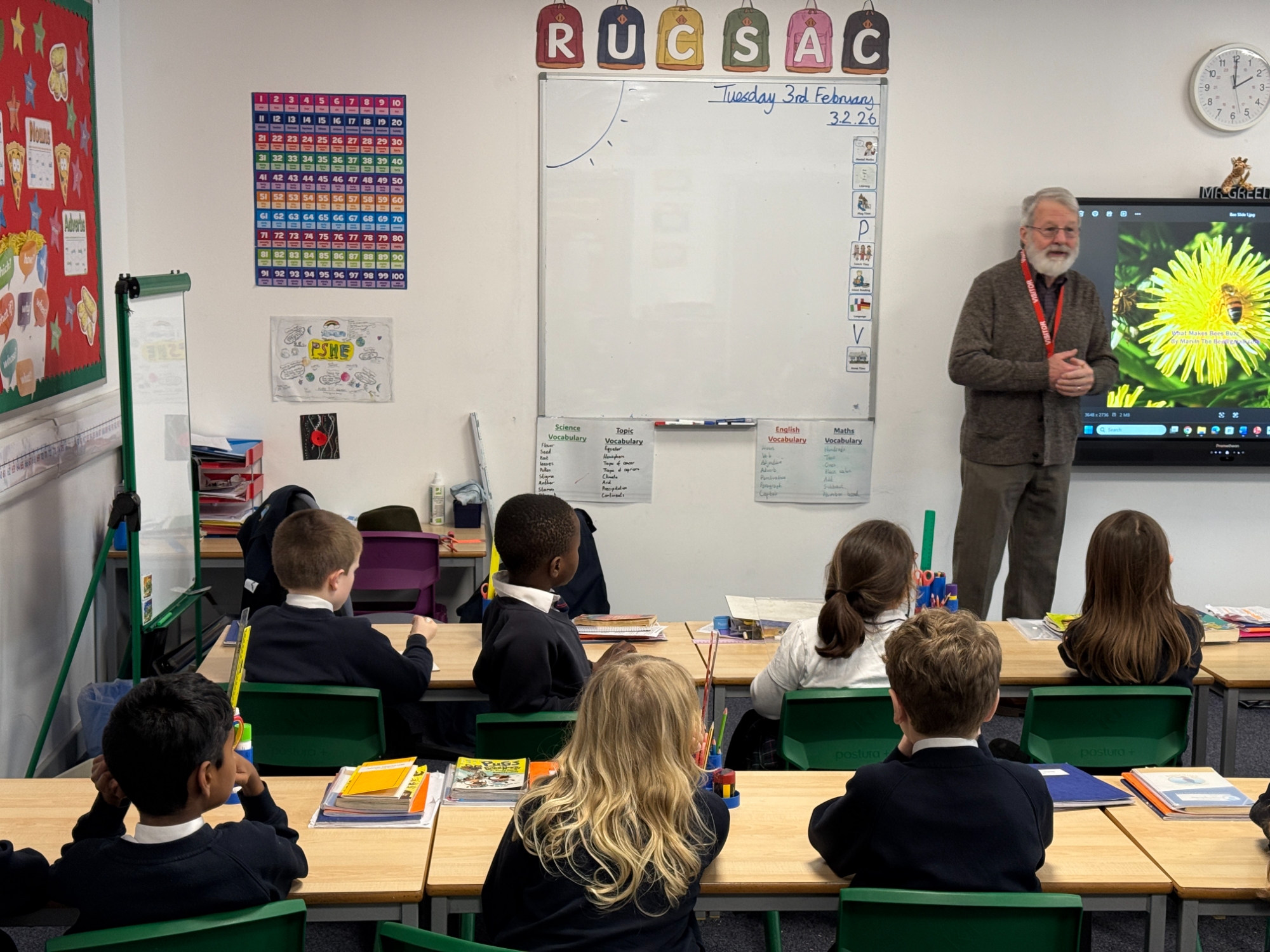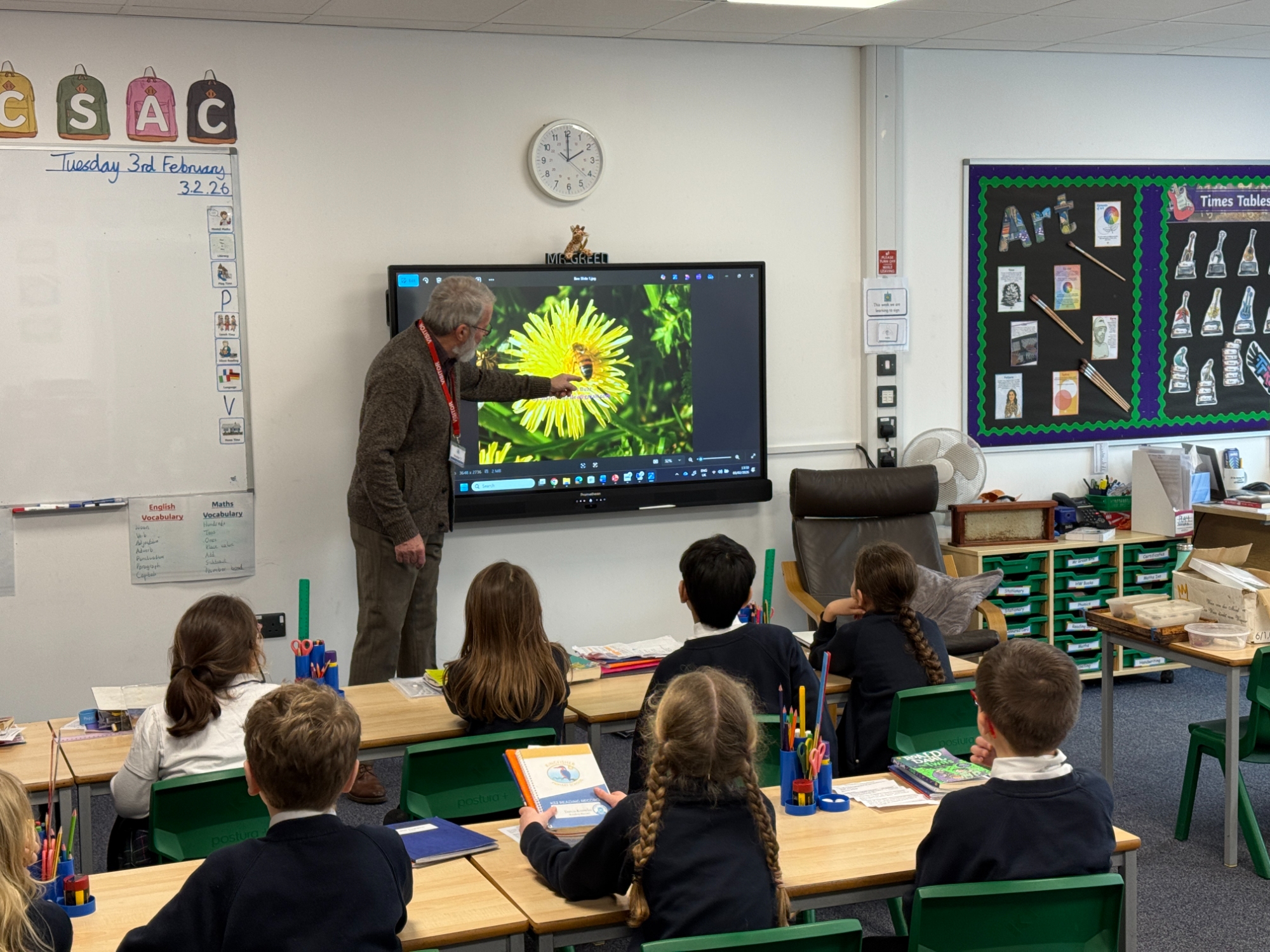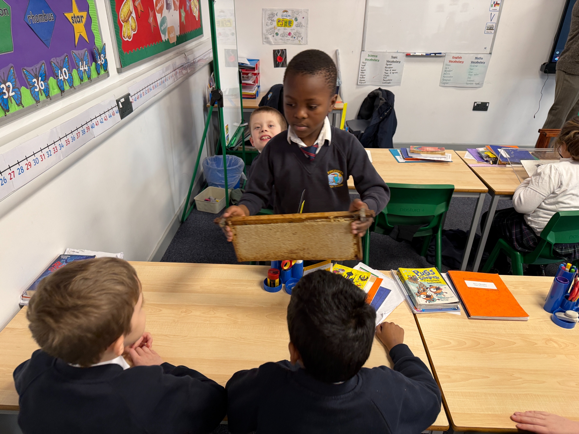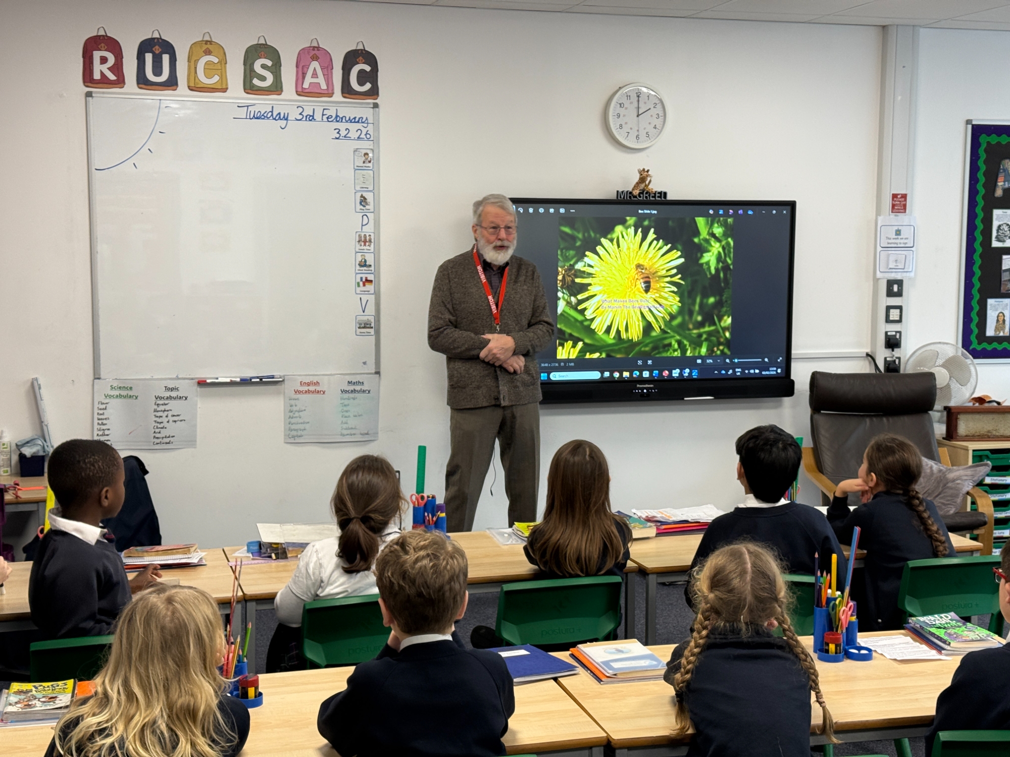 We were delighted to welcome Marvin into school today for a fascinating visit all about his bees. The children were full of excitement as they listened carefully and asked thoughtful questions about how bees live and work together in a hive. Marvin explained the dynamics of the hive, including the roles of the queen, workers and drones, helping pupils understand how living things depend on one another.