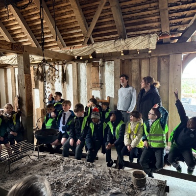 Our class had a fantastic trip to the Avalon Marshes Archaeology Centre as part of our Saxon history topic. The children showed great curiosity, confidently answering questions about the different time periods leading up to the Saxon occupation. They especially enjoyed the hands-on activities, including carving, making coins, writing with ink, and trying on traditional clothing. Everyone had a brilliant time immersing themselves in the past. Their behaviour throughout the trip was excellent, and they represented the school wonderfully. A highlight of the day was listening to a captivating story inside the Saxon longhouse, which really brought history to life.