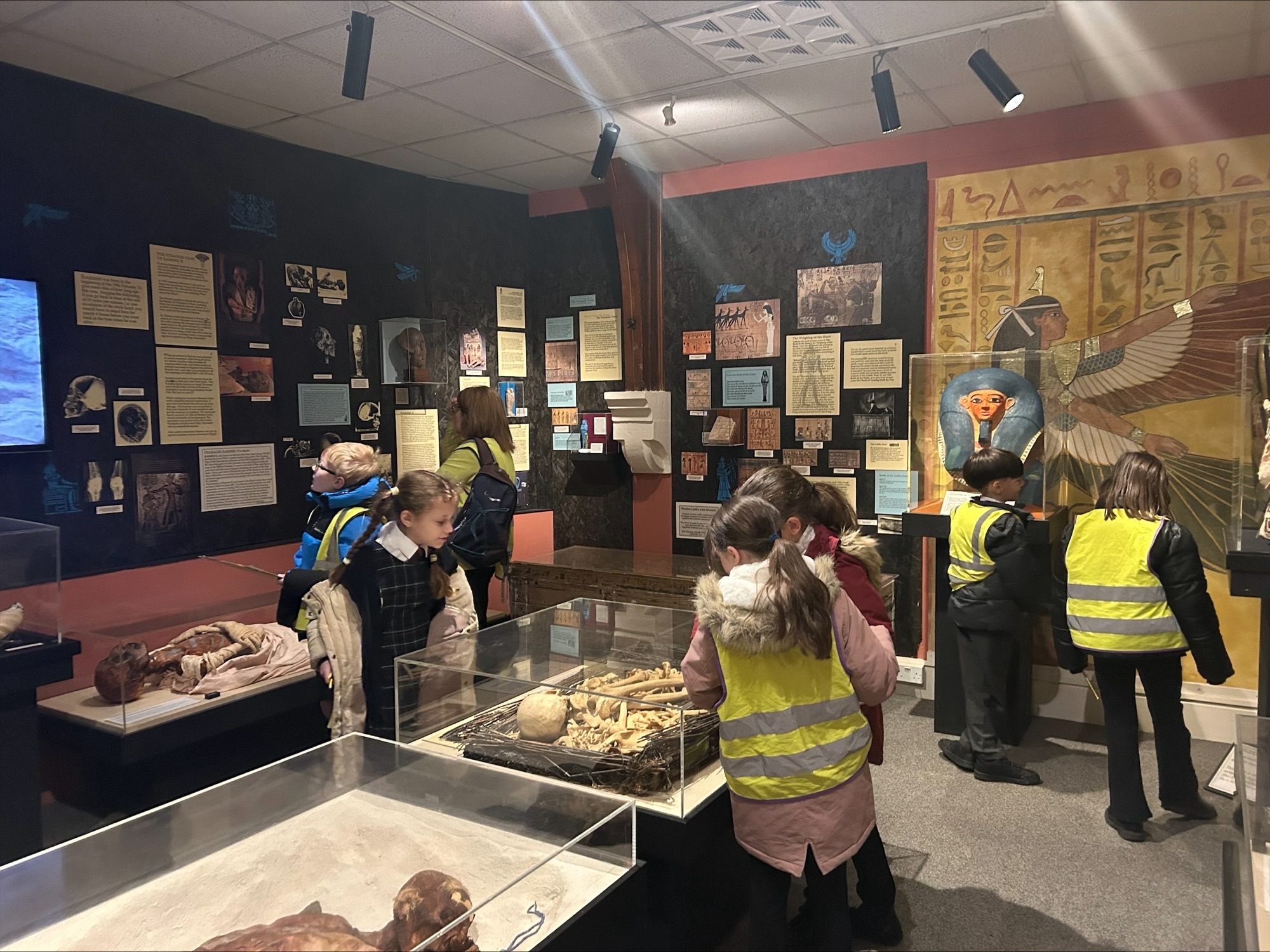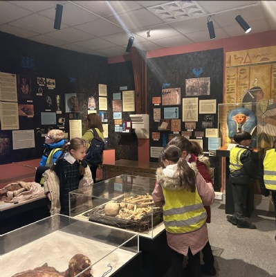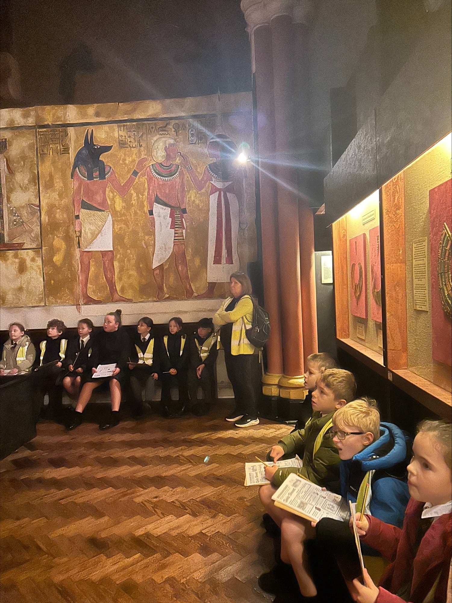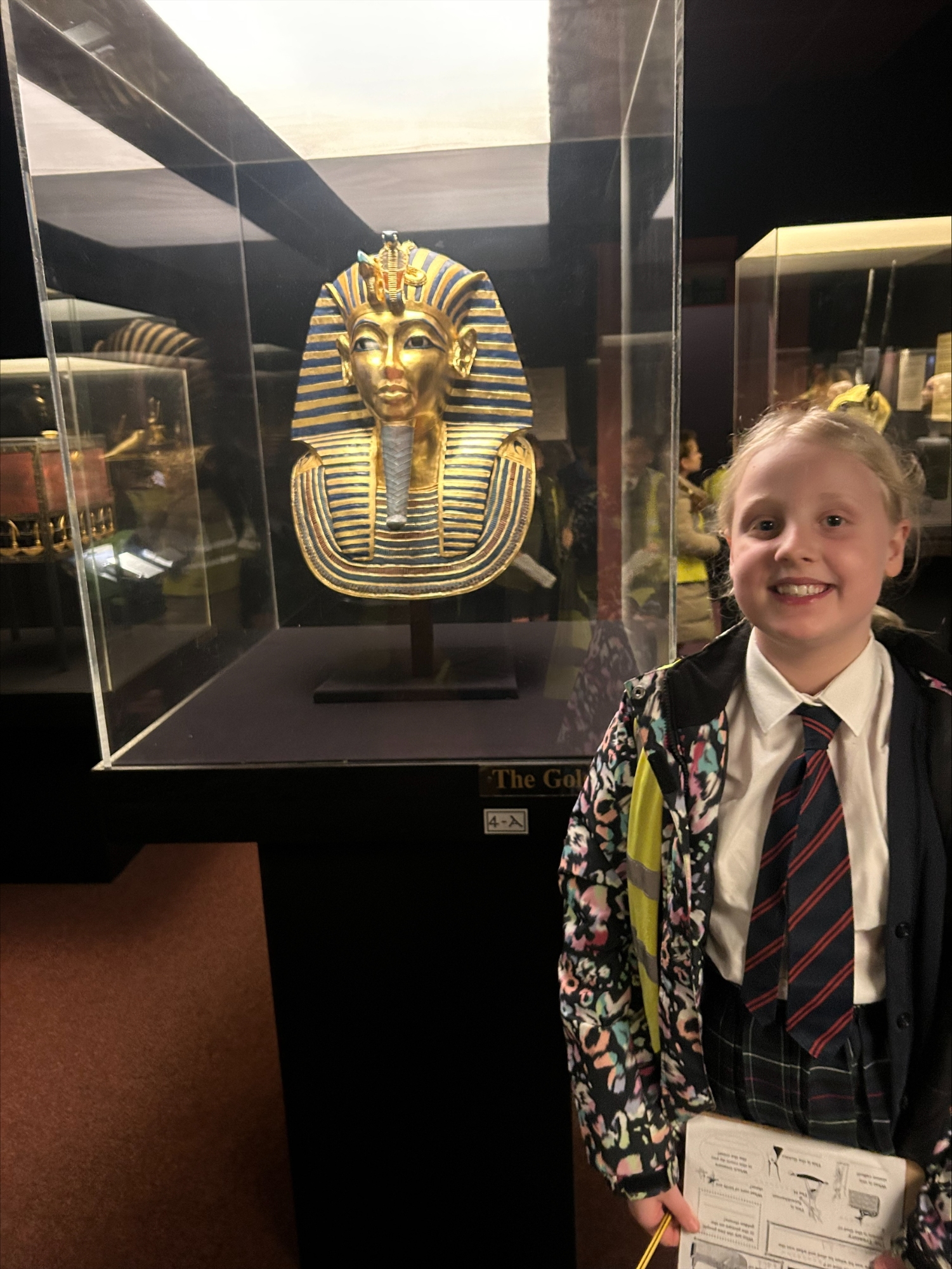 The trip to the Tutankhamun exhibition in Dorchester was an exciting and educational experience. During the visit, we took part in a fact-hunting workshop where we explored different exhibits and discovered fascinating information about the ancient Egyptian king, Tutankhamun. We learnt about his life as a young pharaoh, the treasures found in his tomb and the mystery surrounding his death. It was a fantastic opportunity to bring our history learning to life and deepen our understanding of Ancient Egypt.