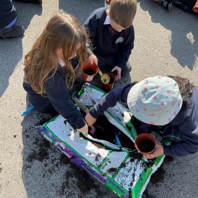 This term we have been learning about plants and growing. We started off this topic by planting some sunflower seeds. We talked about what the plants needed to grow, including sunlight, water and soil.