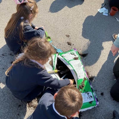 We had a lovely time on our school trip to Carymoor. We enjoyed learning all about the different parts of a plant and planting our own cress heads. We then headed outside and did a plant bingo and played the germination game. After lunch we headed down to the woods where we looked and different types of leaves on trees and make nature clay faces.