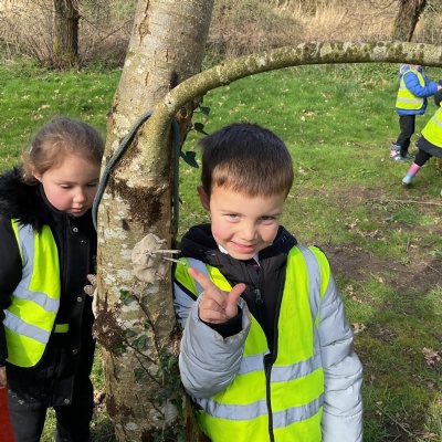 The children enjoyed going on a Winter welly walk. We wrapped up warm and set off around the school to look for signs of winter. We discussed the weather, had a look at the trees and thought about how they looked different from when we went on our Autumn welly walk.