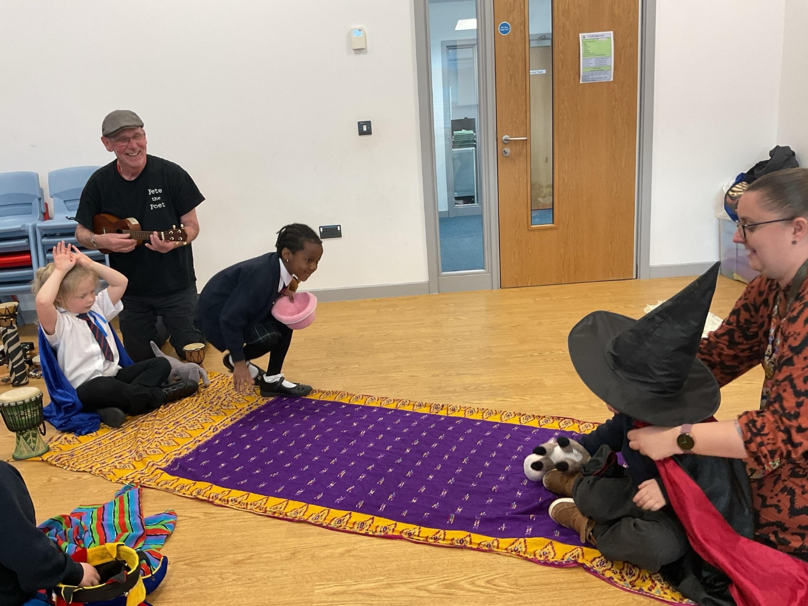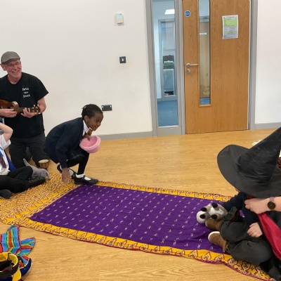 We had a great time with Pete the Poet. We enjoyed telling stories, singing songs, dressing up and exploring the instruments.