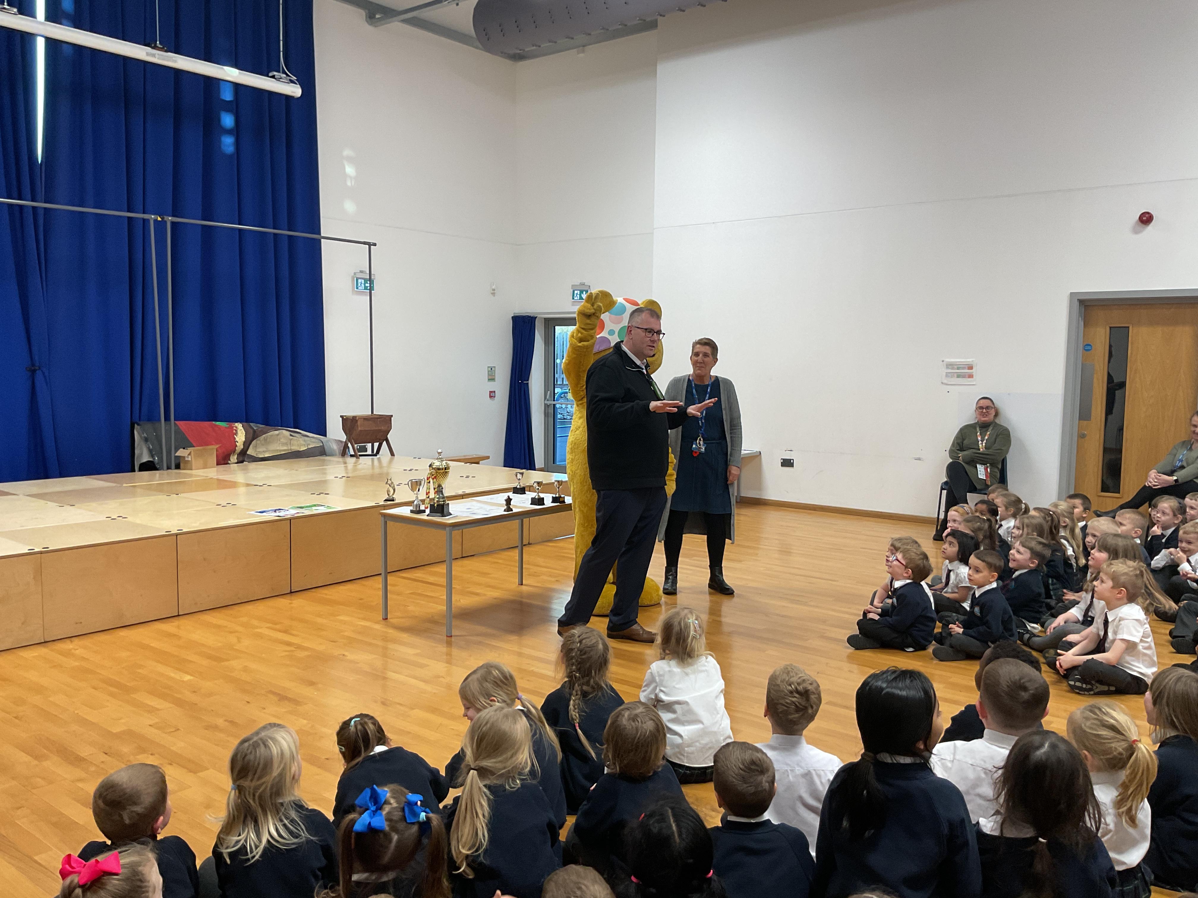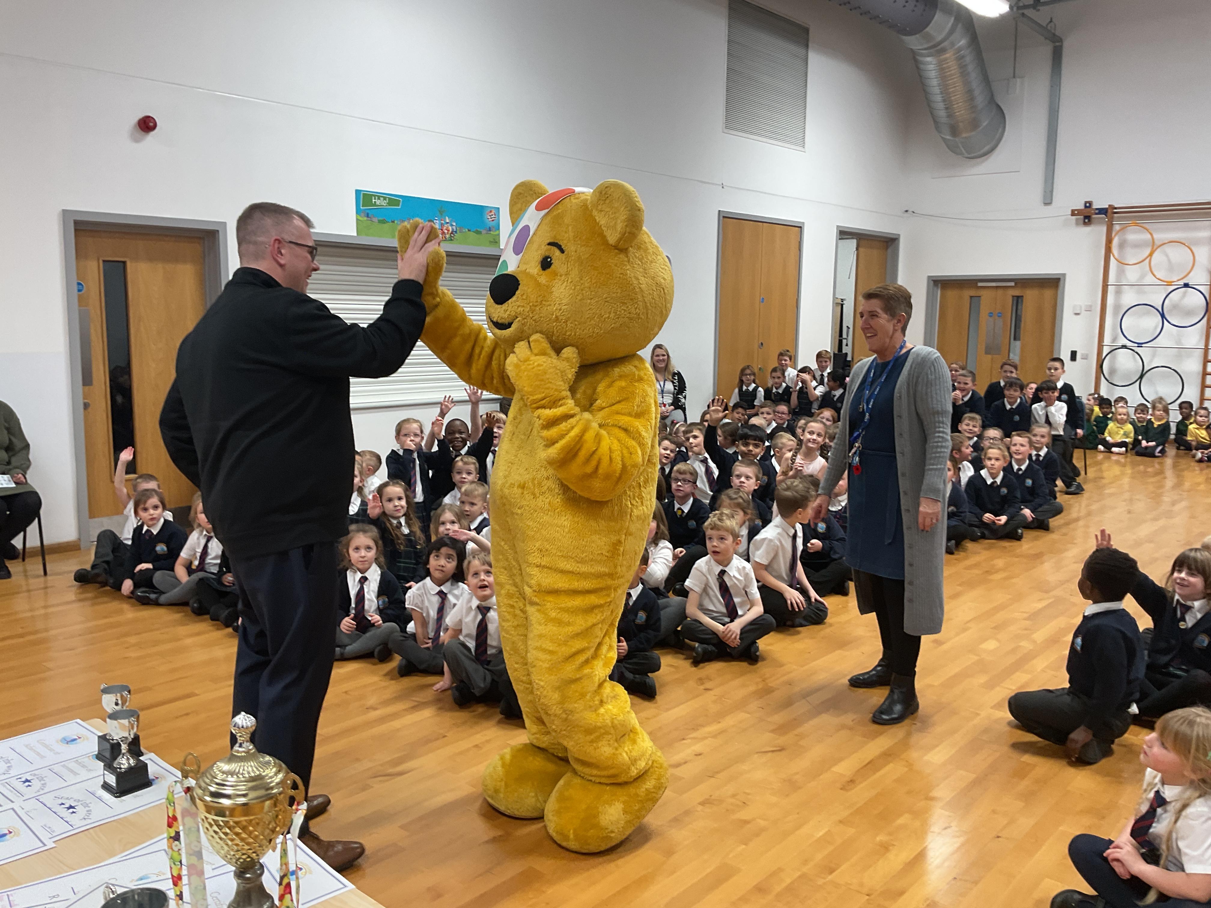 Following on from our Children in Need non-uniform day in November, we were very lucky to have Pudsey Bear visit us during Celebration Assembly following a successful Children in Need campaign.