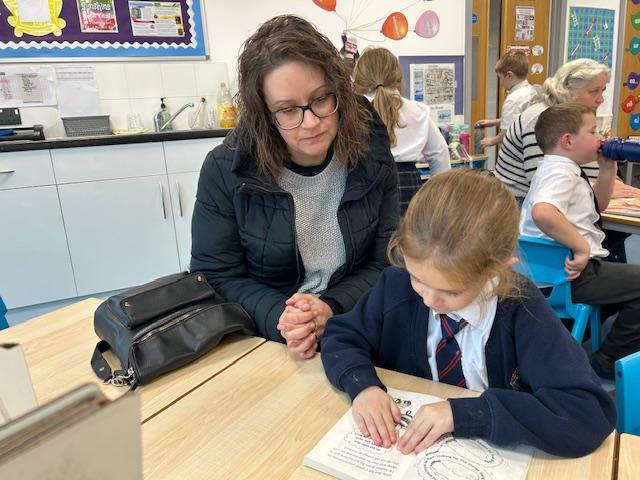 Each half-term, we invited parents and carers into school to read with their child. Our sessions are becoming more and more popular with parents, grandparents and younger siblings all enjoying books together.