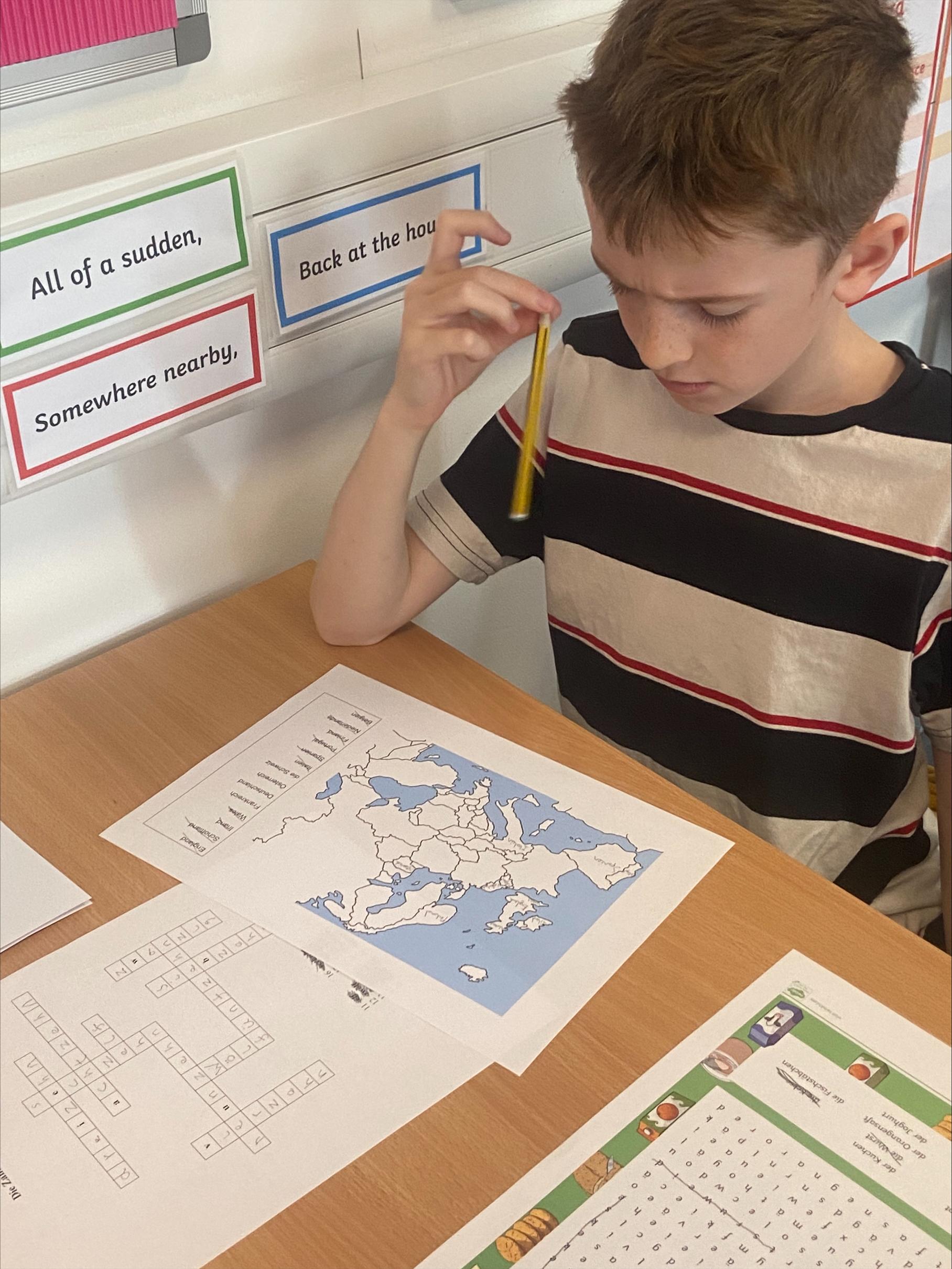 Years 2 and 3 focussed on learning some German greetings, numbers and Geography while creating their fact files.