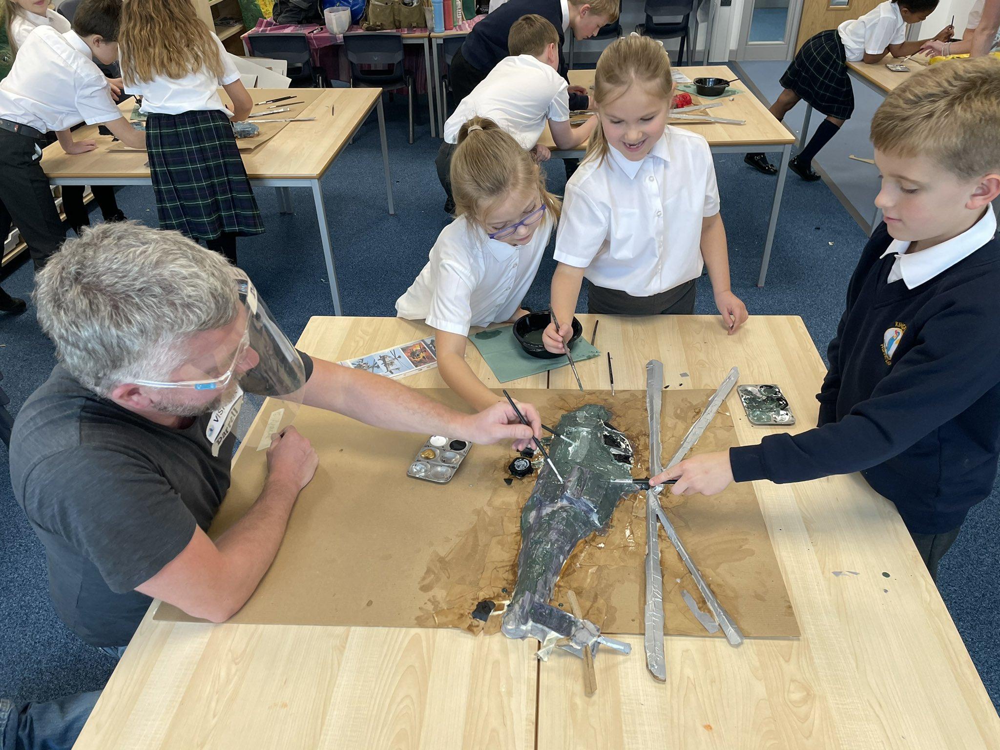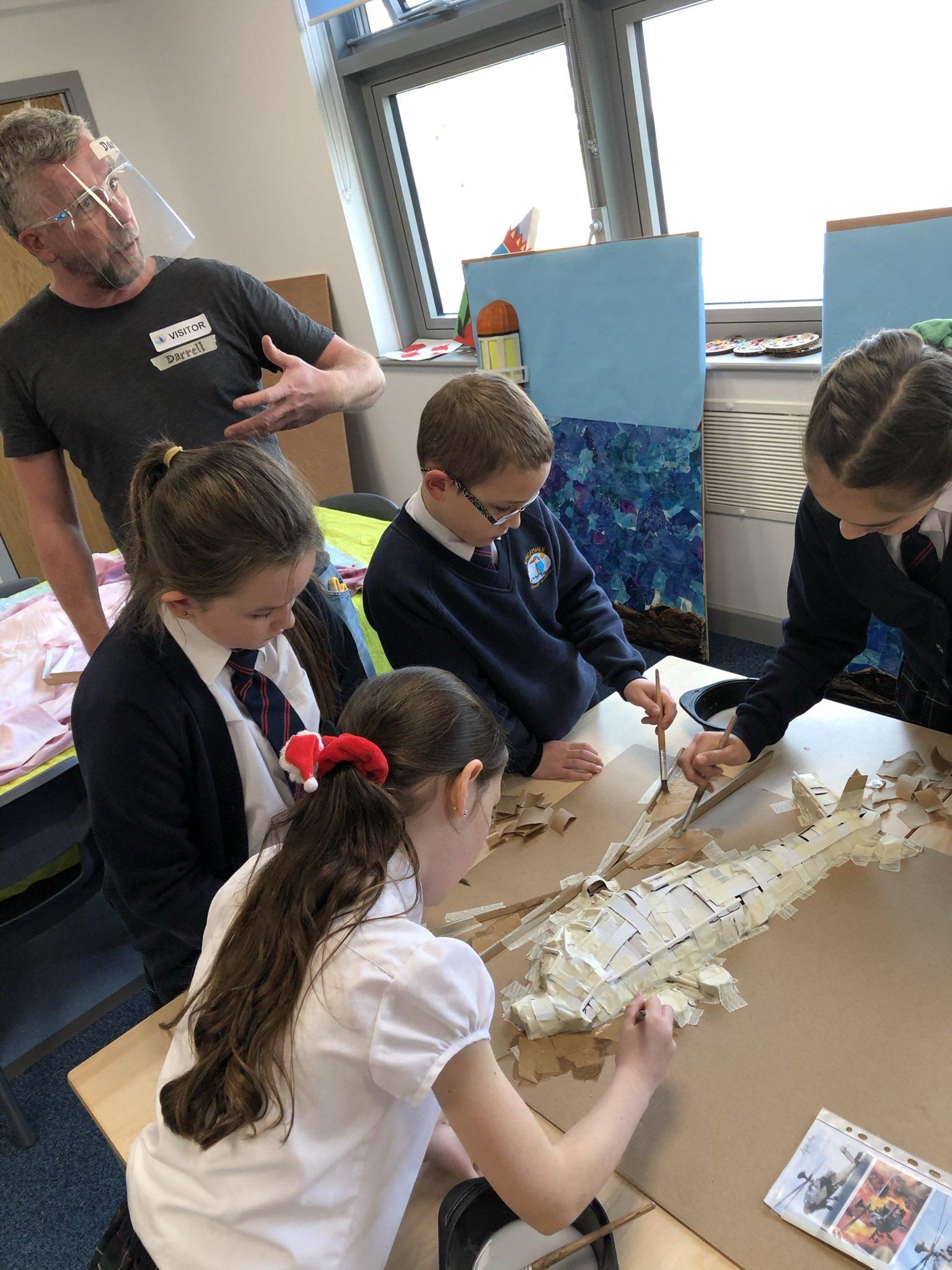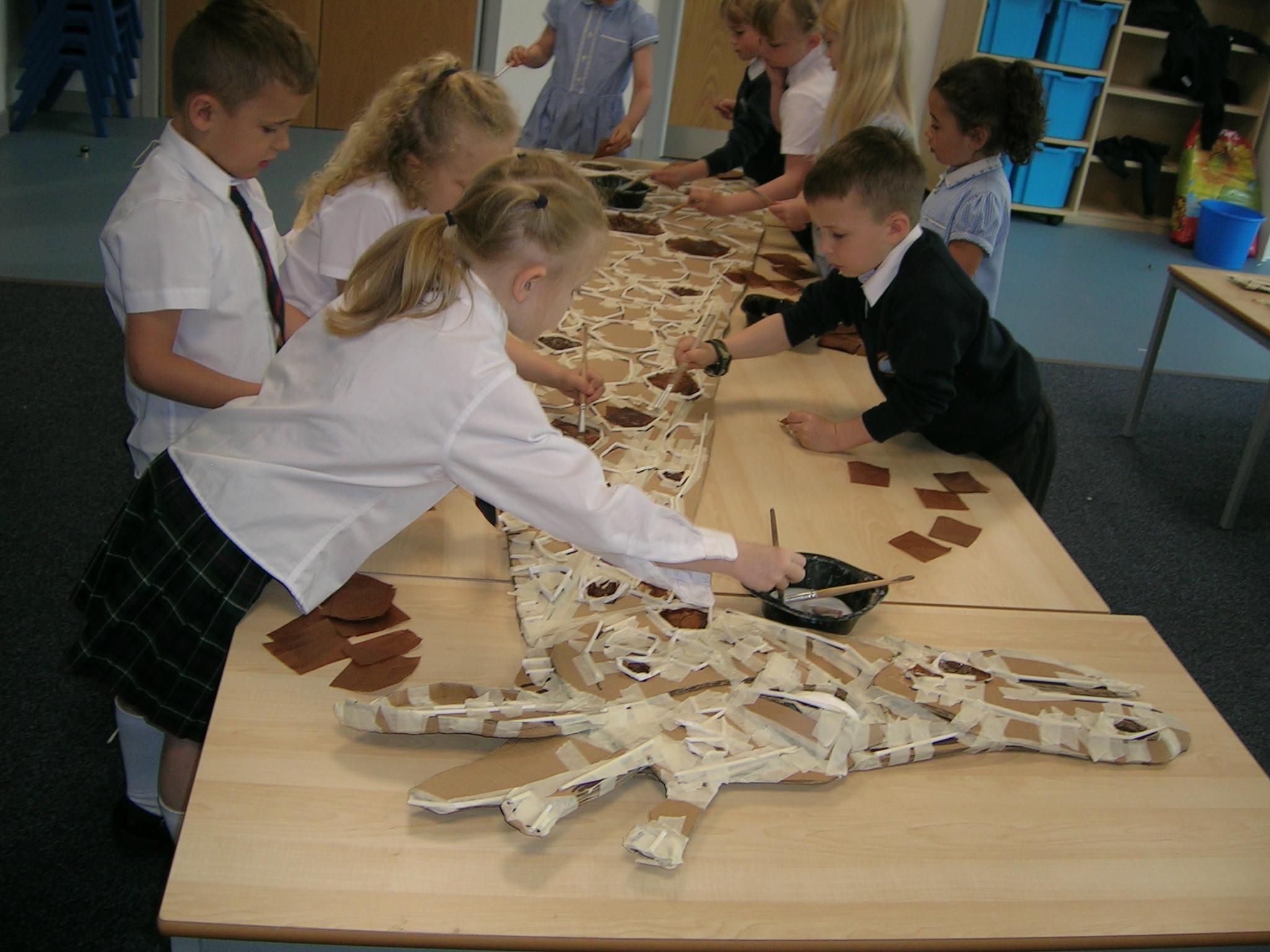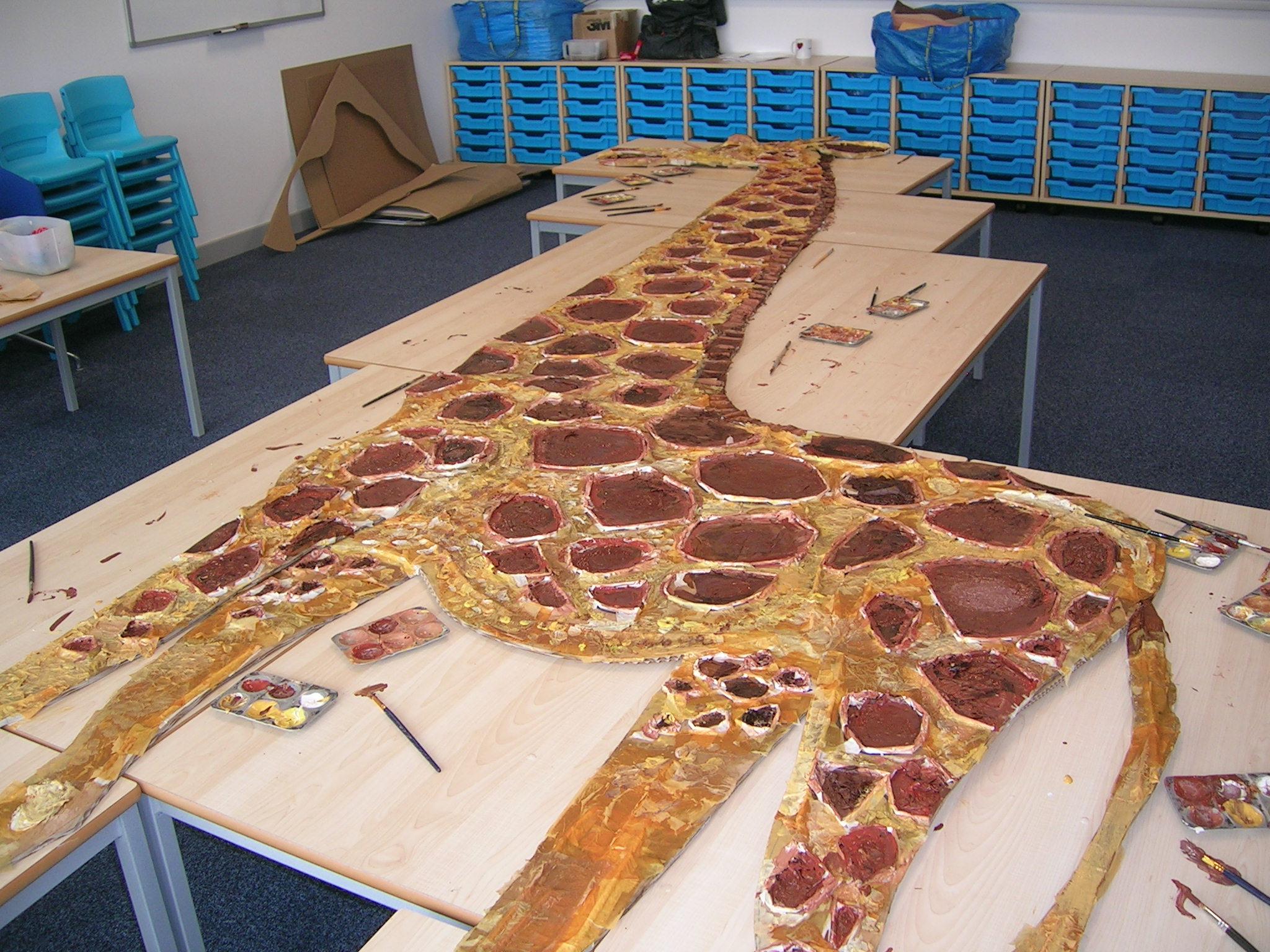 At the start of the Summer Term, we had a visit from a fantastic artist called Darrell. Darrell works with lots of materials to create sculptures. He helped us make a beautiful giraffe for the school. It was quite tricky and very sticky but great fun to all work as a team. Each class had a session in which they contributed their part to the sculpture and the result was amazing.