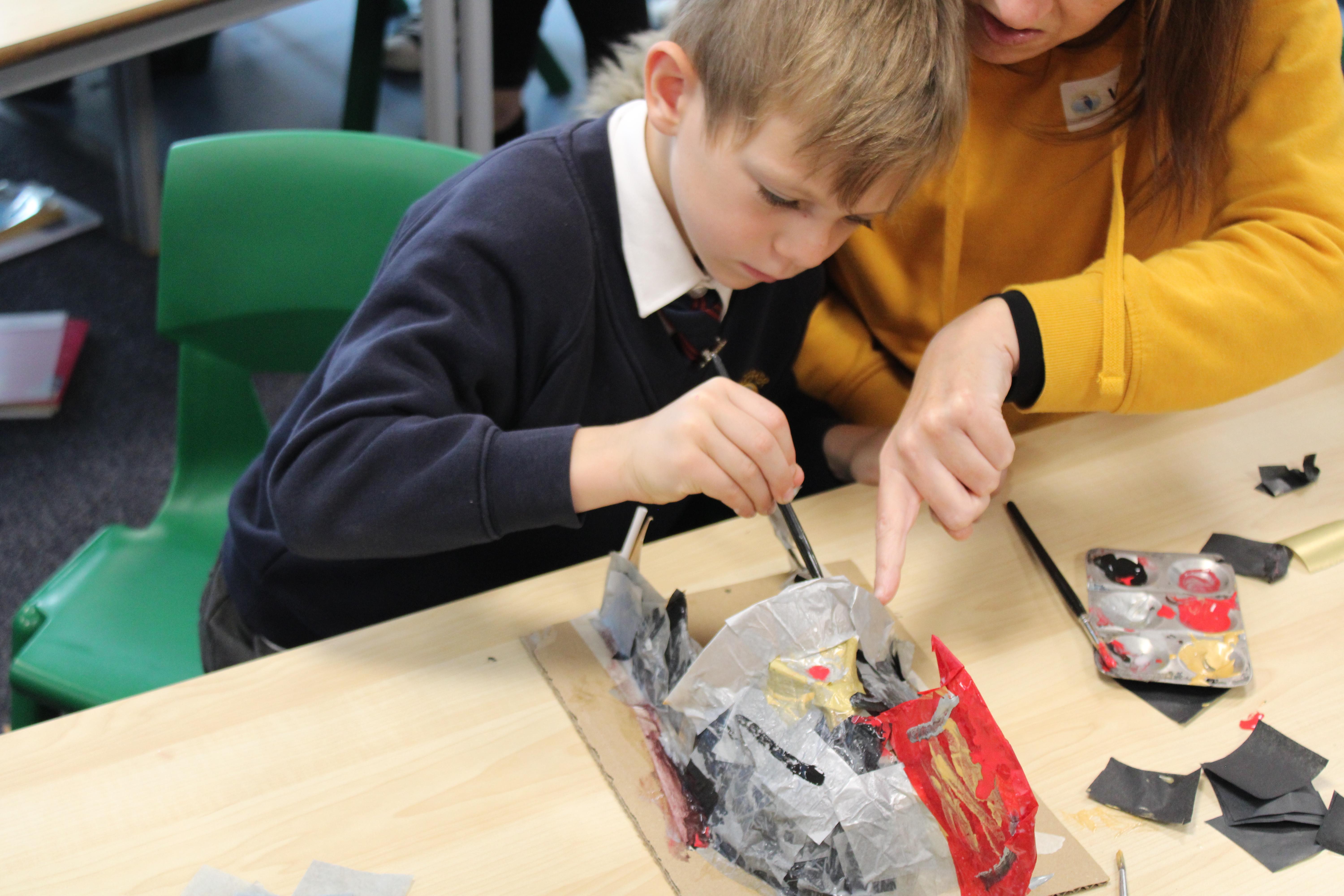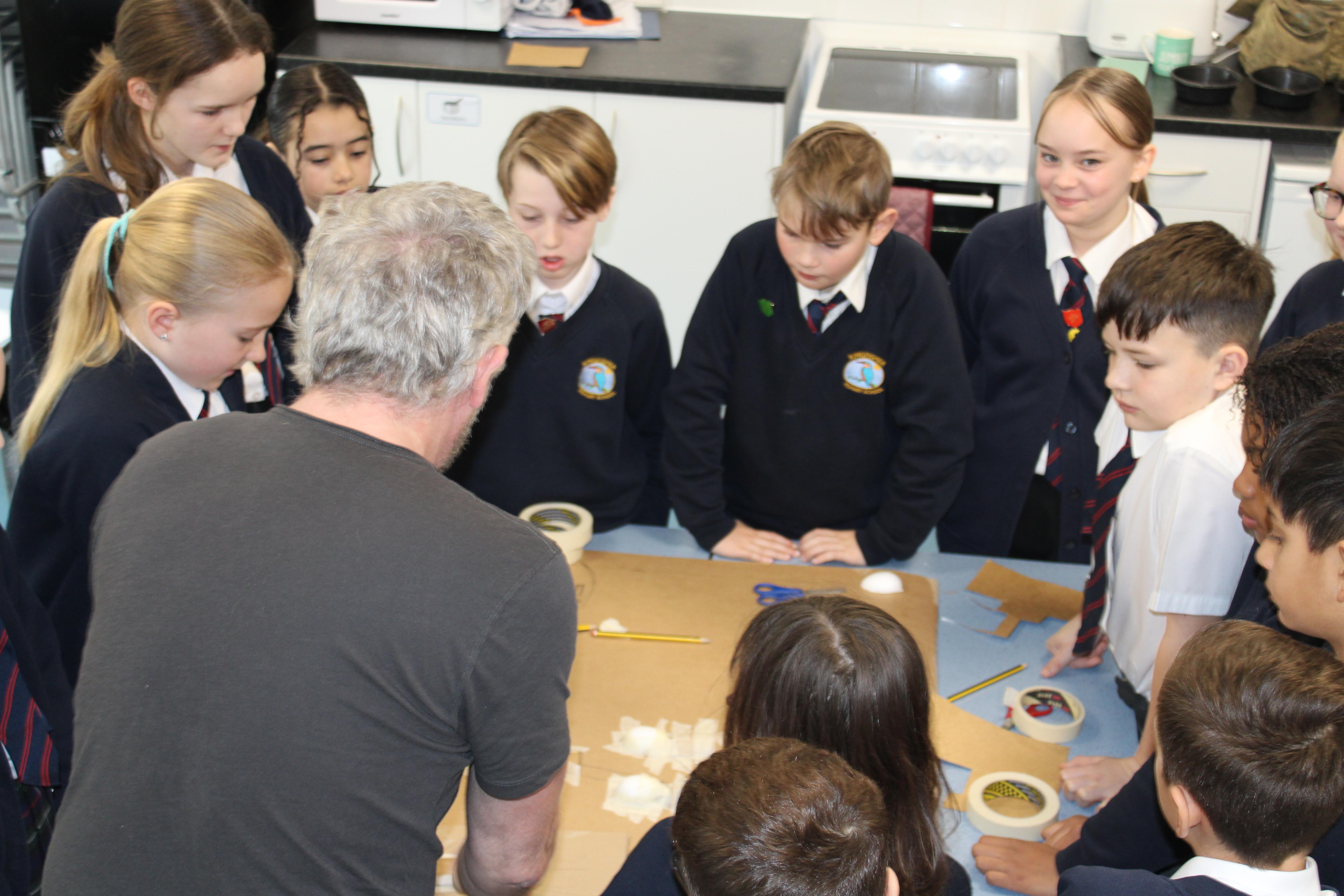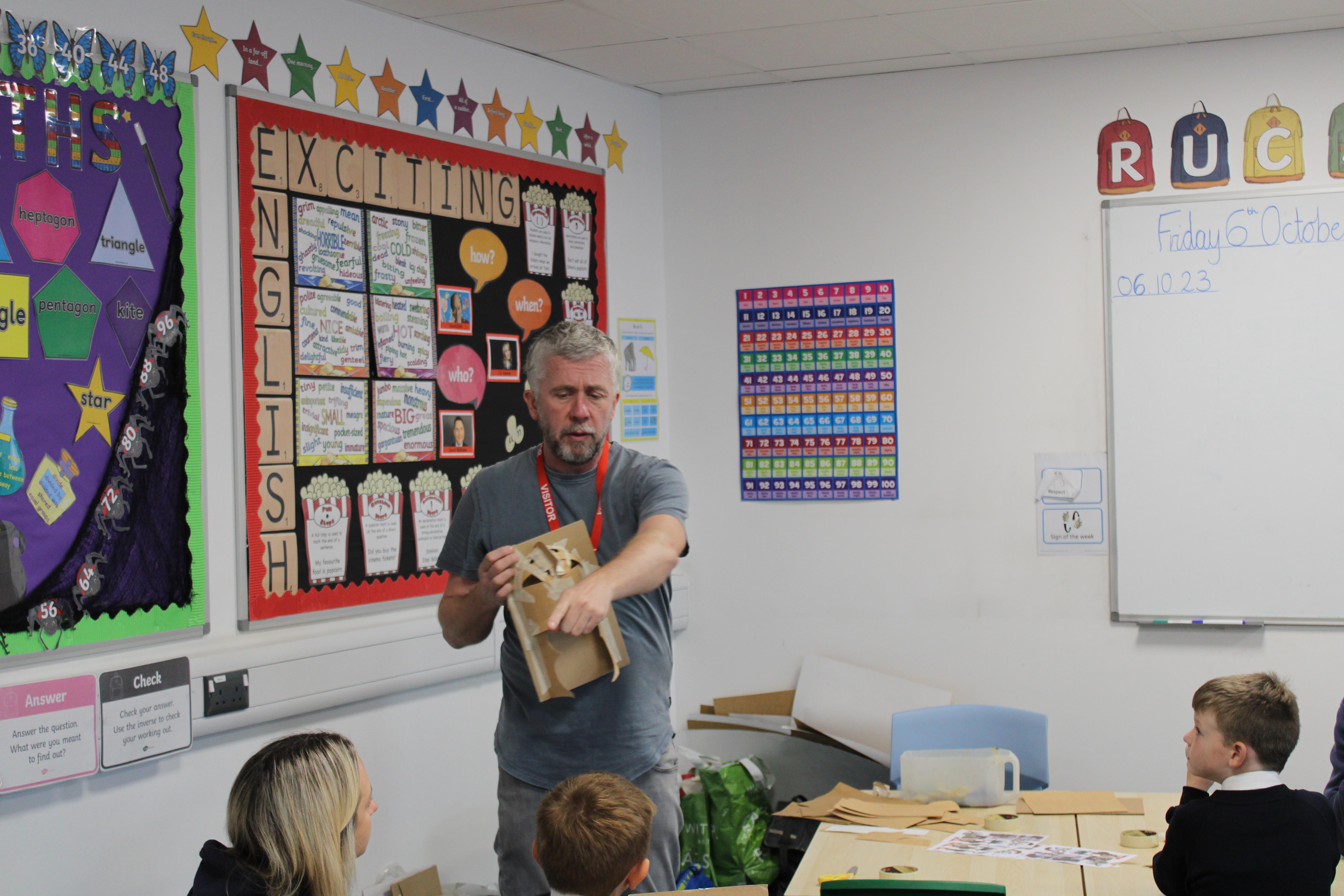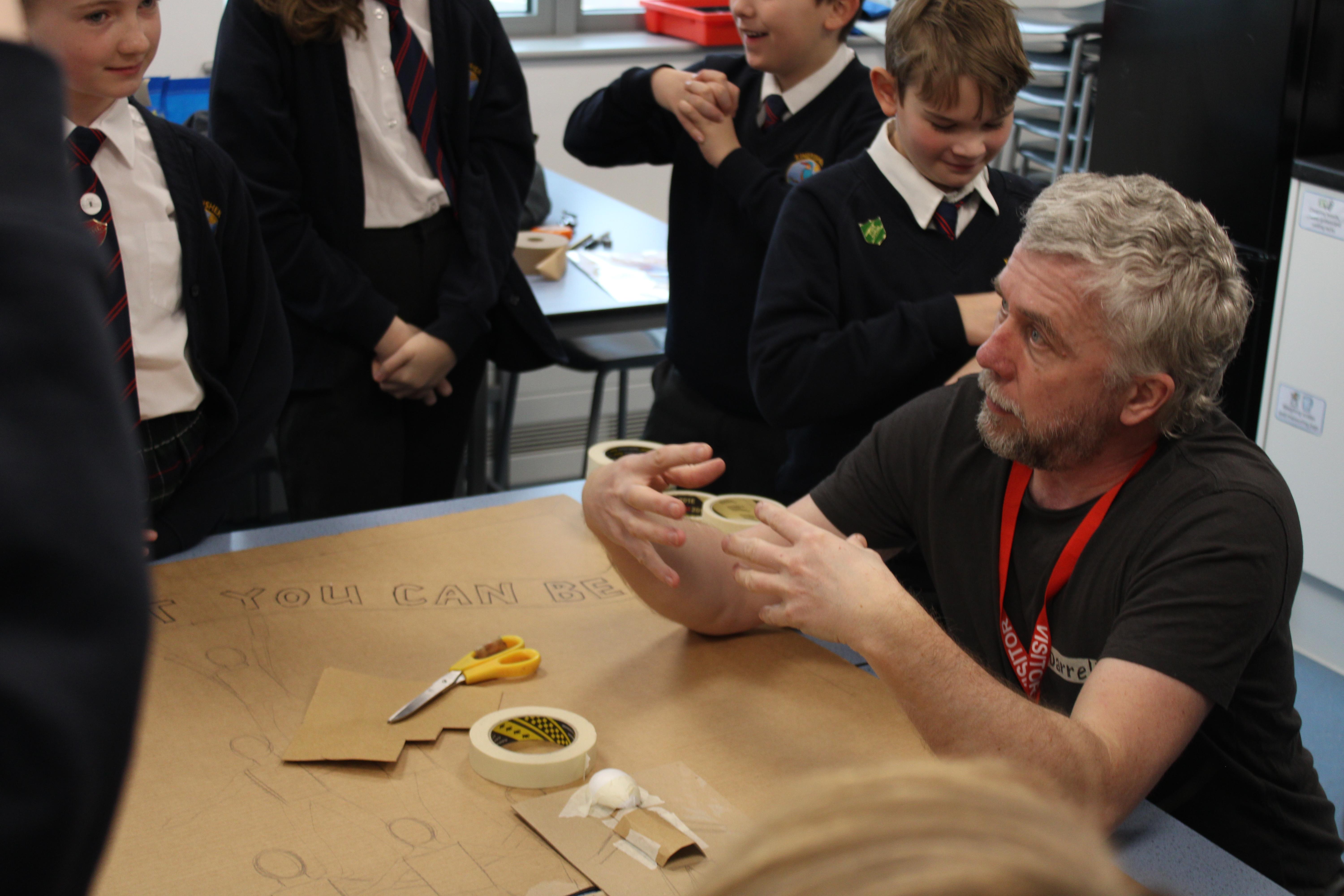 At the start of the Summer Term, we had a visit from a fantastic artist called Darrell. Darrell works with lots of materials to create sculptures. He helped us make a beautiful giraffe for the school. It was quite tricky and very sticky but great fun to all work as a team. Each class had a session in which they contributed their part to the sculpture and the result was amazing.