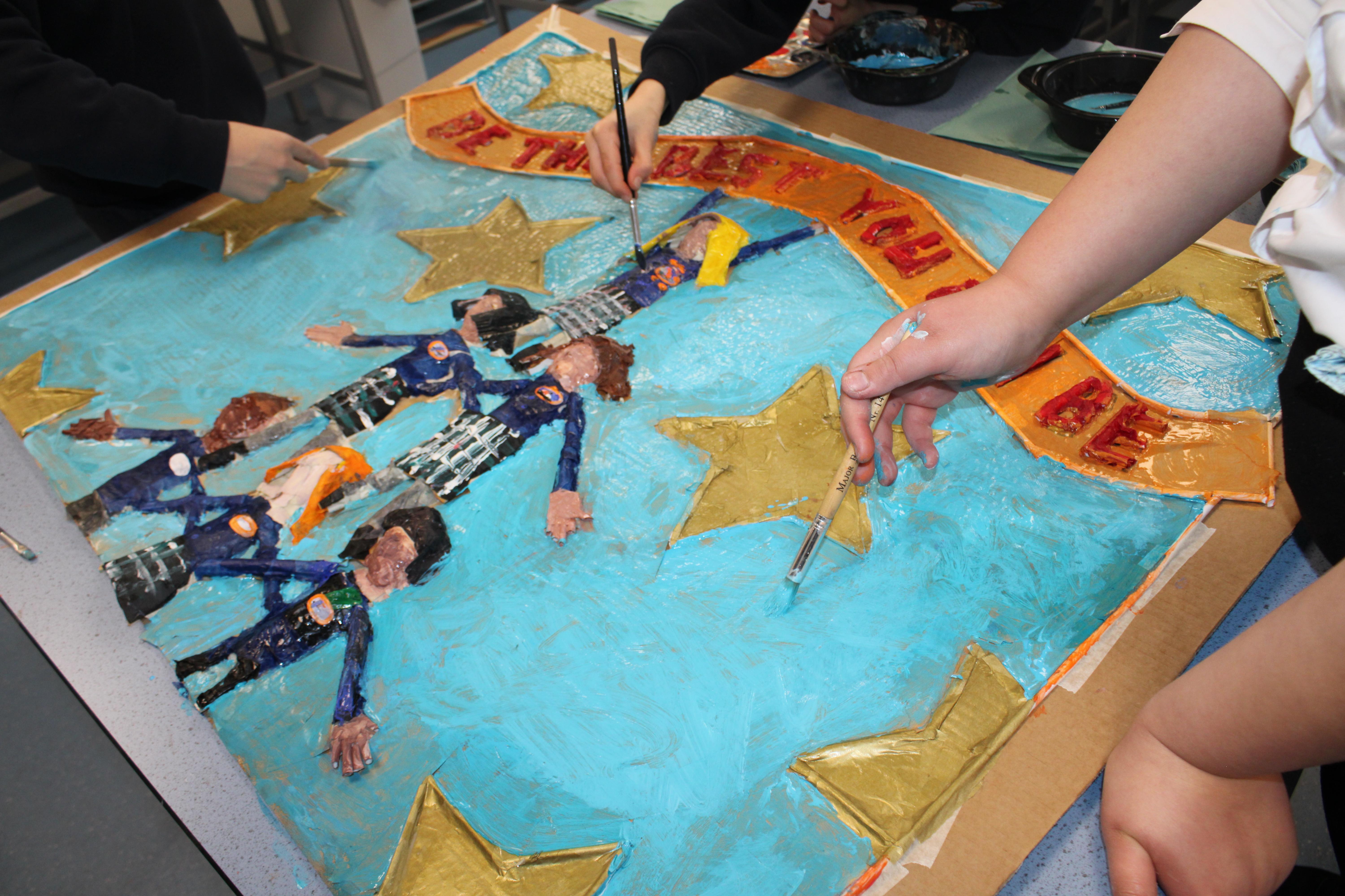 Pupils in Year 6 worked with visiting artist, Darrell Wakelam, in February to create a wonderful piece of art which displays our school motto of 'Be the best you can be.' They used their art skills along with skills in resilience, creativity and collaboration to create this excellent final piece.