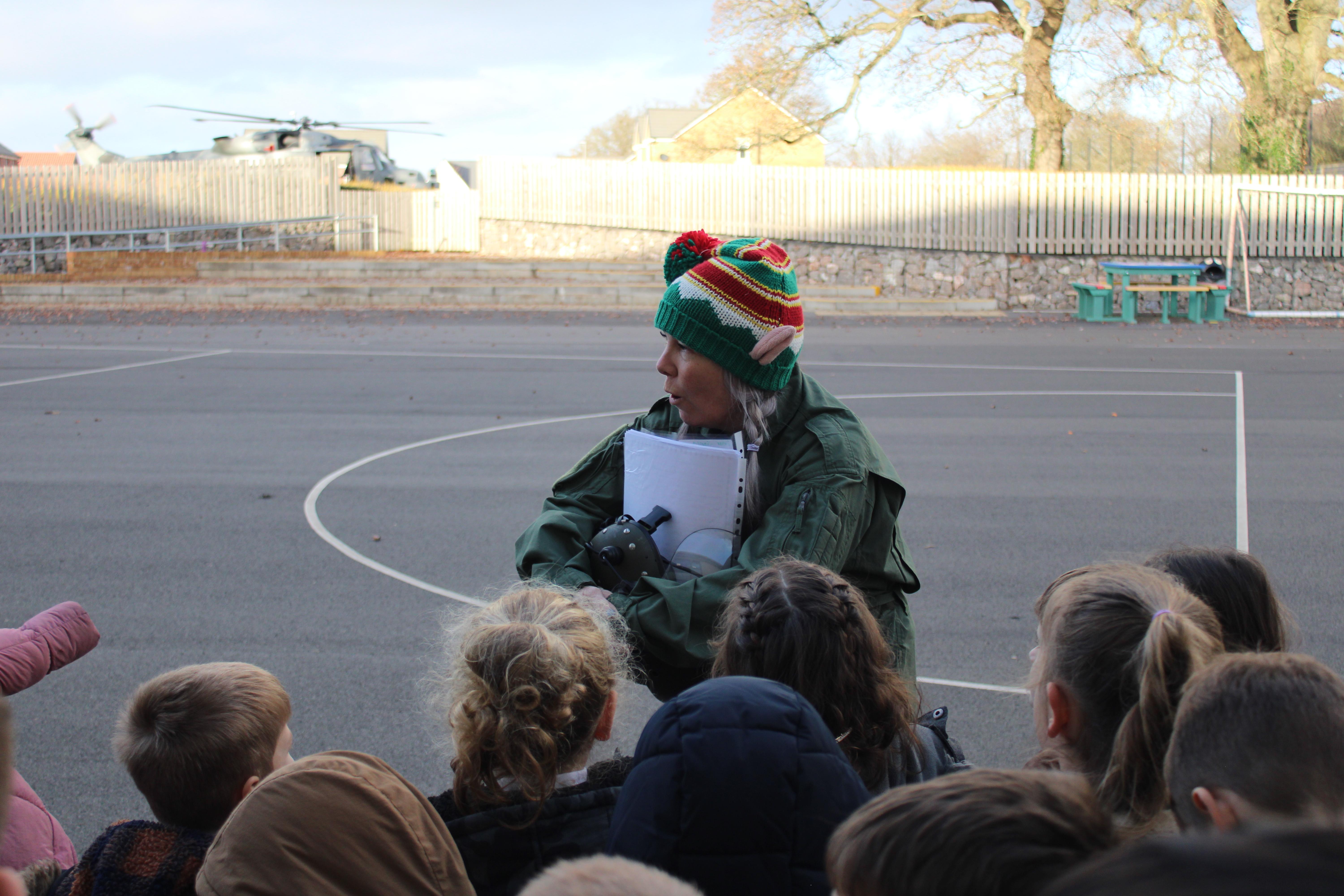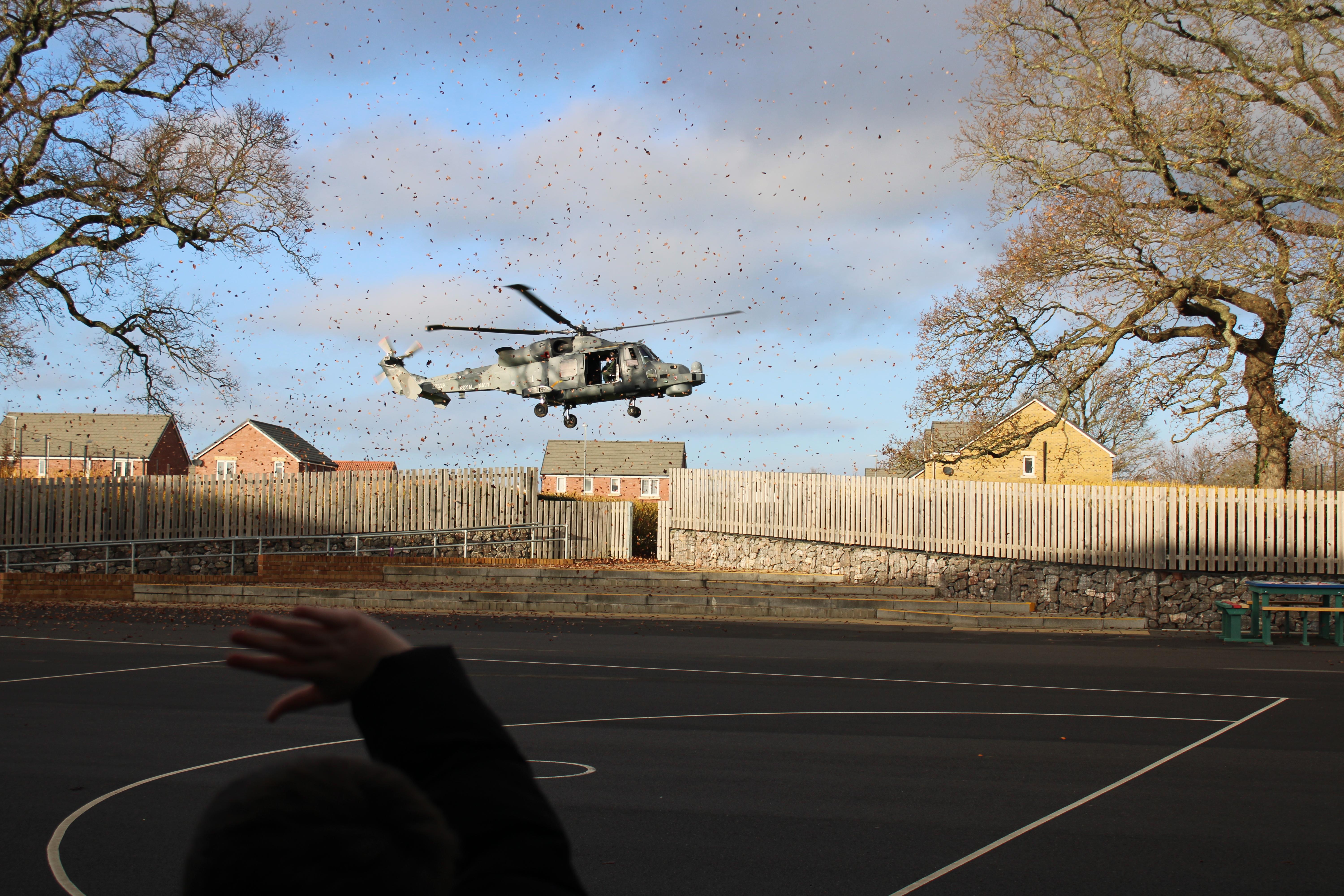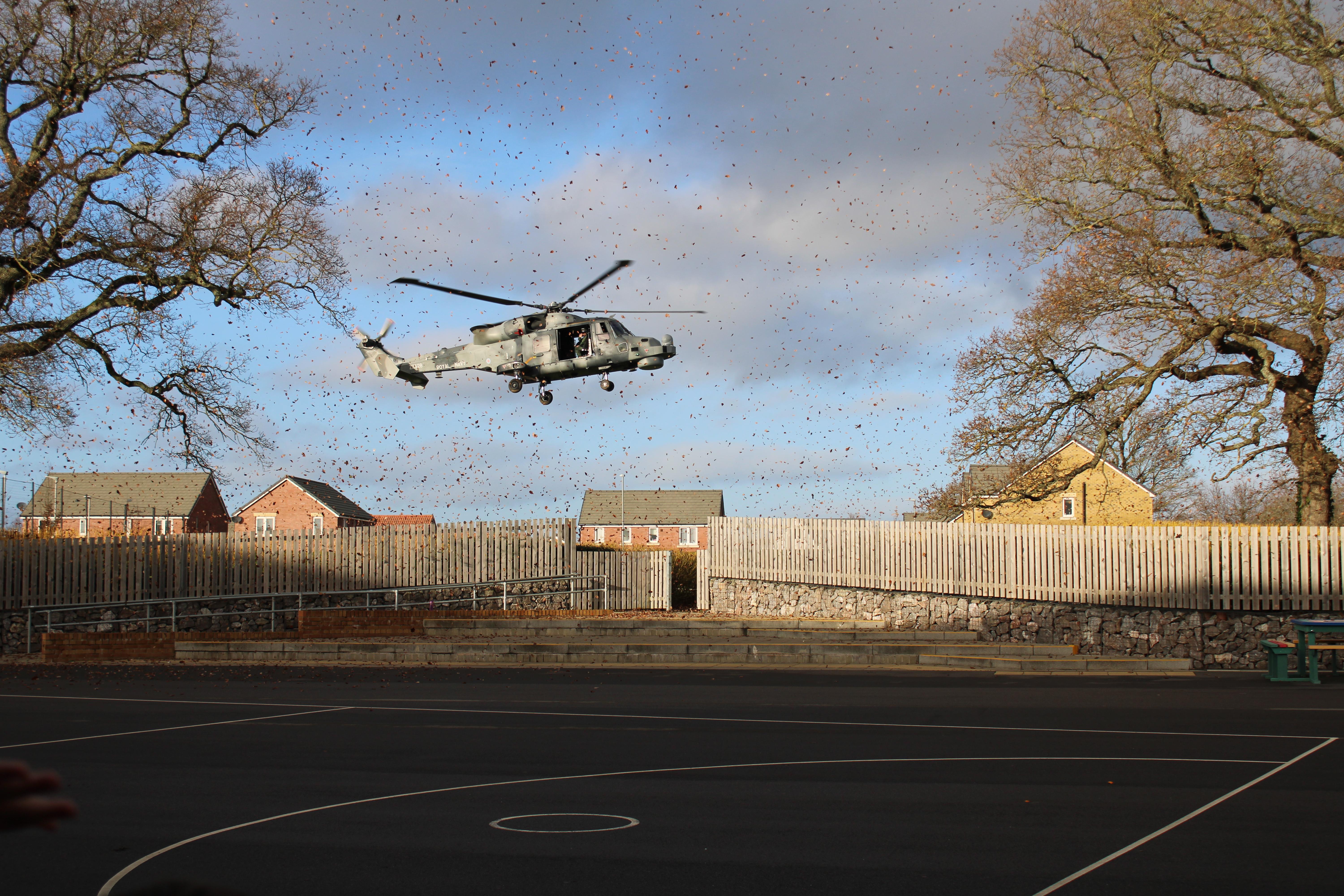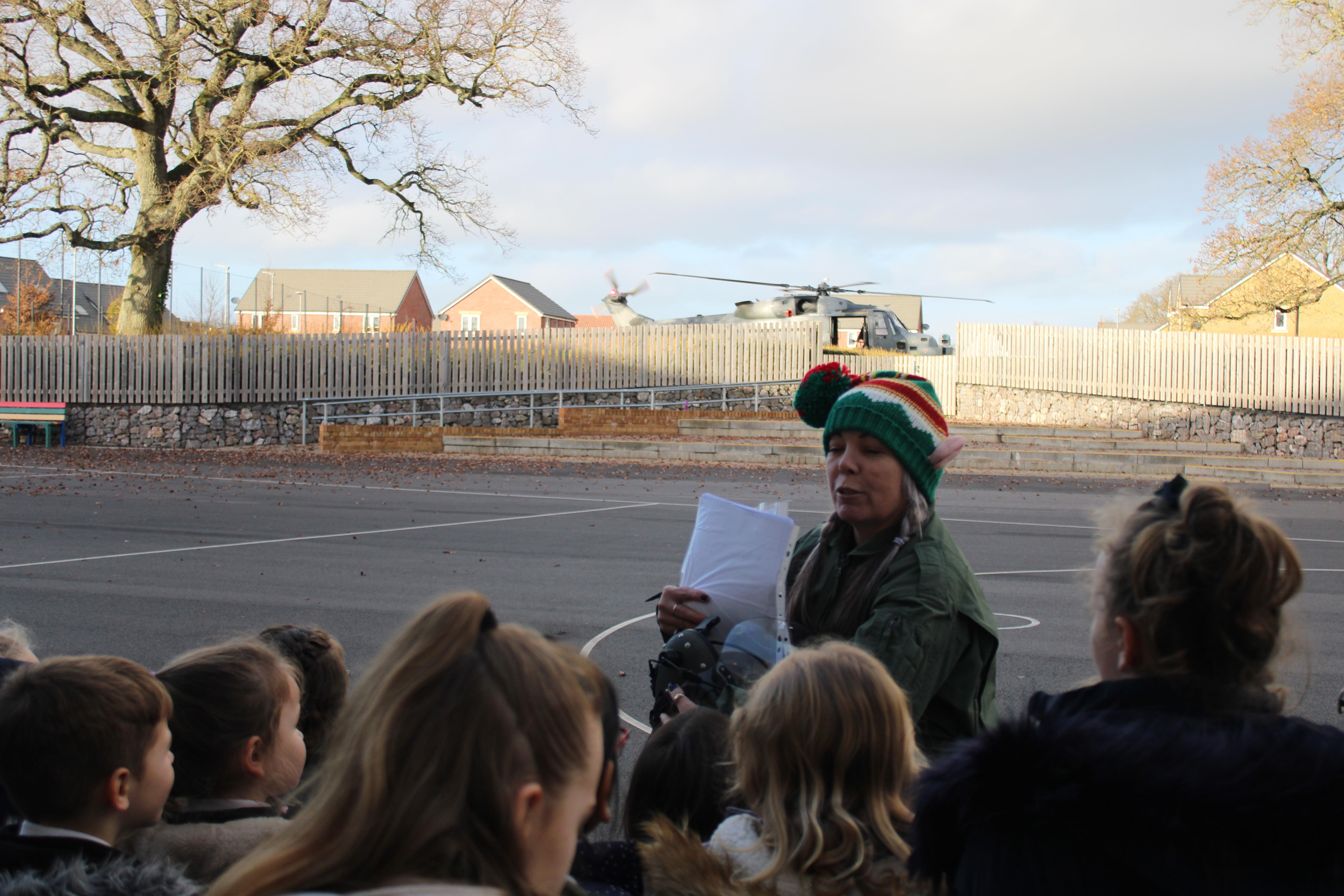 Just before Christmas, all pupils from nursery and school gathered on the playground and looked up to the skies to see if they could spot some very special visitors. We were incredibly lucky to have a navy helicopter land on our school field, with two of Santa's special helpers from RNAS Yeovilton on board who collected letters written by the children to Father Christmas.