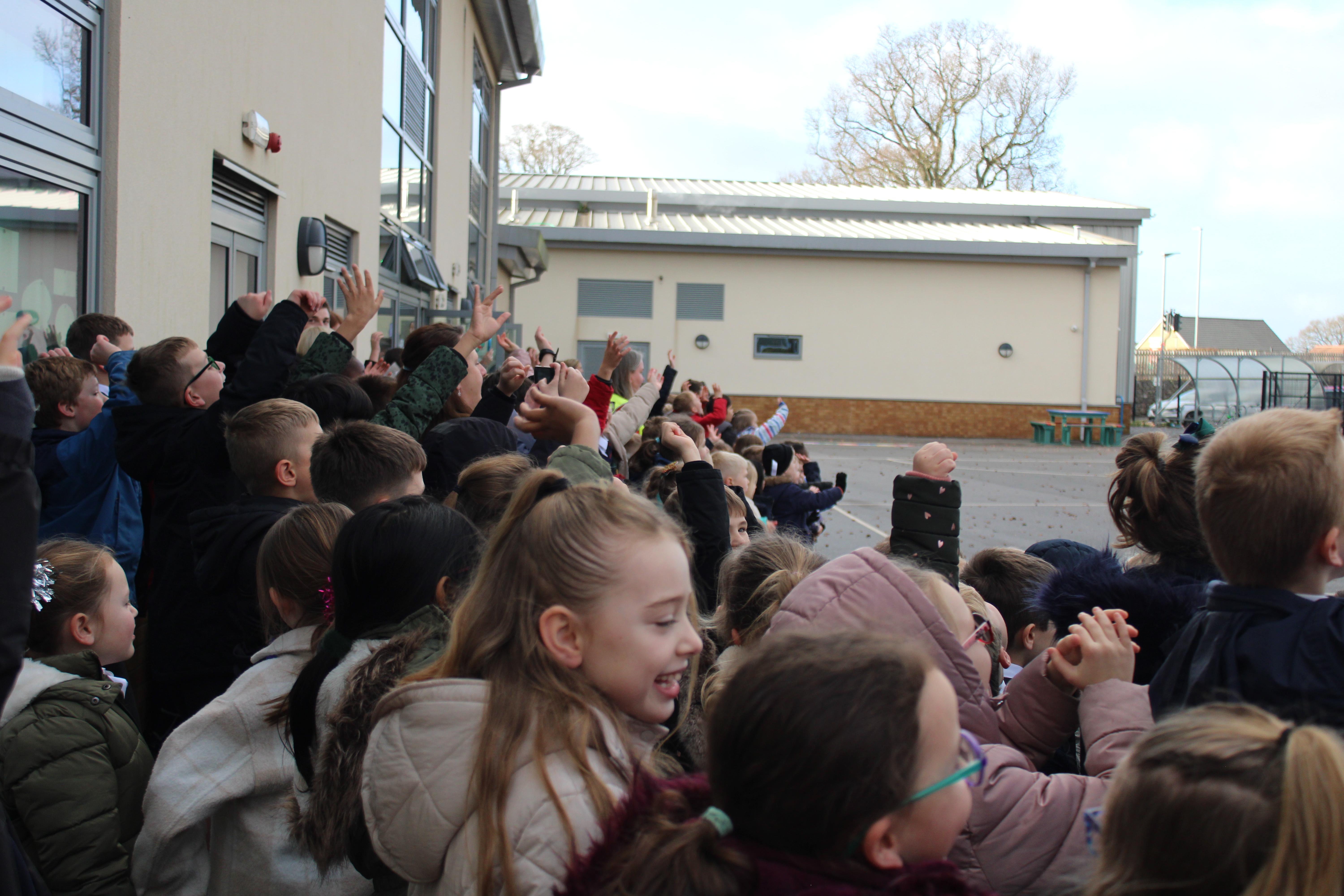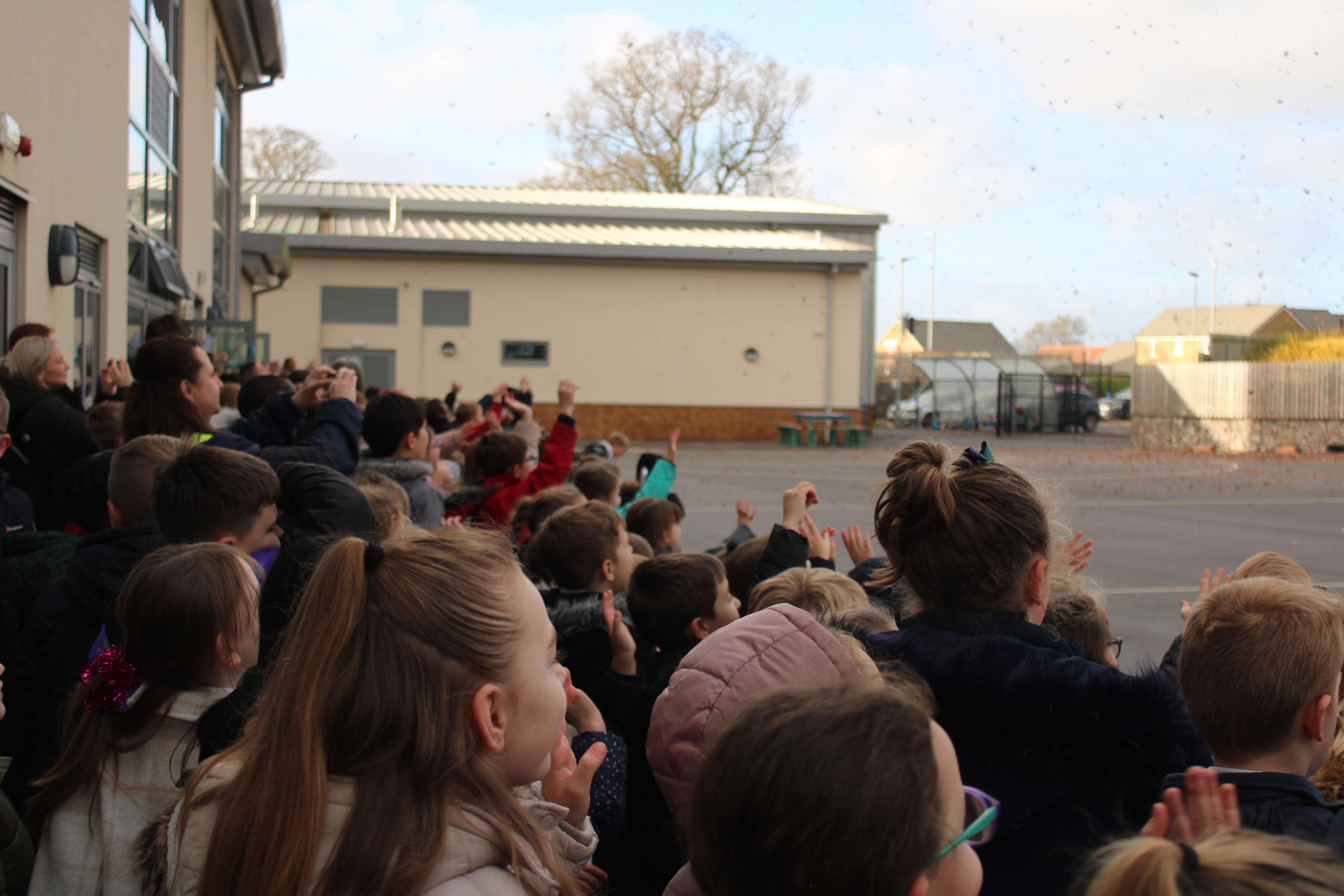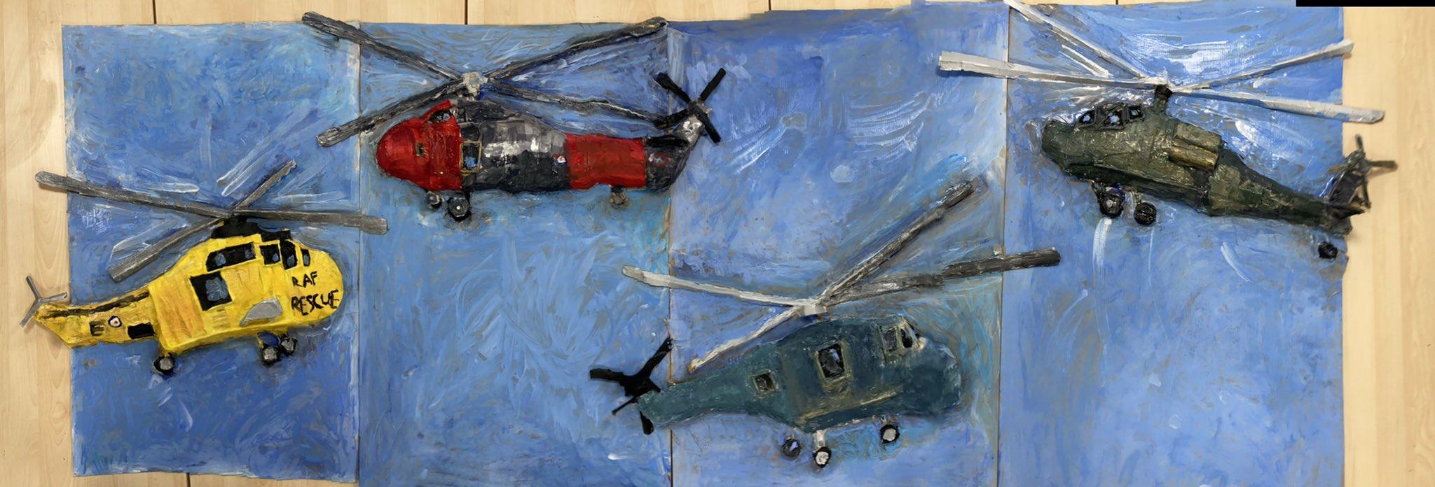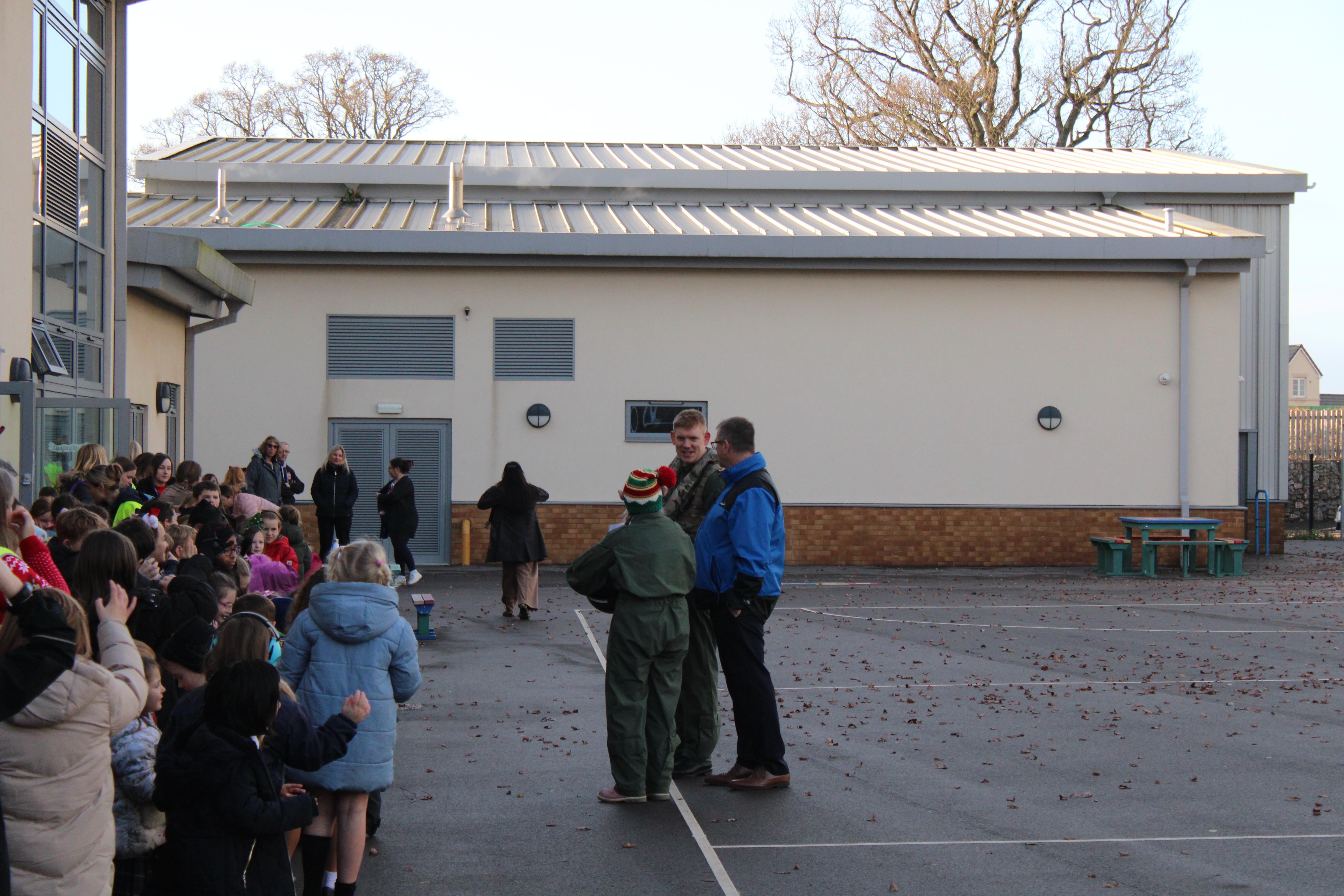 Just before Christmas, all pupils from nursery and school gathered on the playground and looked up to the skies to see if they could spot some very special visitors. We were incredibly lucky to have a navy helicopter land on our school field, with two of Santa's special helpers from RNAS Yeovilton on board who collected letters written by the children to Father Christmas.