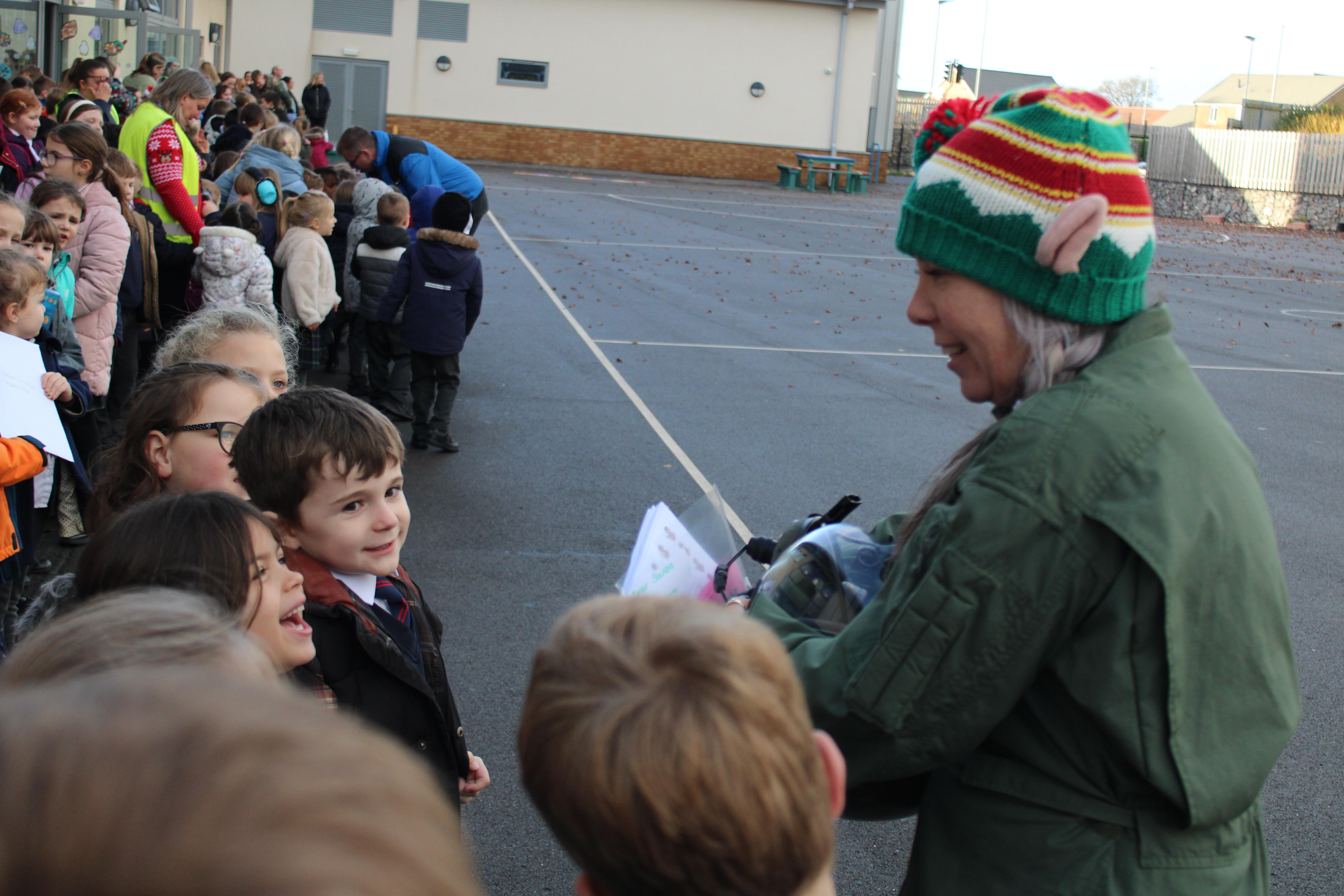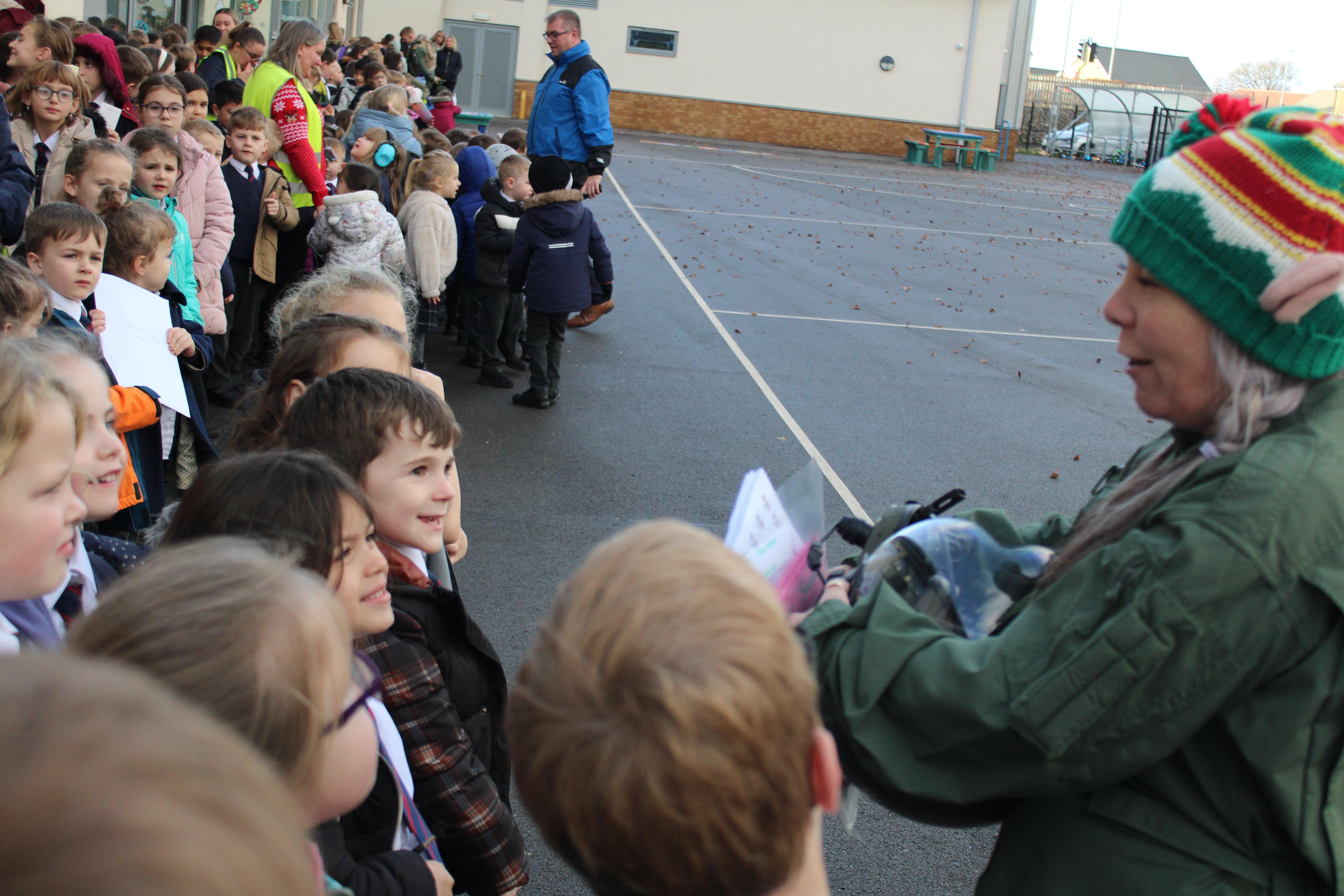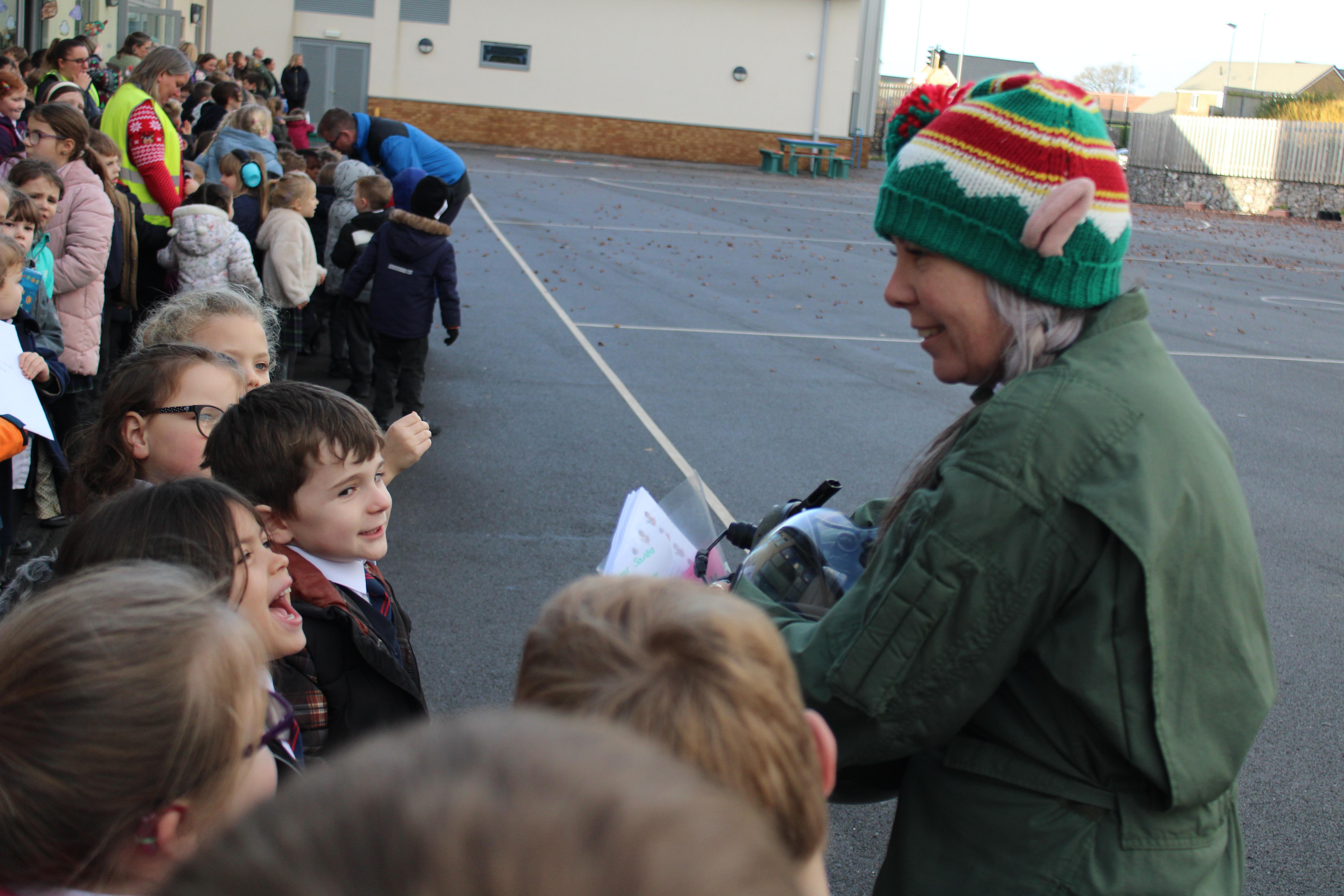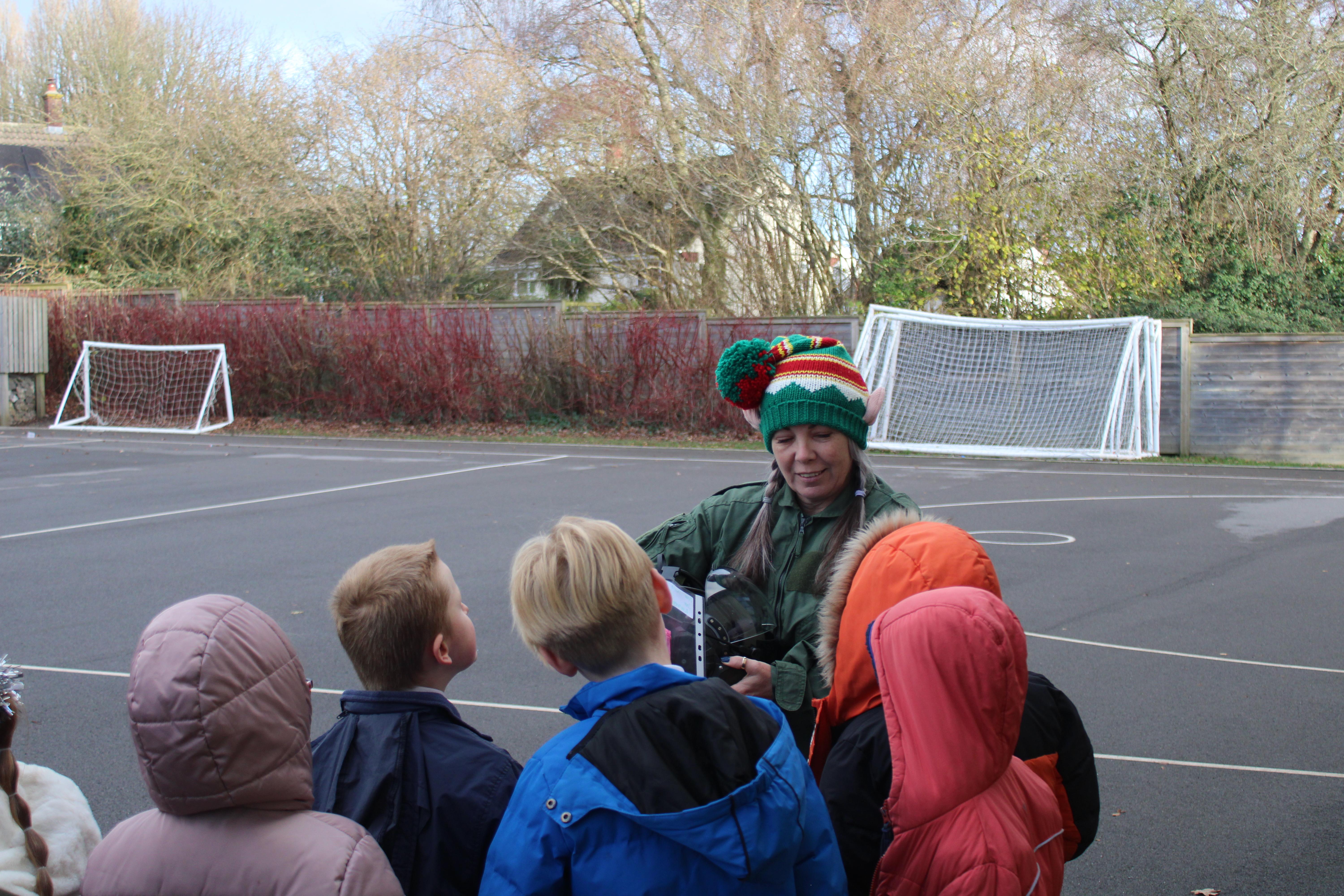 On Tuesday 10th December we were very excited to have a helicopter land on the school field! Inside were two elves who had come to collect the children's letters for Father Christmas. It was very exciting!