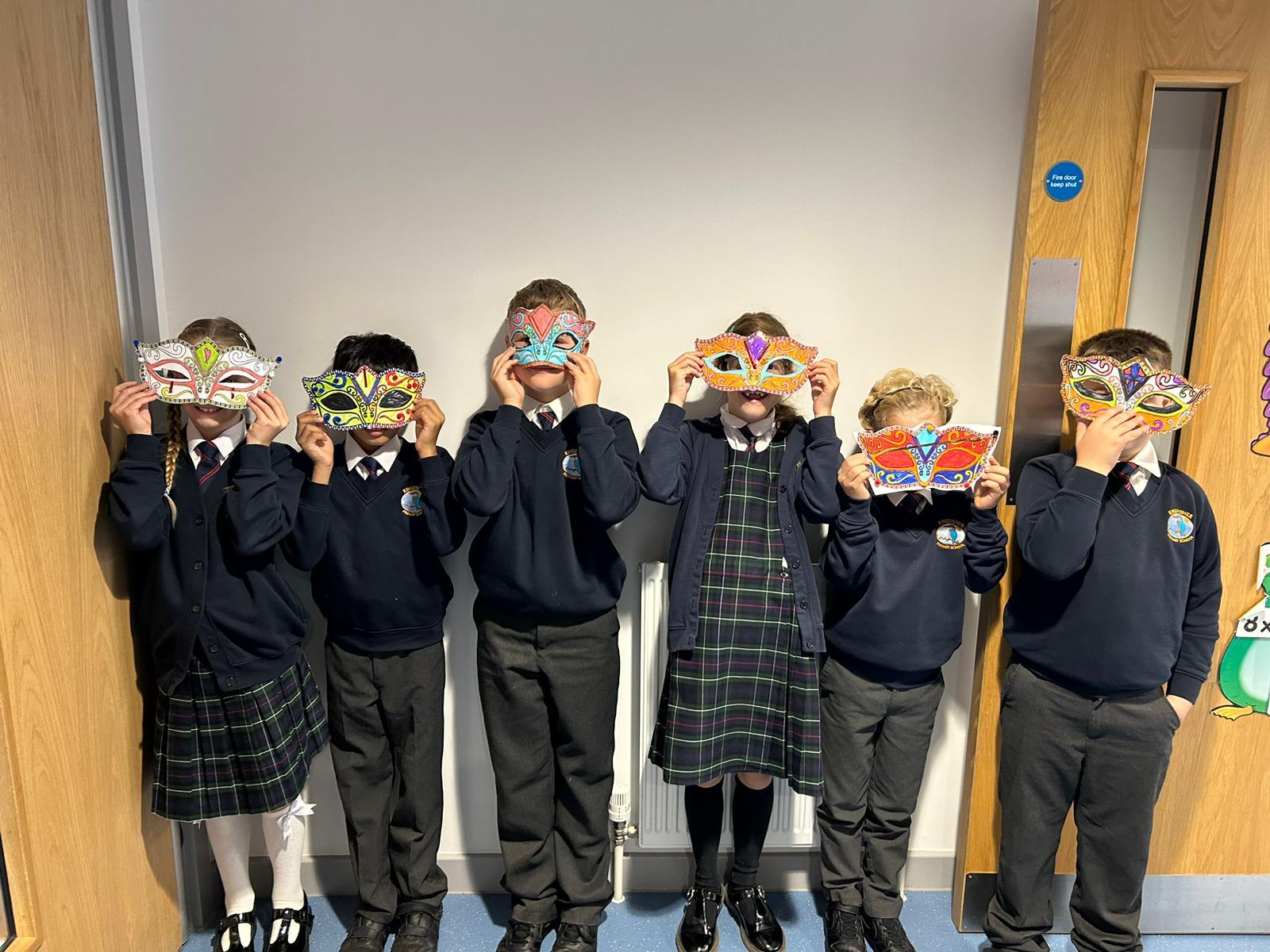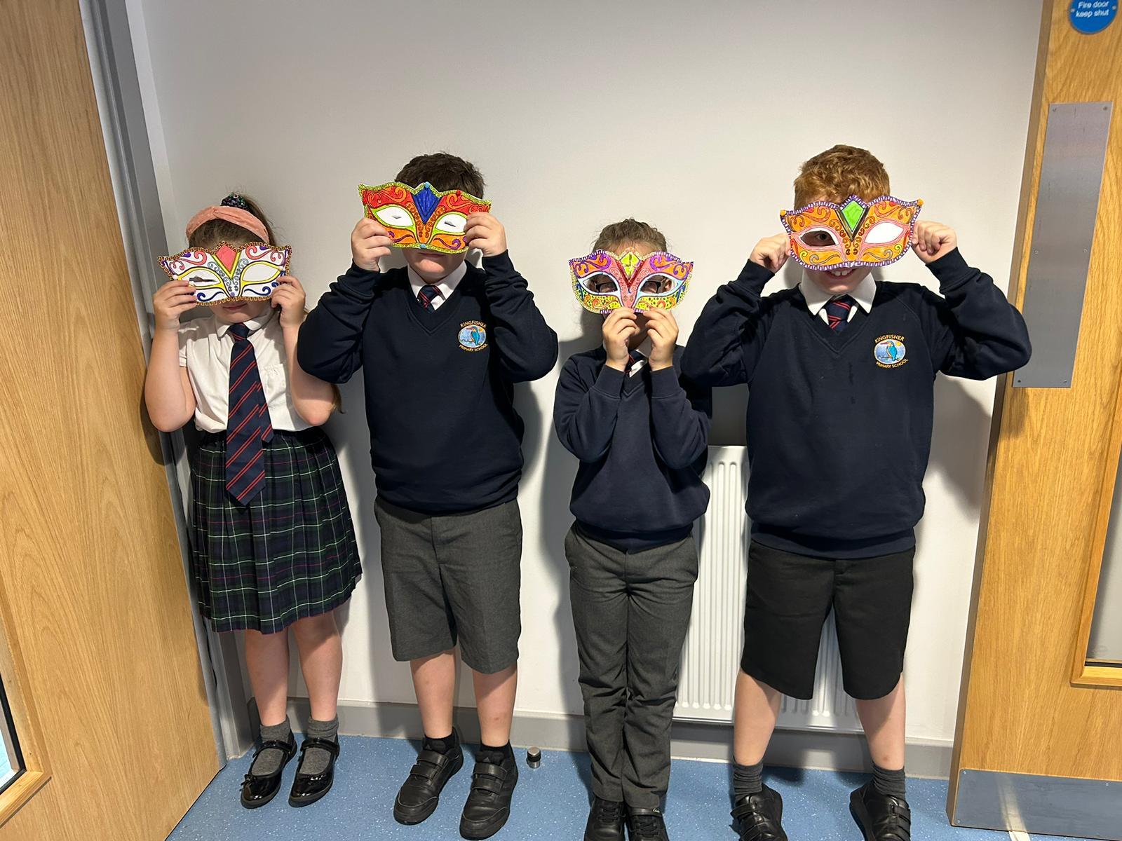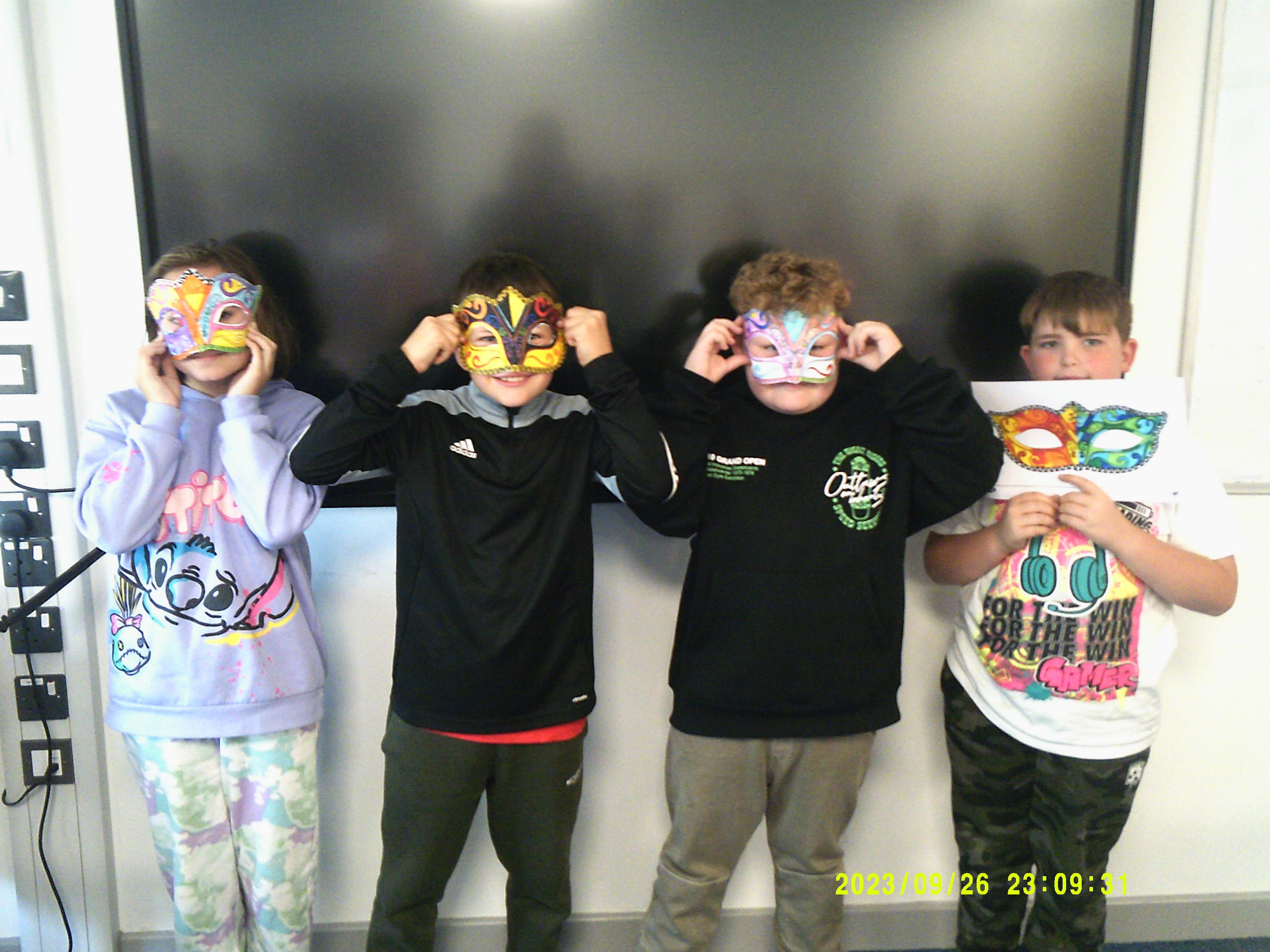 Years 4 and 6 focussed on learning some Italian - learning the colours and crafting to make Venetian masks, as well as learning the numbers and learning some greetings.
