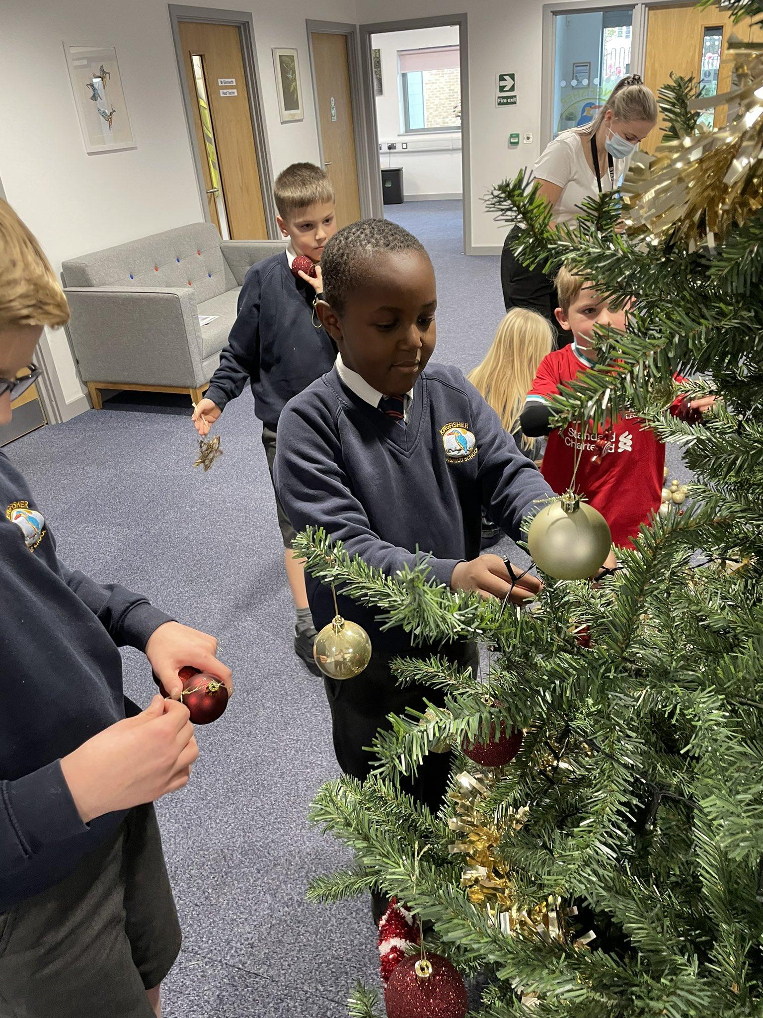 As is tradition at Kingfisher, our Christmas tree is decorated by our pupils whose parents serve in the Armed Forces. Along with Mrs Streetin, pupils who attend Dandelion Club did an excellent job in making the tree look extra special!