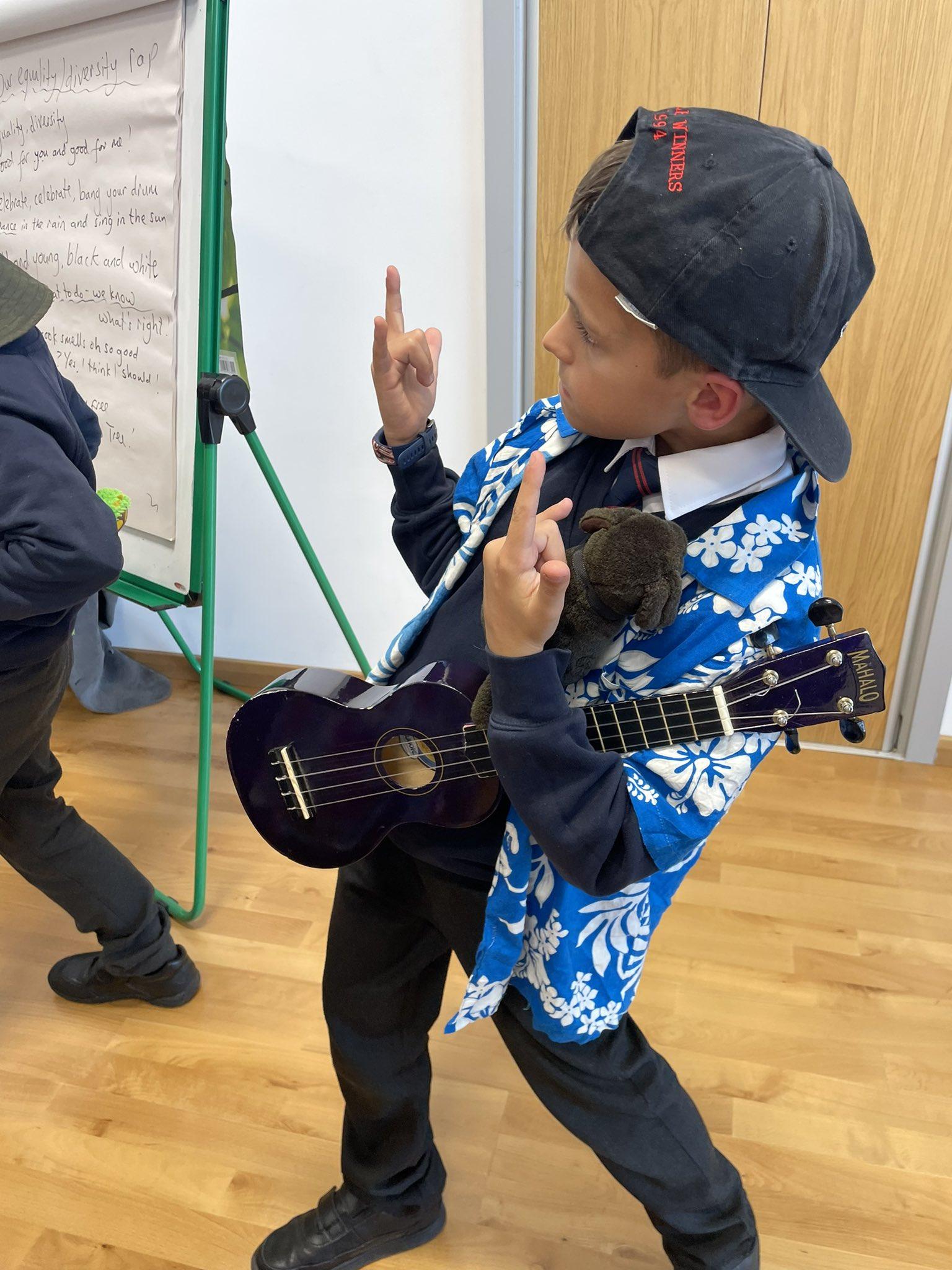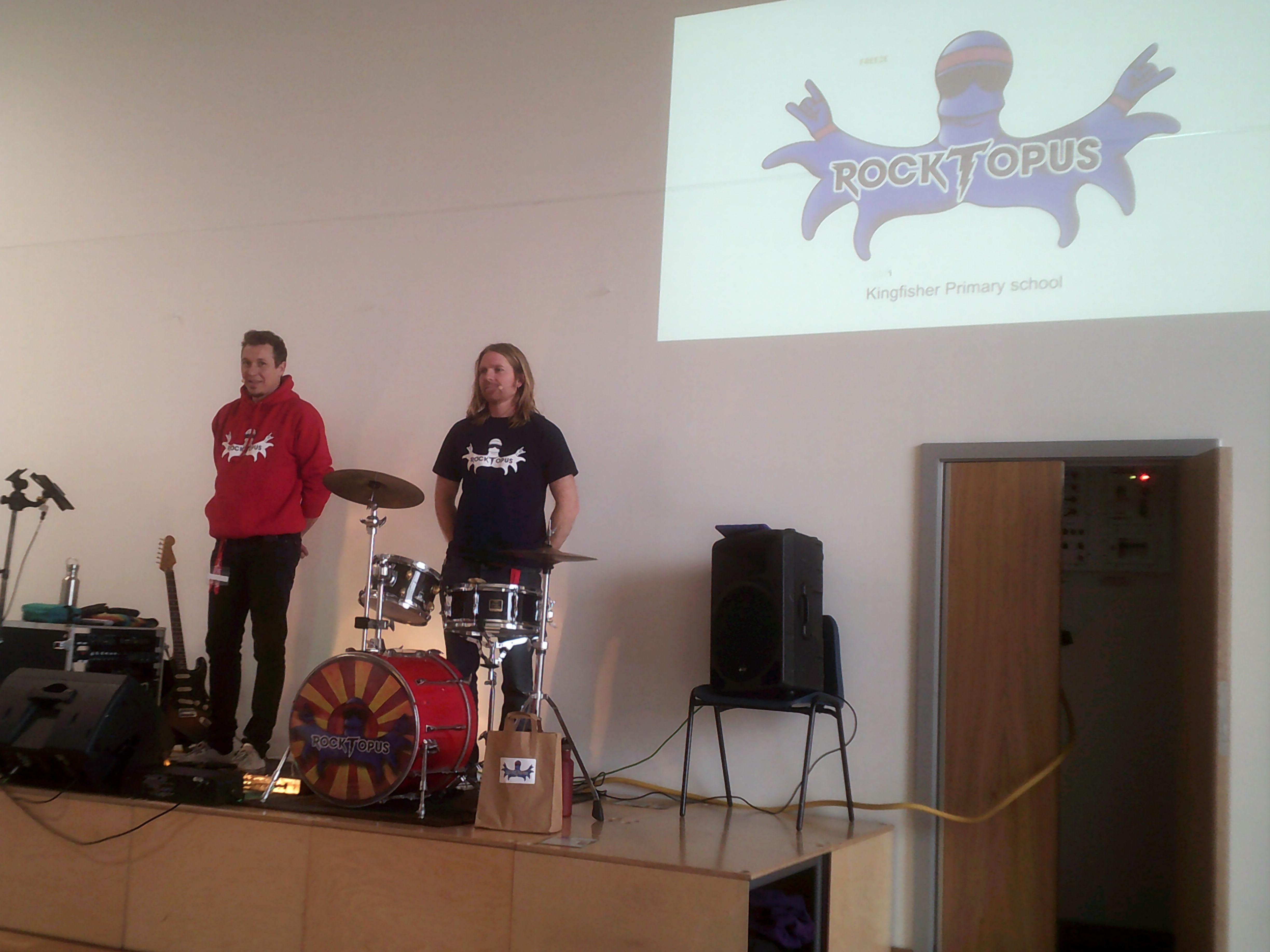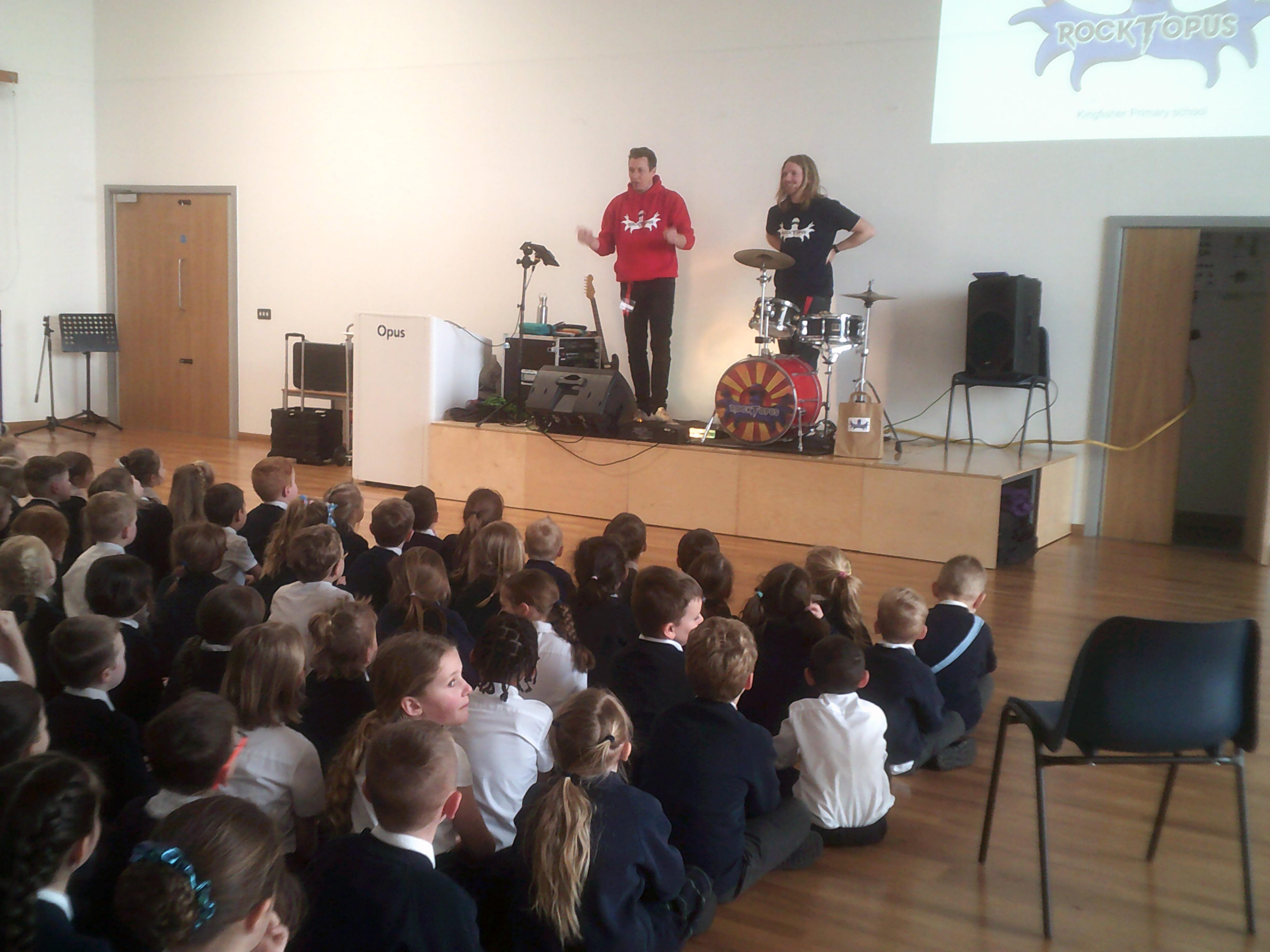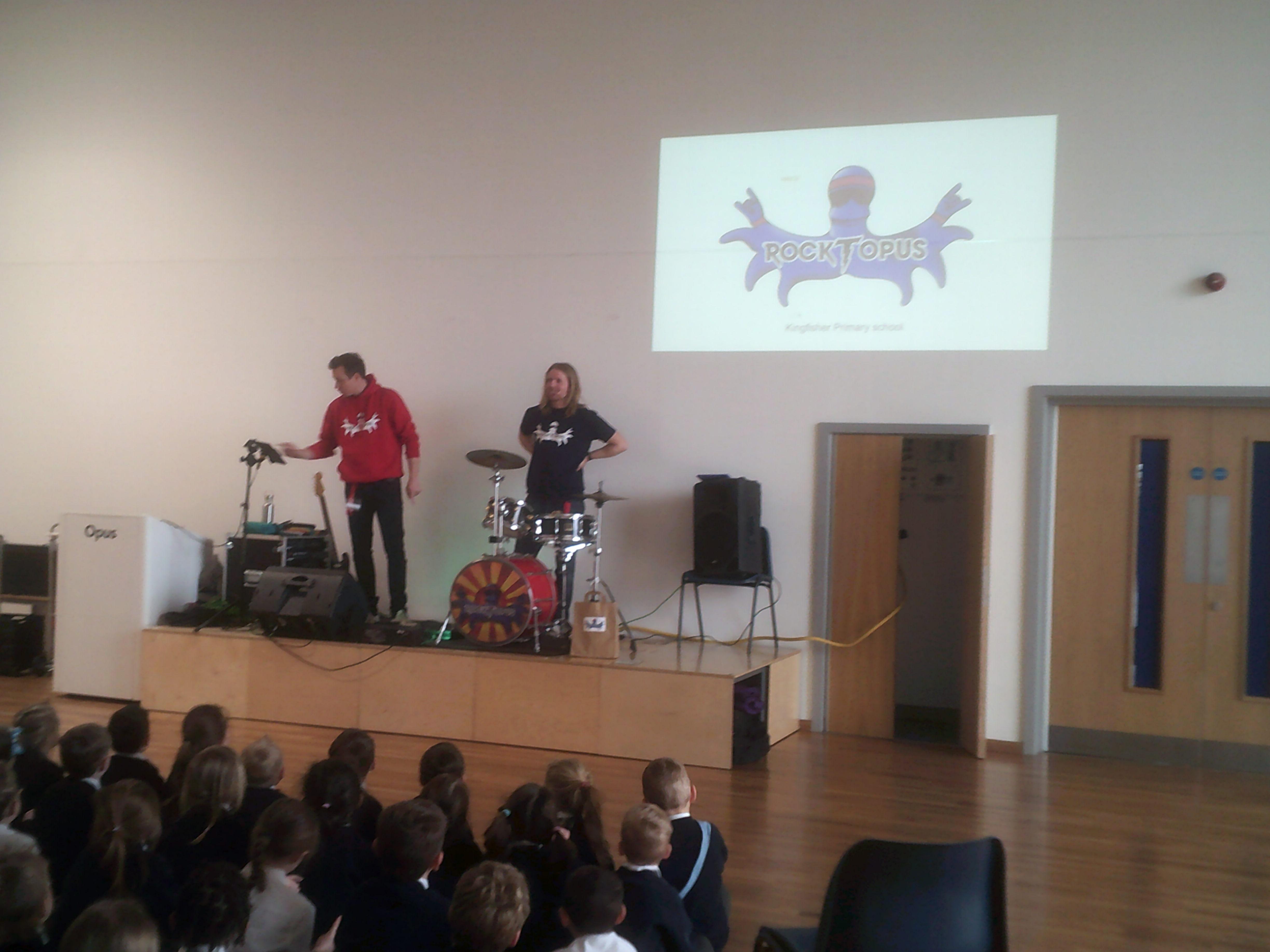 On Monday Andy and Tom from Rocktapus came to visit us and they worked with the children to create a school 'rock' song. It was based around the school values and motto and the children gave ideas for the lyrics. It was amazing and we all couldn't stop singing it for the rest of the day!