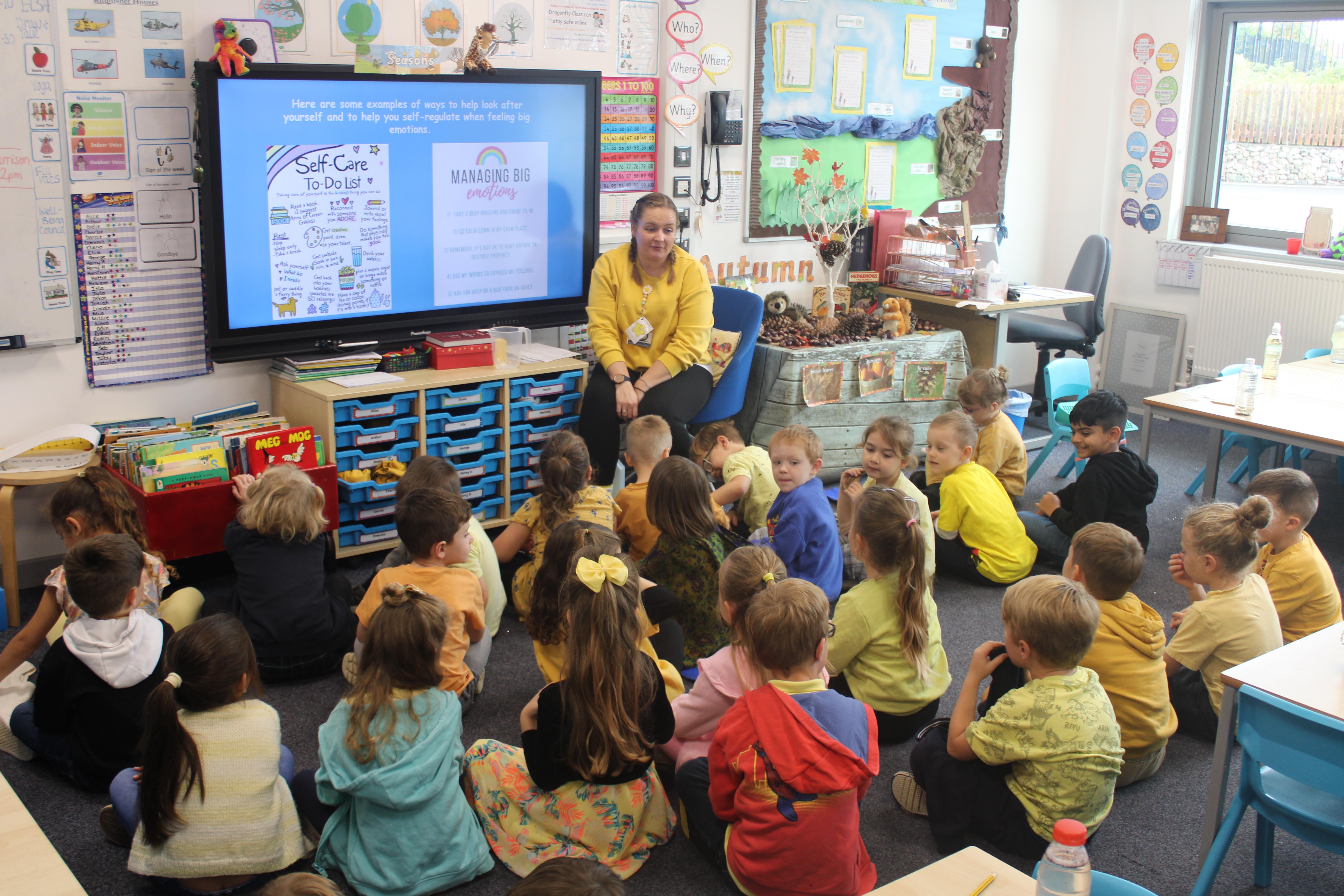 On Friday 13th October 2023, Kingfisher turned yellow to raise awareness of World Mental Health Day. The entire day was dedicated to pupils learning about the importance of mental health as well as physical health and what to do if they felt their mental health was suffering. Razzamatazz Theatre School led workshops which focussed on developing and understanding well-being; Mrs Streetin visited every class and led learning on how to regulate emotions. All pupils in these sessions created their own ‘calming bottle’ which they took home. Mrs Francis led activities which were adapted from her Drawing & Talking therapy sessions and our Well-being champions across KS2 led sessions in Yr3/4/5/6.