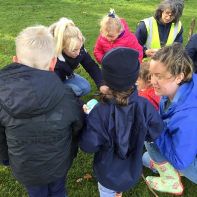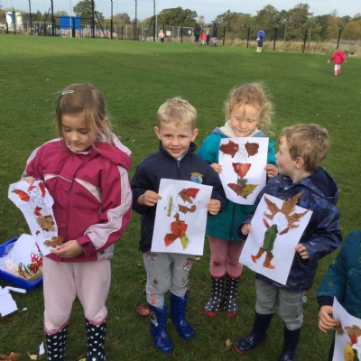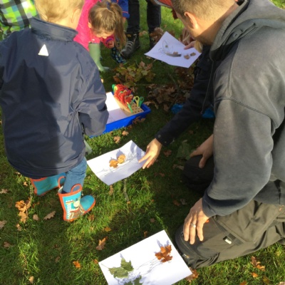 During Harvest Assembly and craft afternoon we sang for our grown ups and then enjoyed an afternoon of crafts with them. We made clay hedgehogs, did conker paint rolling and leaf rubbing. We also made scarecrow faces.