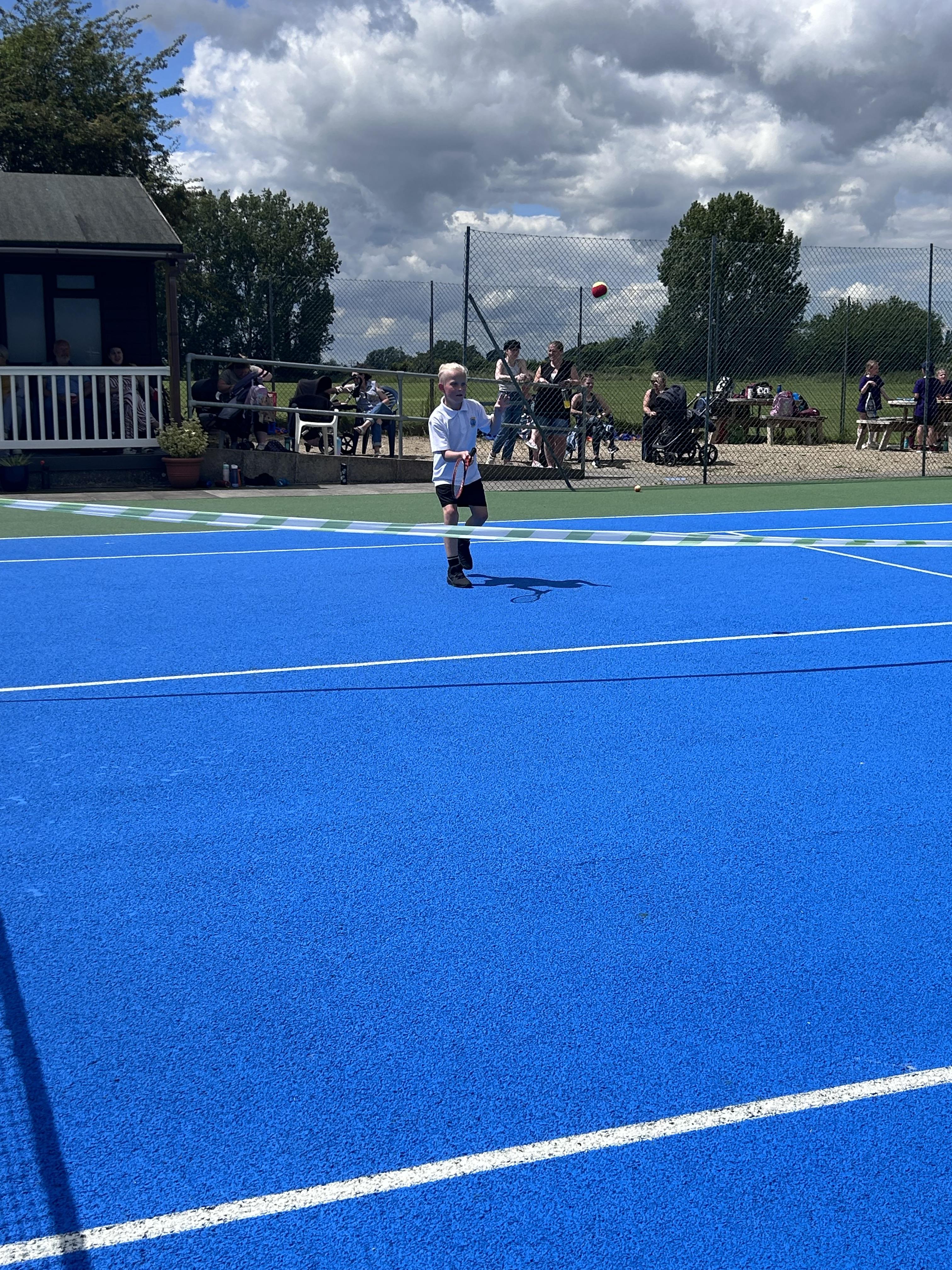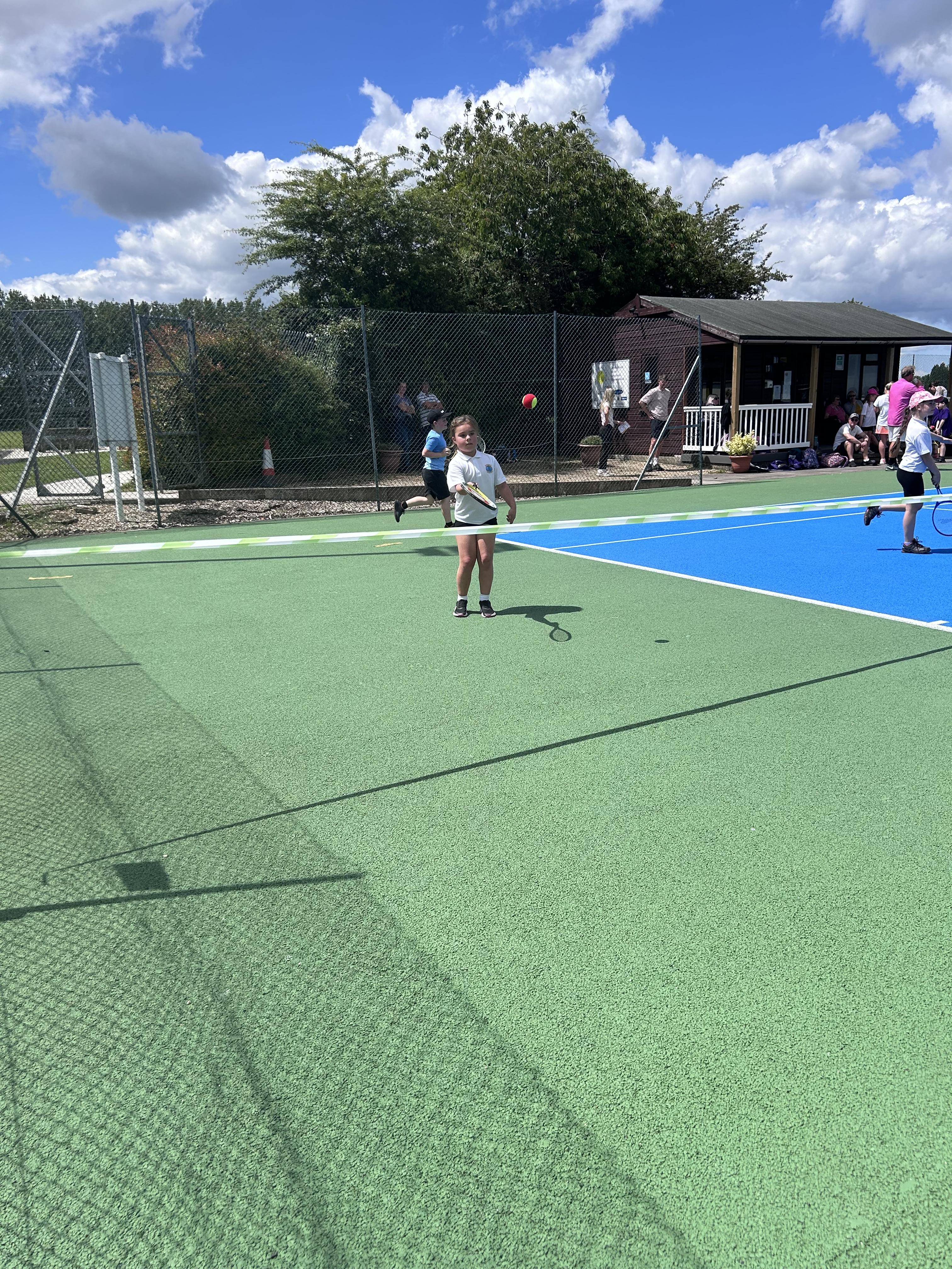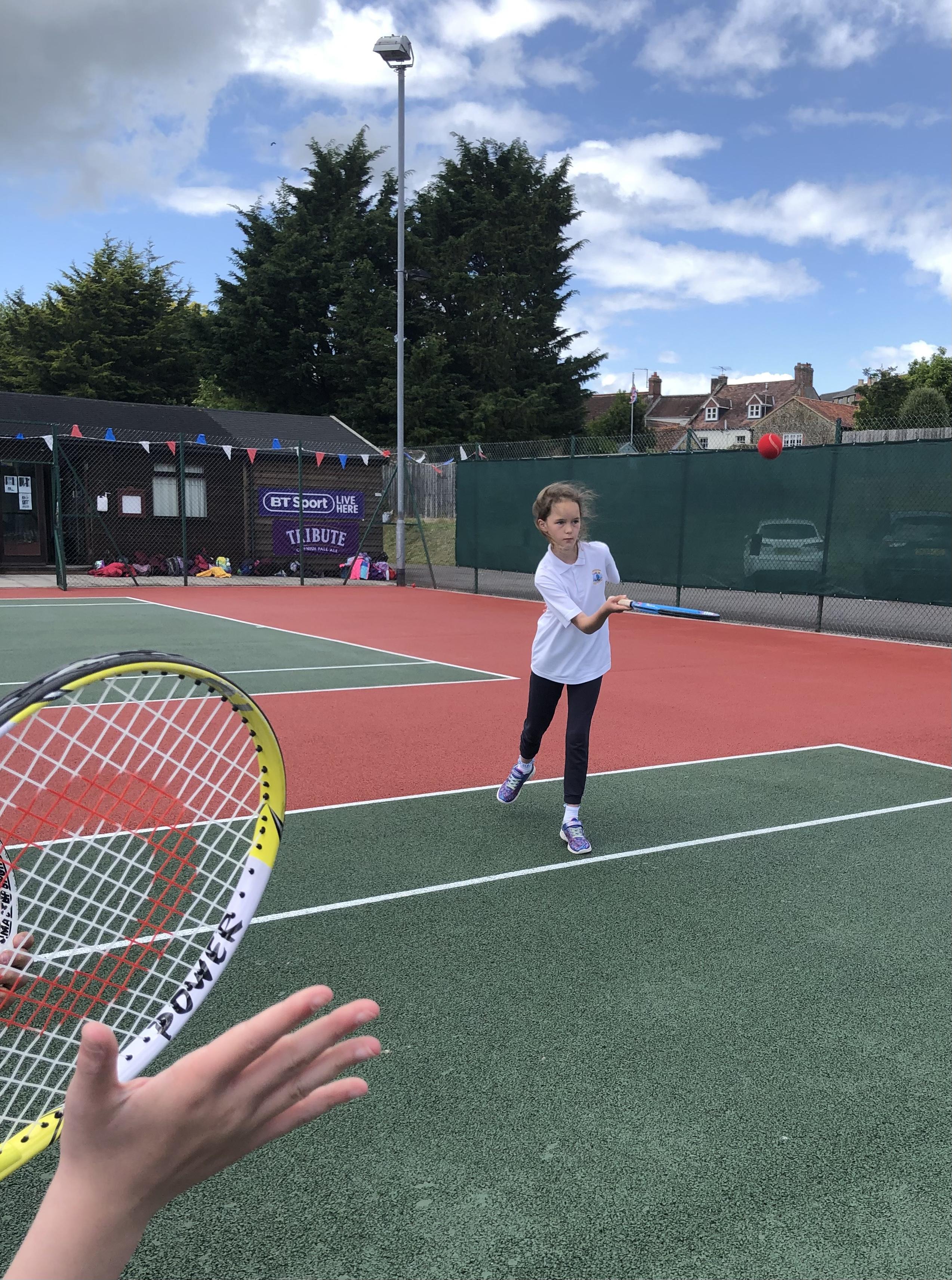 This afternoon, five children headed down to Ilminster Tennis Club to represent the school in a mixed Year 3 and 4 tennis competition. The weather was a little all over the place, with scattered showers and bursts of glorious sunshine; but, despite getting a little wet, the children played some fantastic tennis. For most of the children, it was their first time playing tennis competitively and they did us all proud. It was amazing to see them get excited about tennis and watch their skills progress in just one afternoon. Well done, everyone!