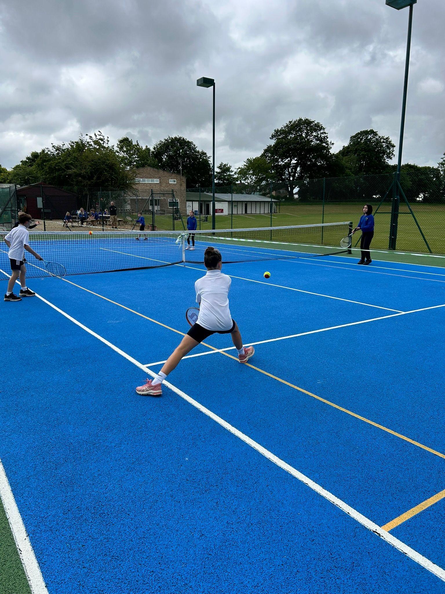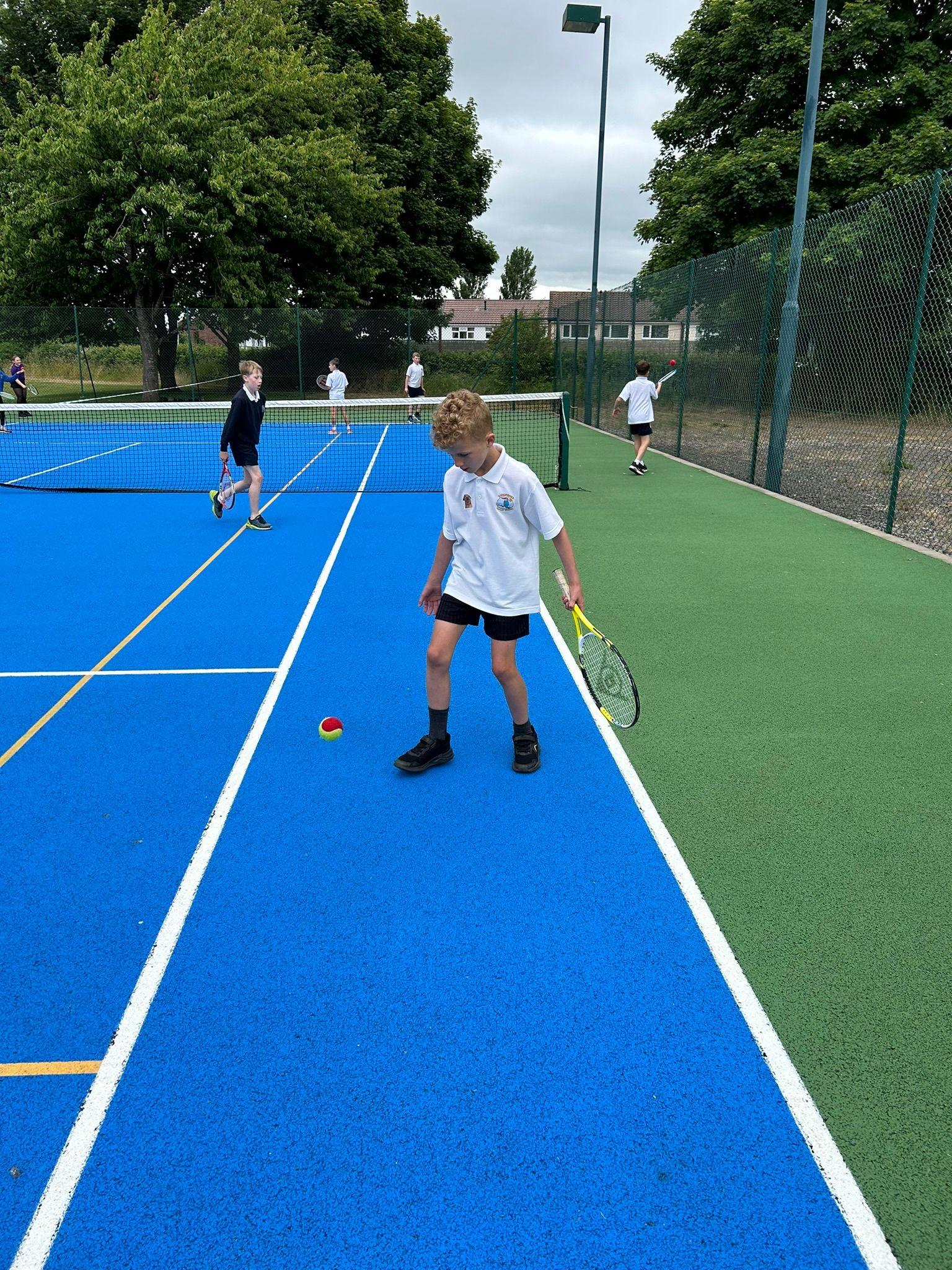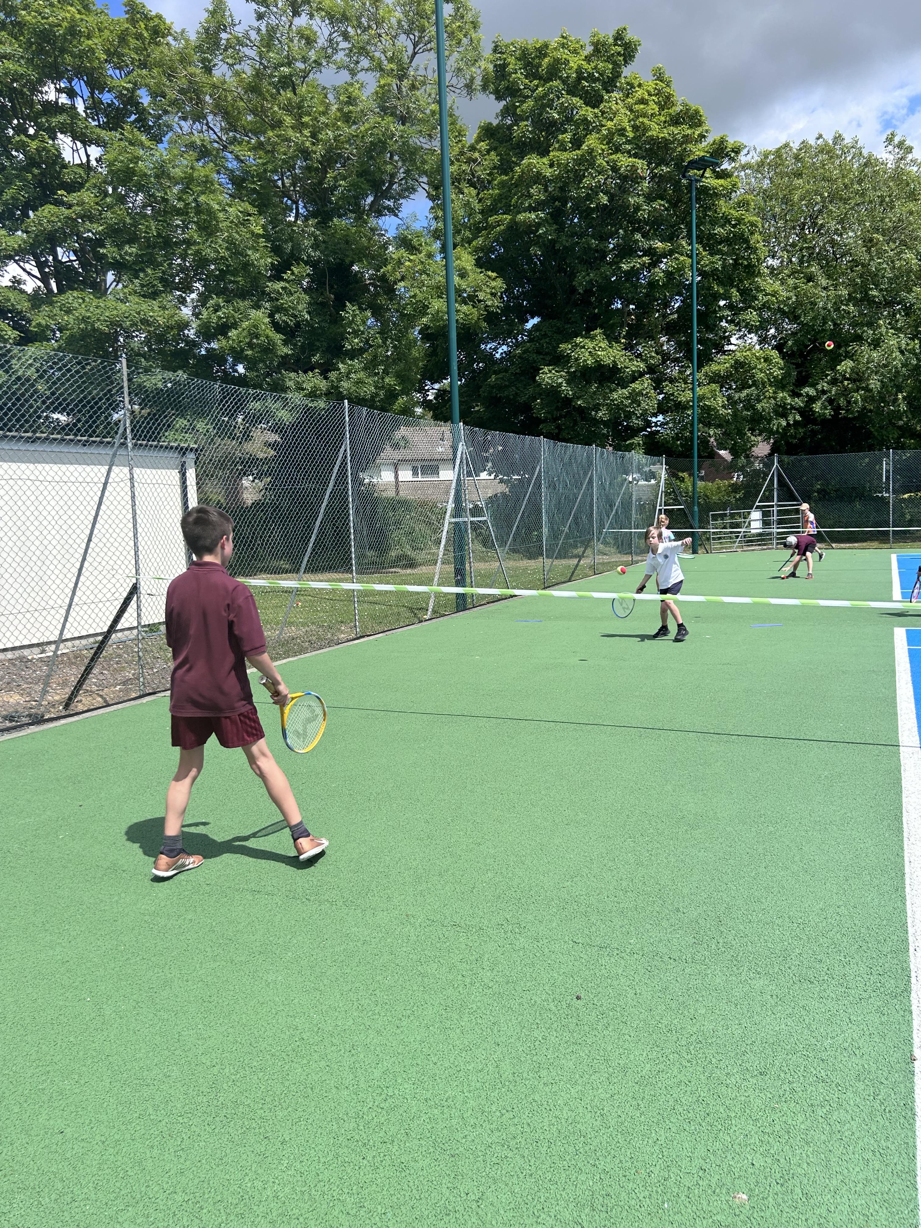 This afternoon, five children headed down to Ilminster Tennis Club to represent the school in a mixed Year 3 and 4 tennis competition. The weather was a little all over the place, with scattered showers and bursts of glorious sunshine; but, despite getting a little wet, the children played some fantastic tennis. For most of the children, it was their first time playing tennis competitively and they did us all proud. It was amazing to see them get excited about tennis and watch their skills progress in just one afternoon. Well done, everyone!