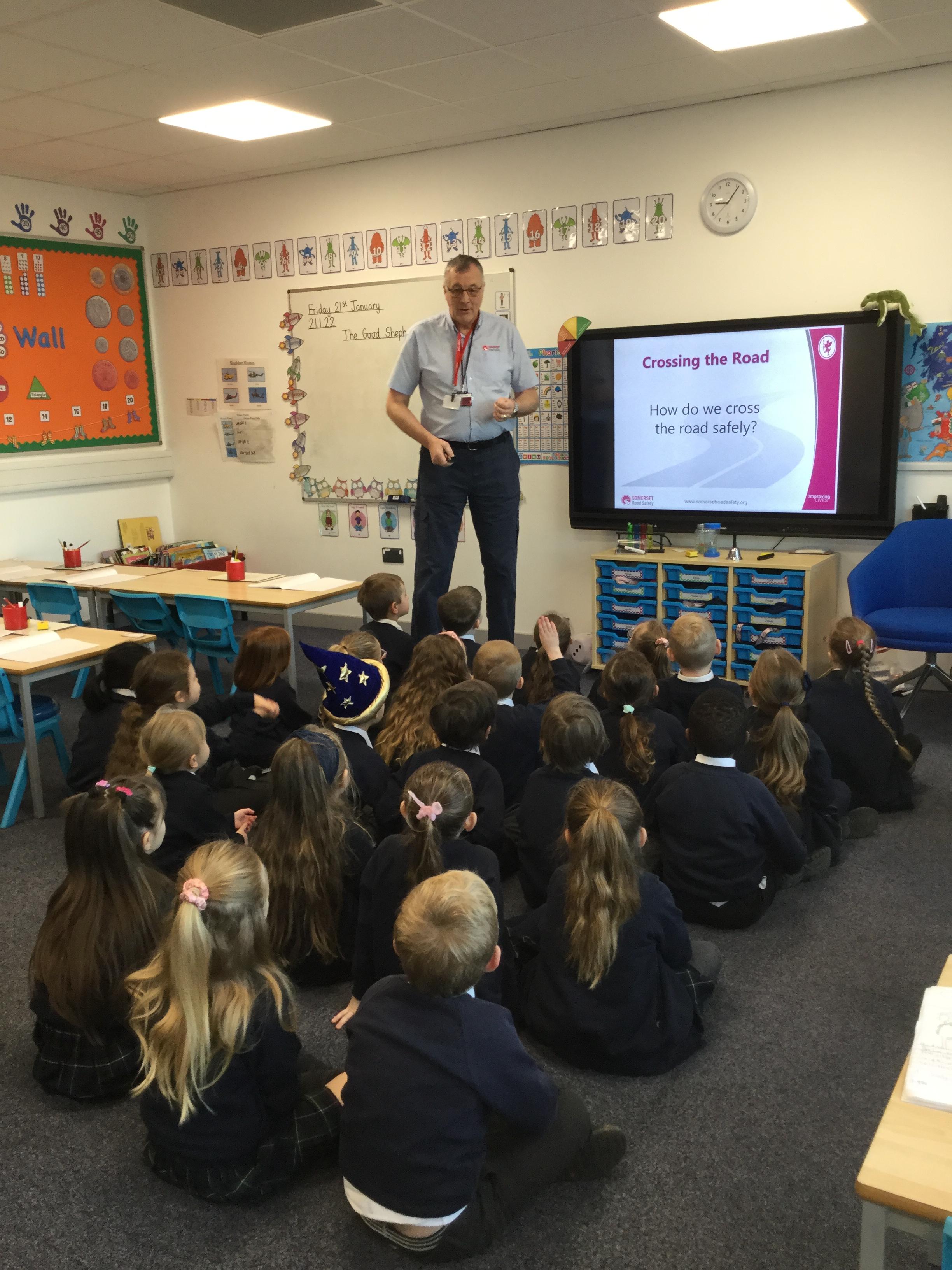 This morning, we had a visit from Martin who talked to us about road safety and how we can stay safe when we are out and about. The children were taught to STOP, LOOK, LISTEN and THINK before crossing the road.