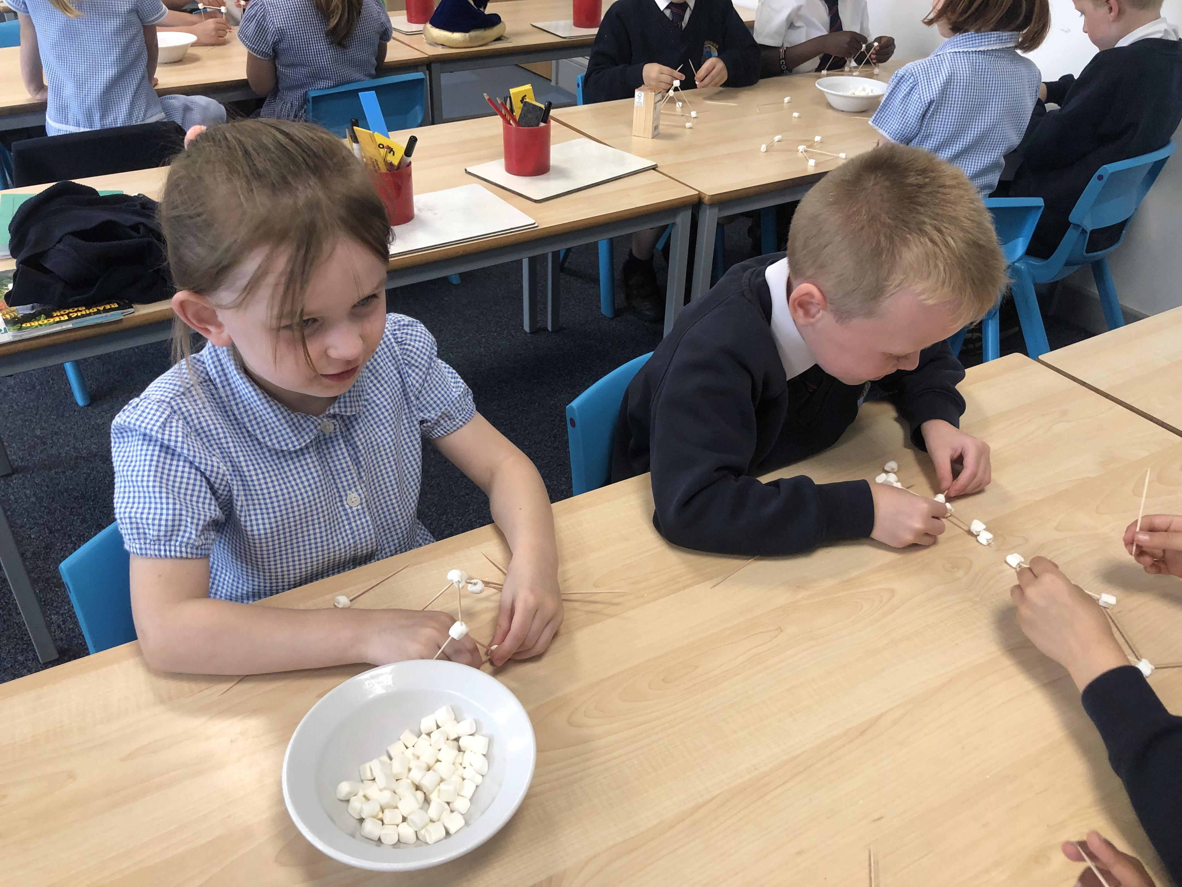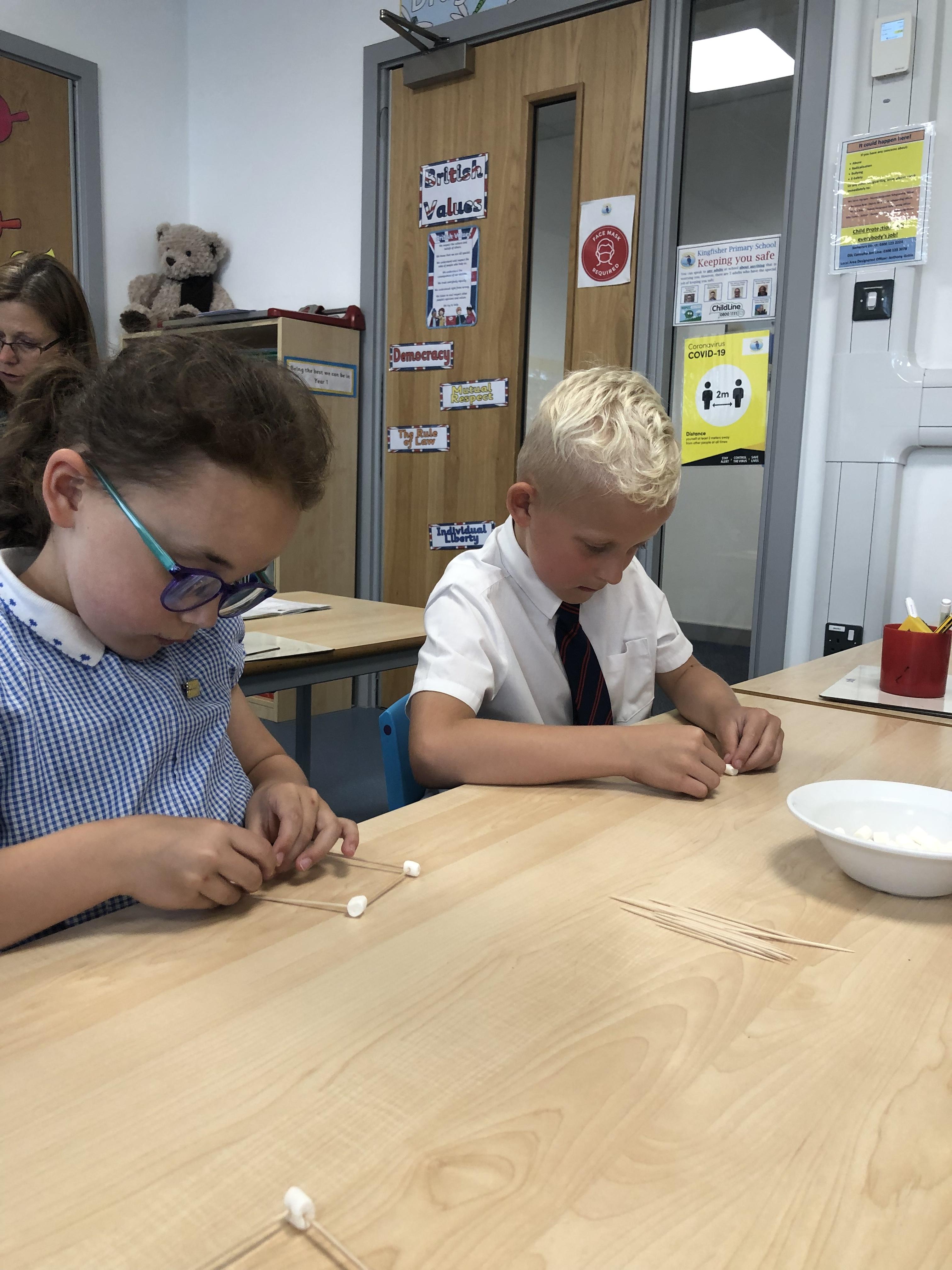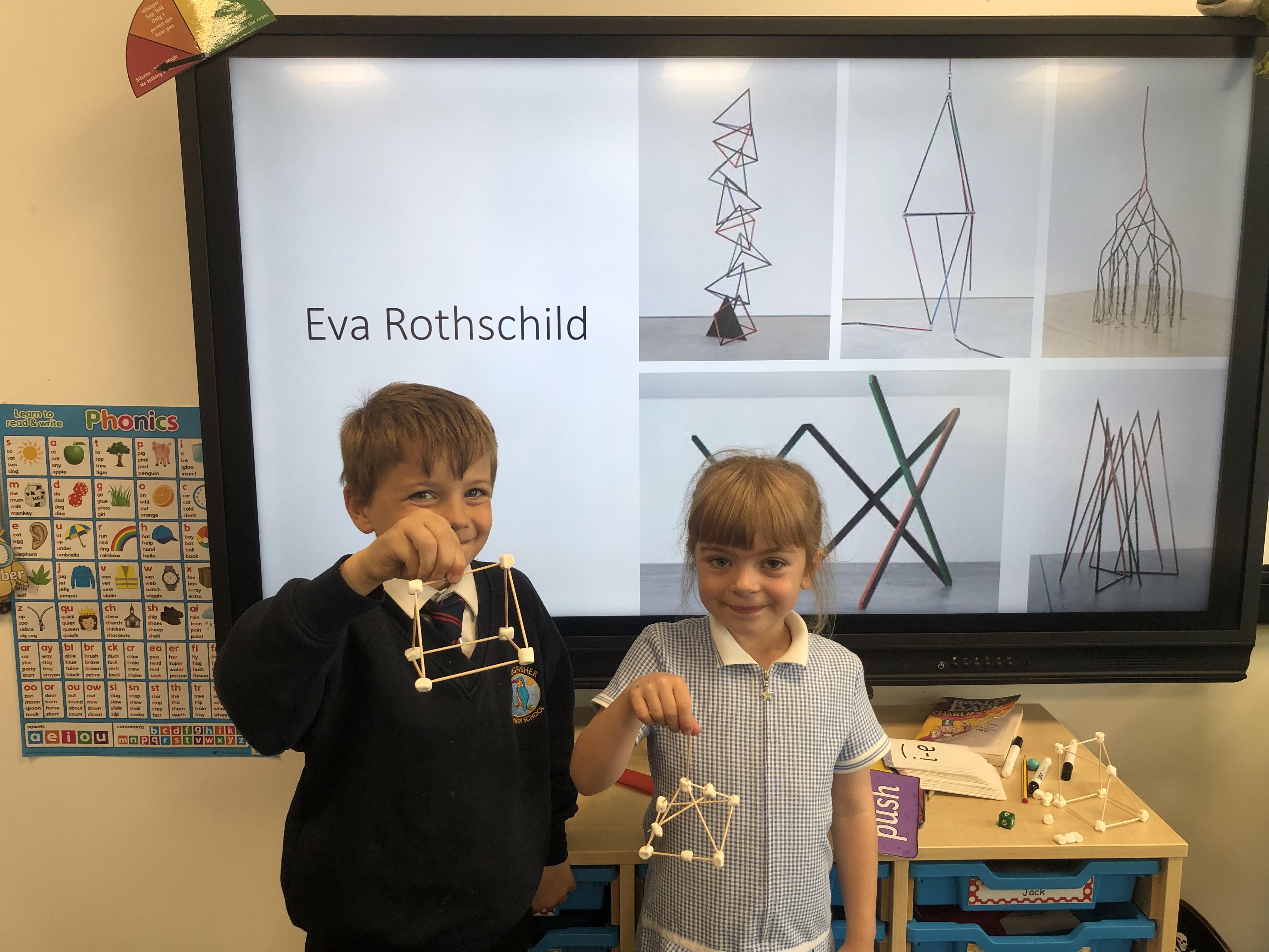 In Art today, the children made their very own sculptures in the style of Eva Rothschild using cocktail sticks and mini marshmallows.
