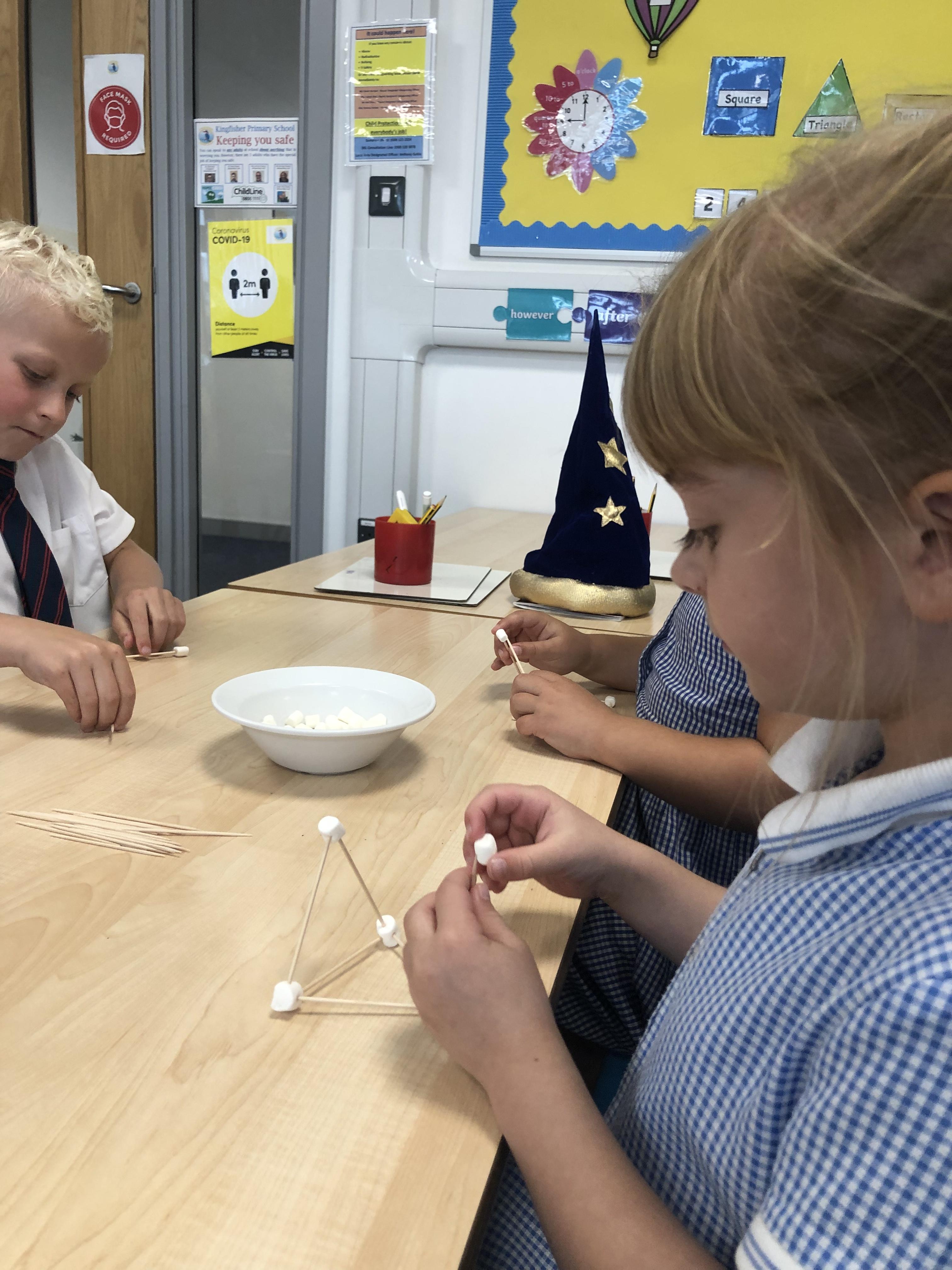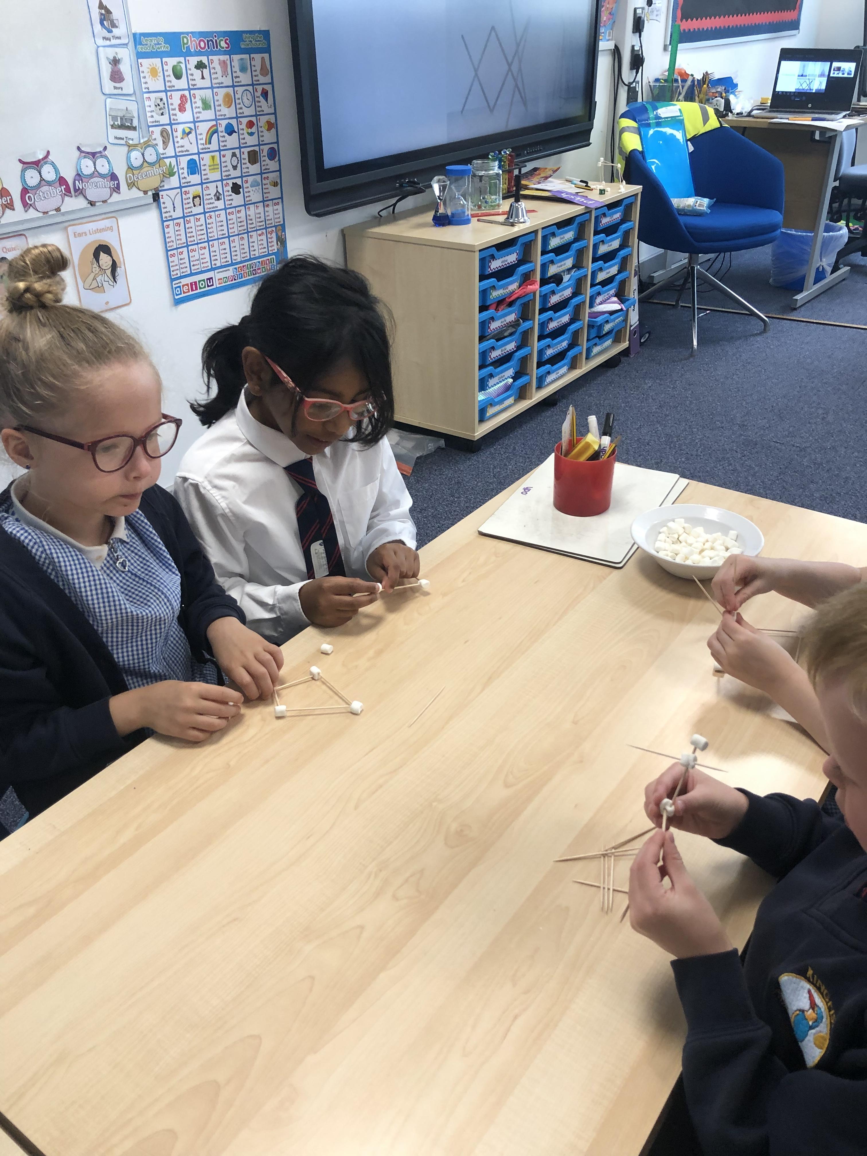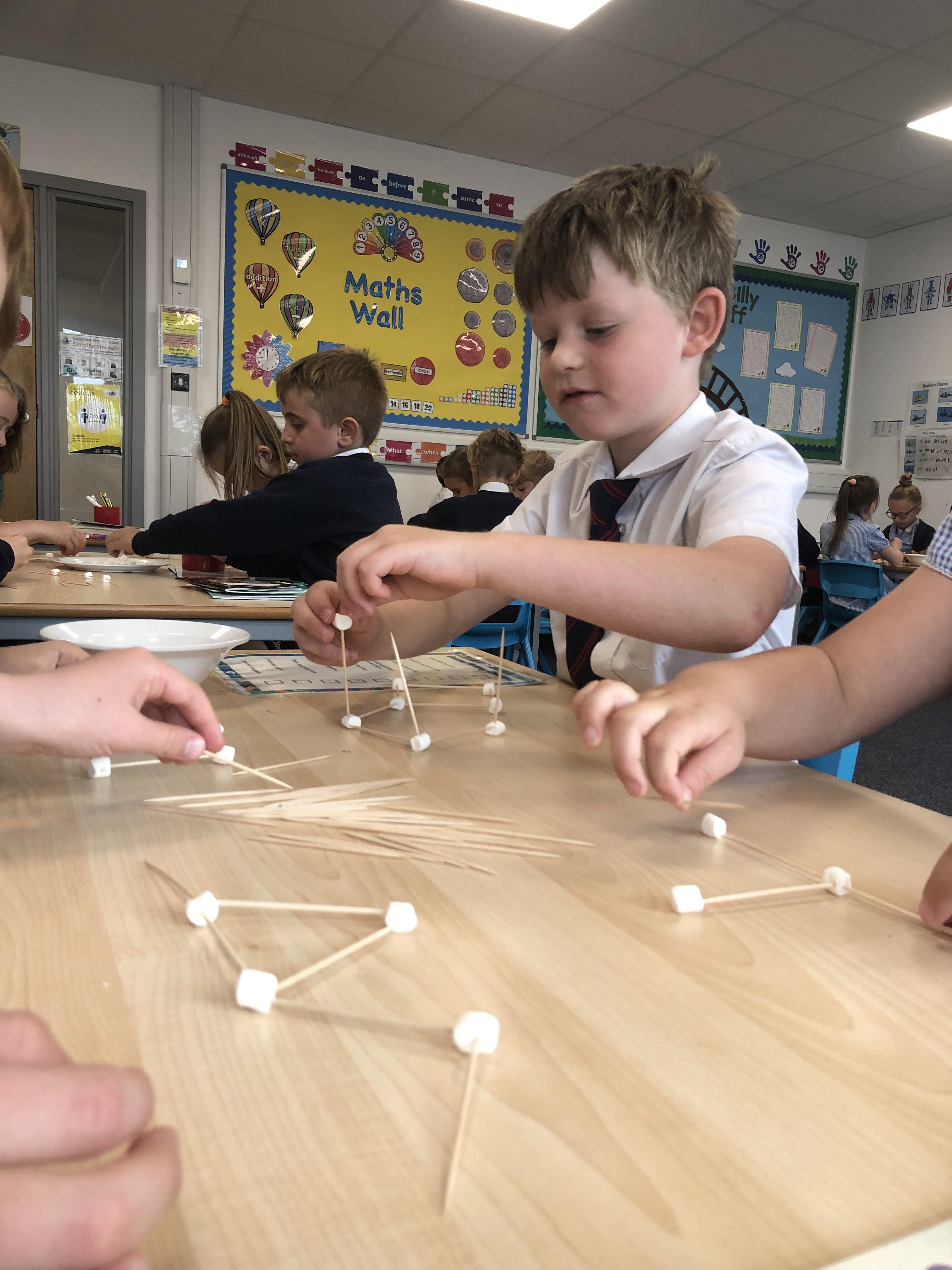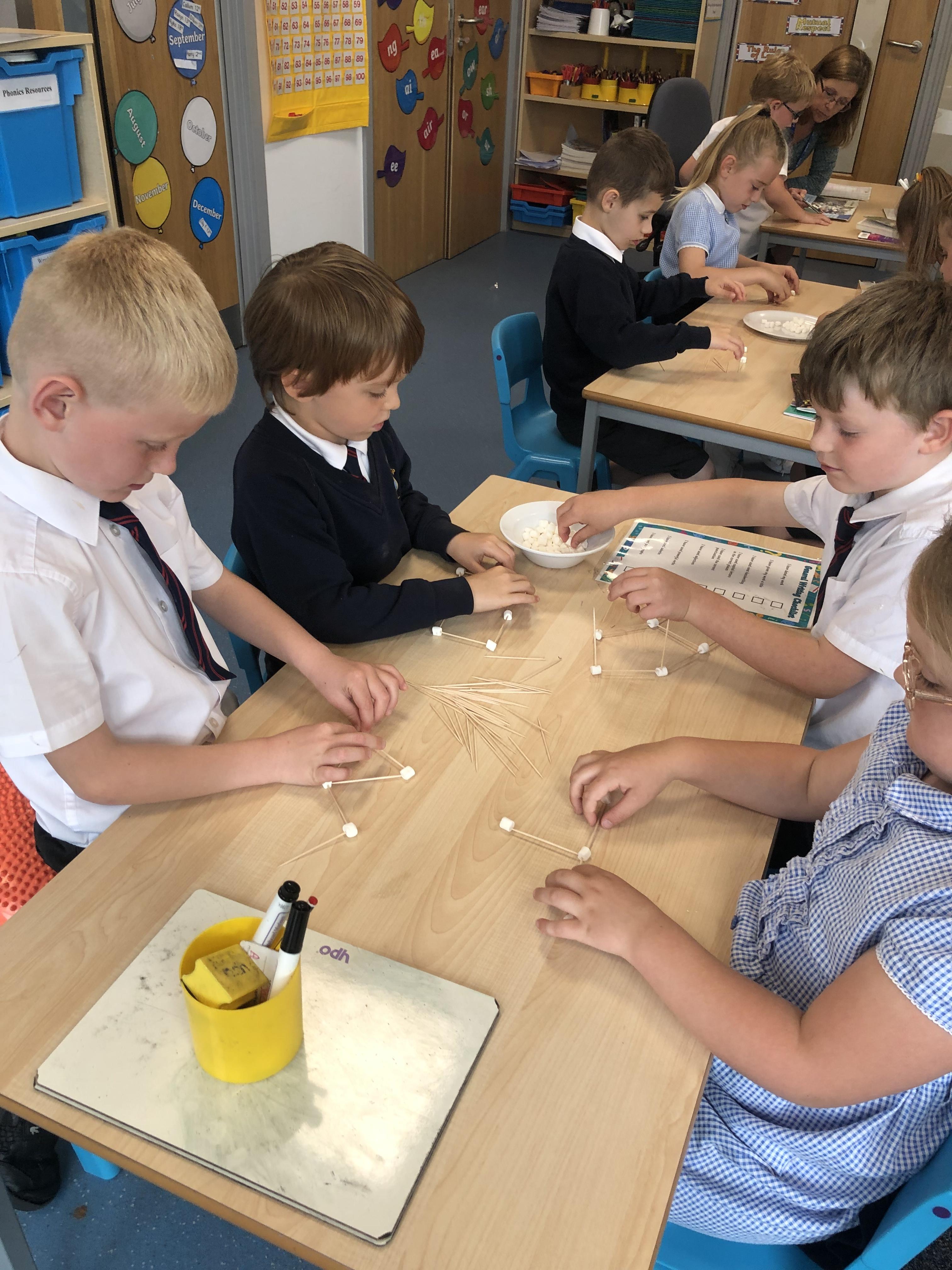 In Art today, the children made their very own sculptures in the style of Eva Rothschild using cocktail sticks and mini marshmallows.