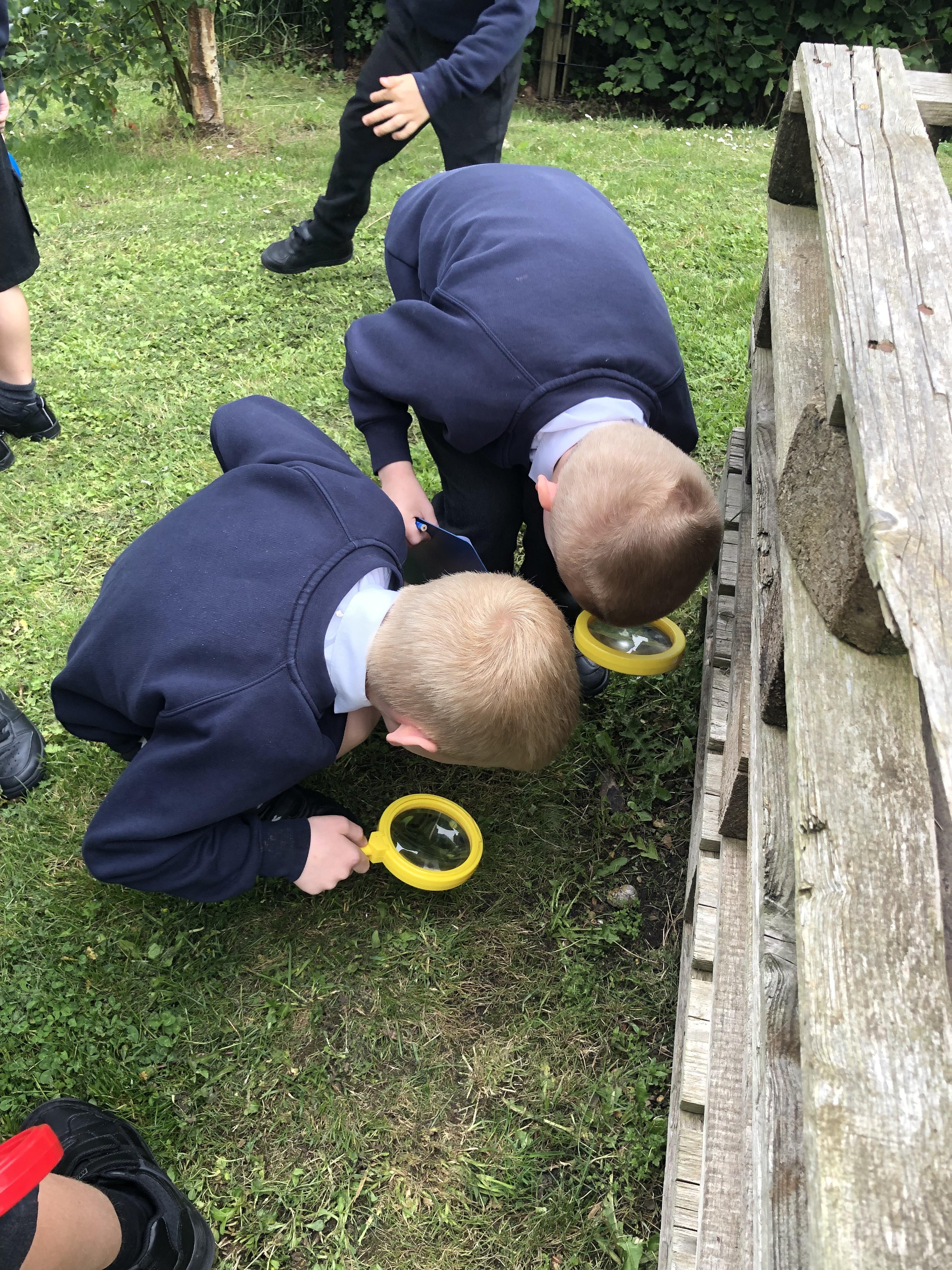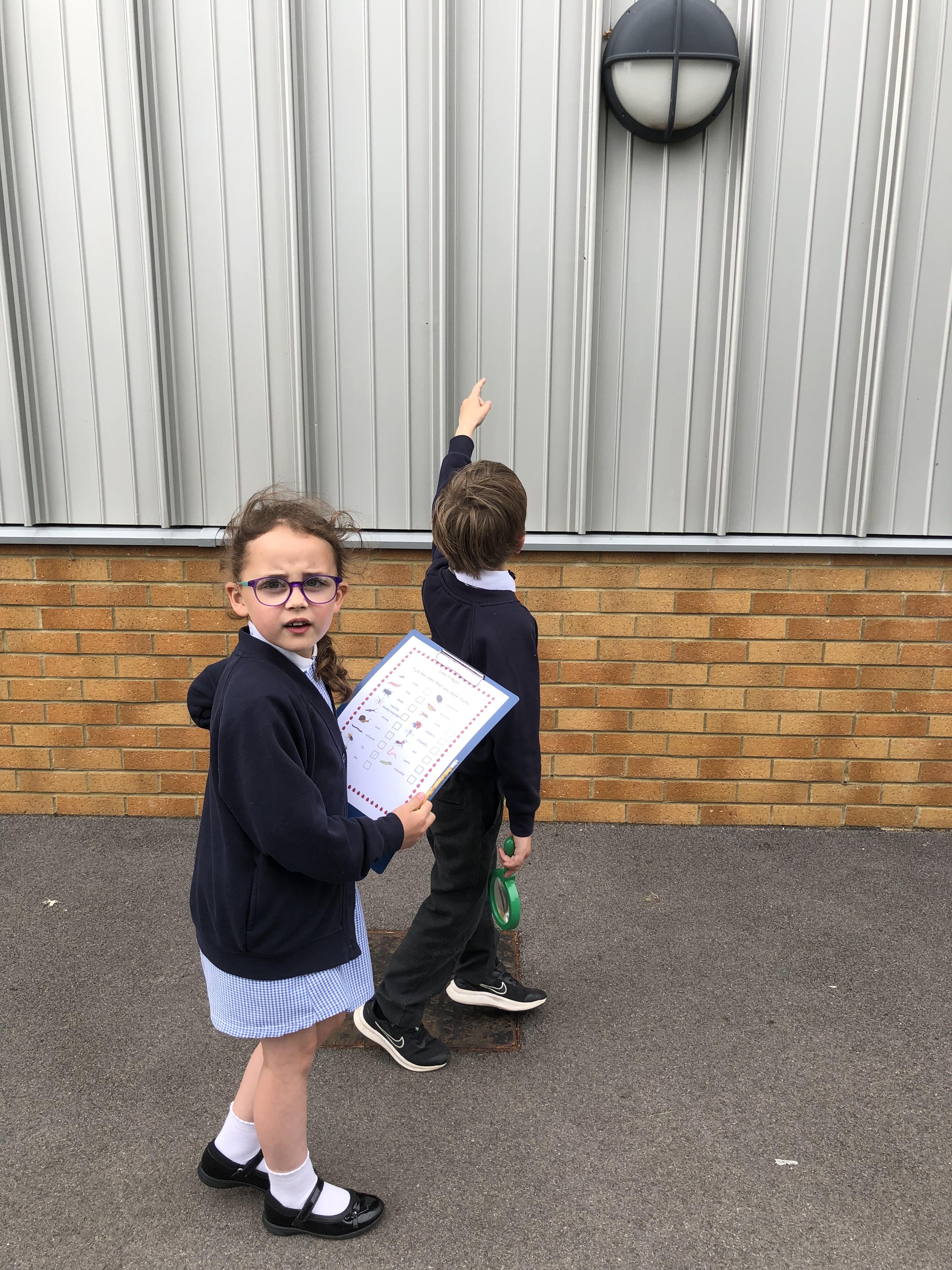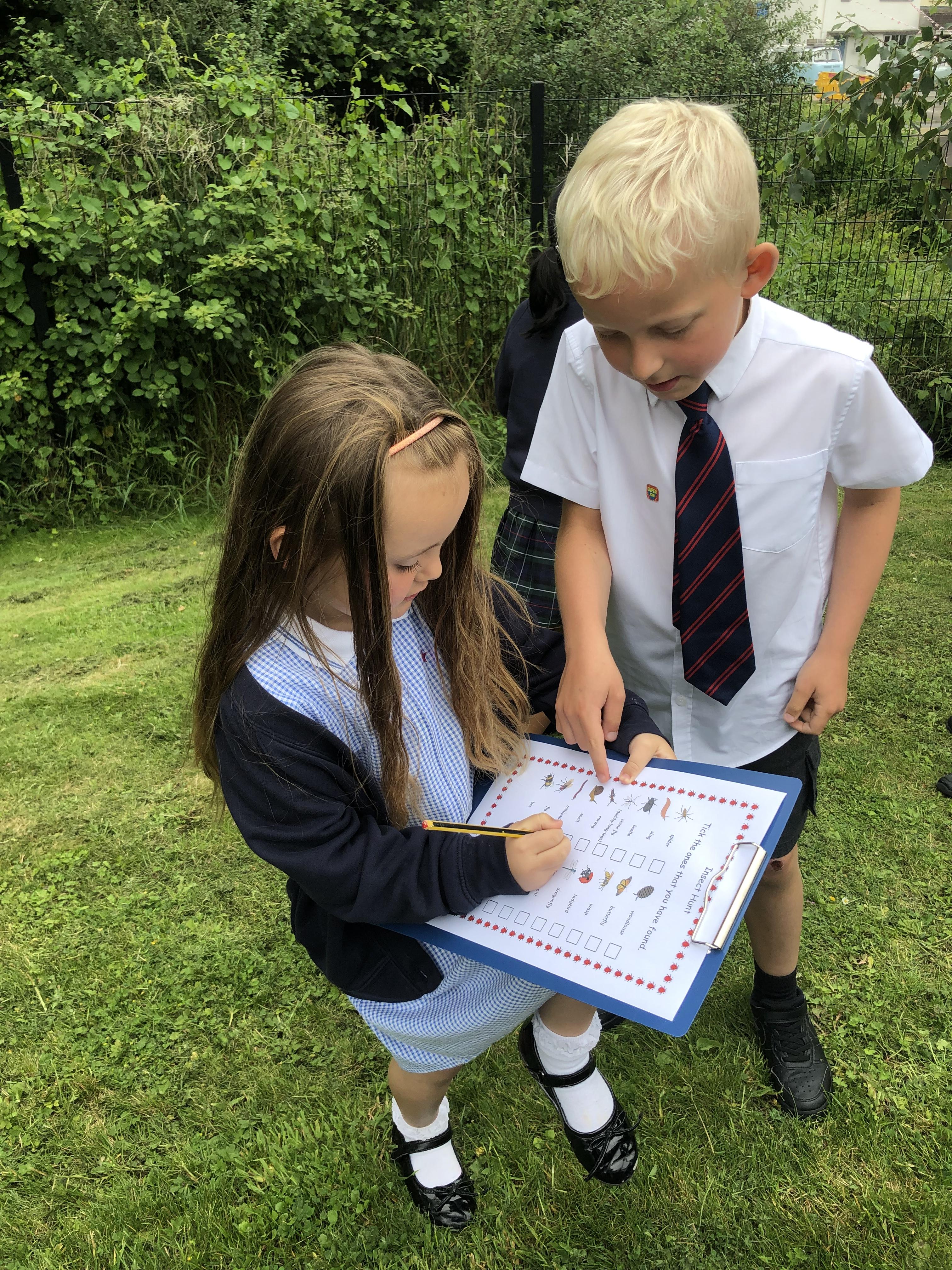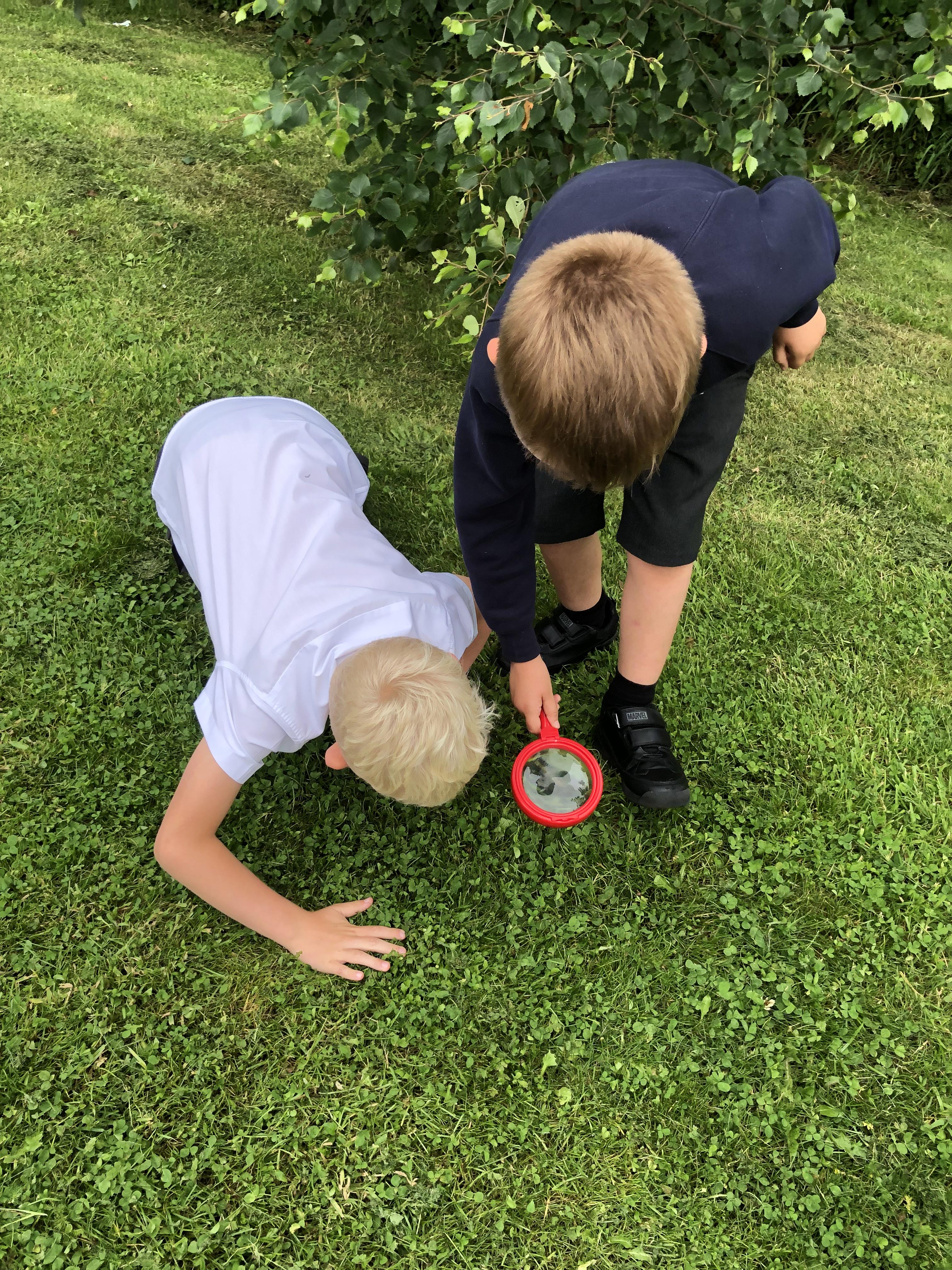 In Science today, the children were learning all about insects. It was only fitting therefore, to go on a class bug hunt and see what mini beasts we could find on campus. The children had so much fun using the magnifying glasses and recording their findings.