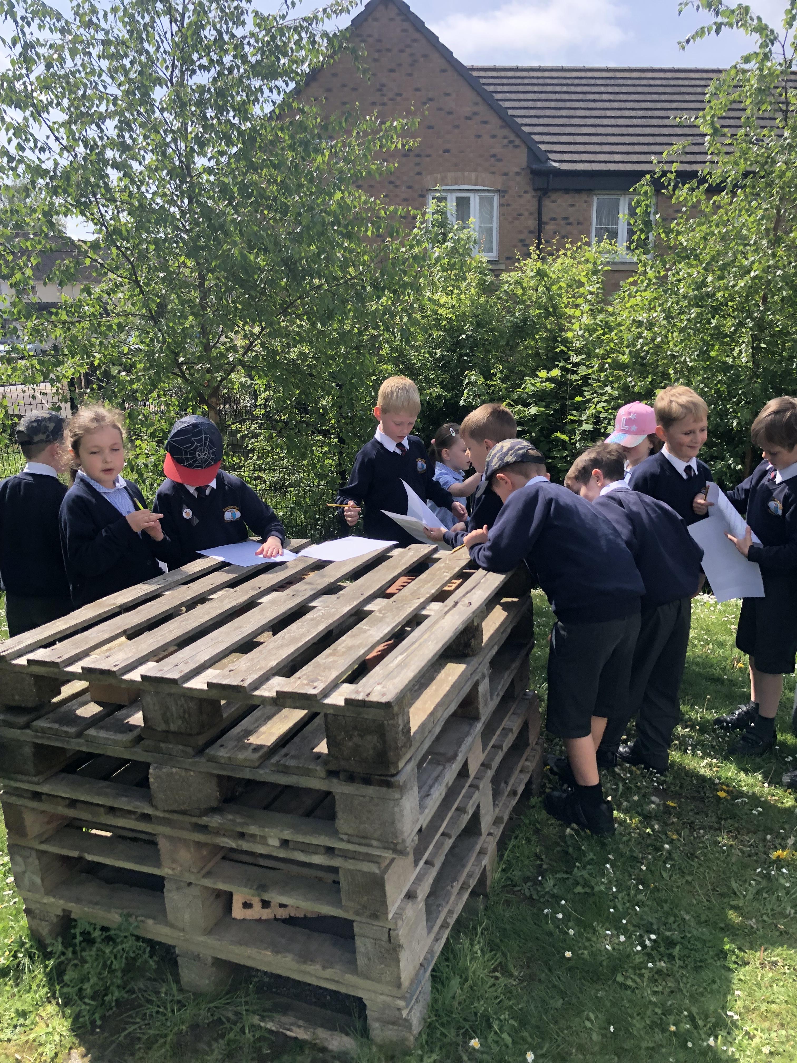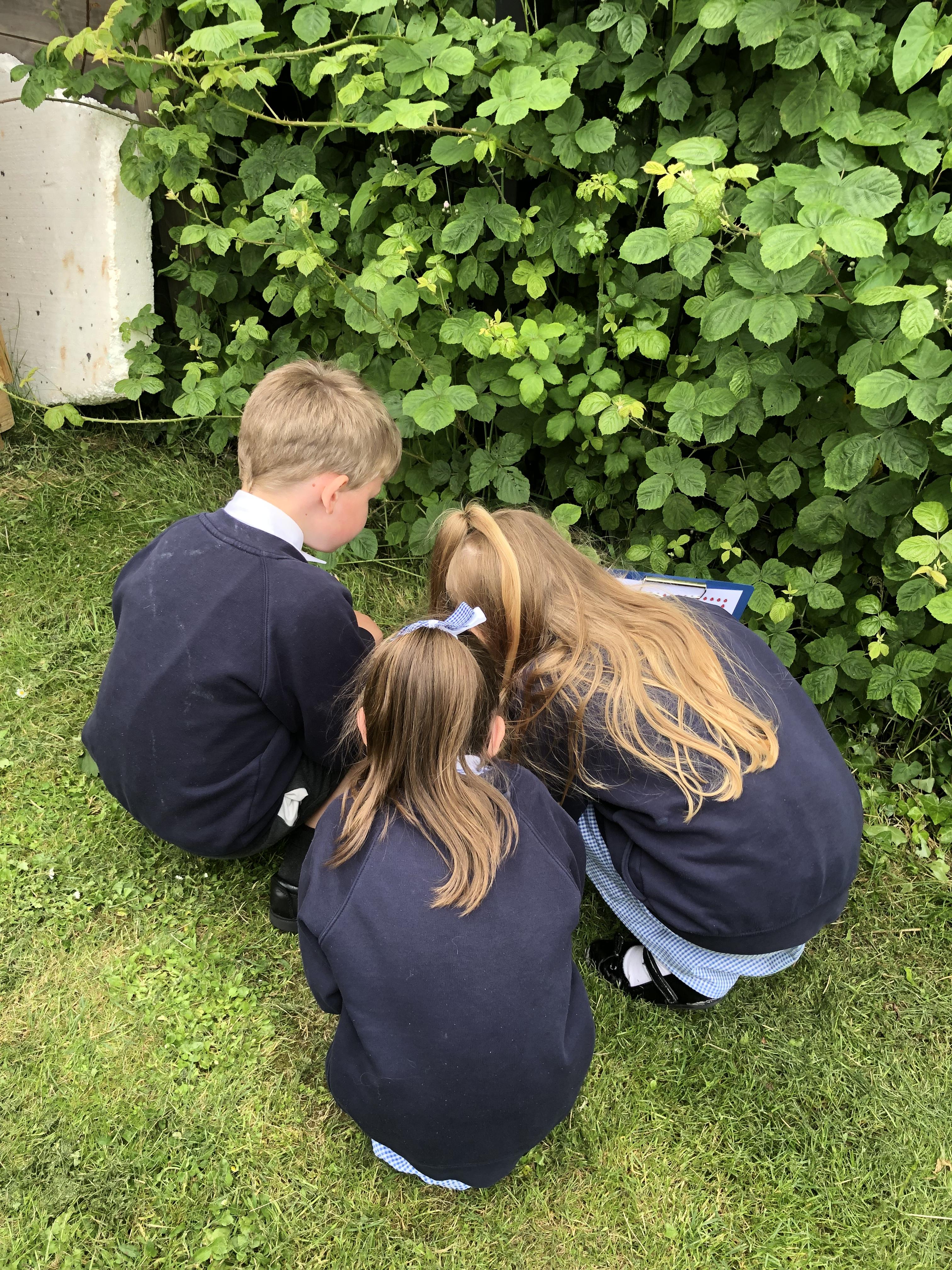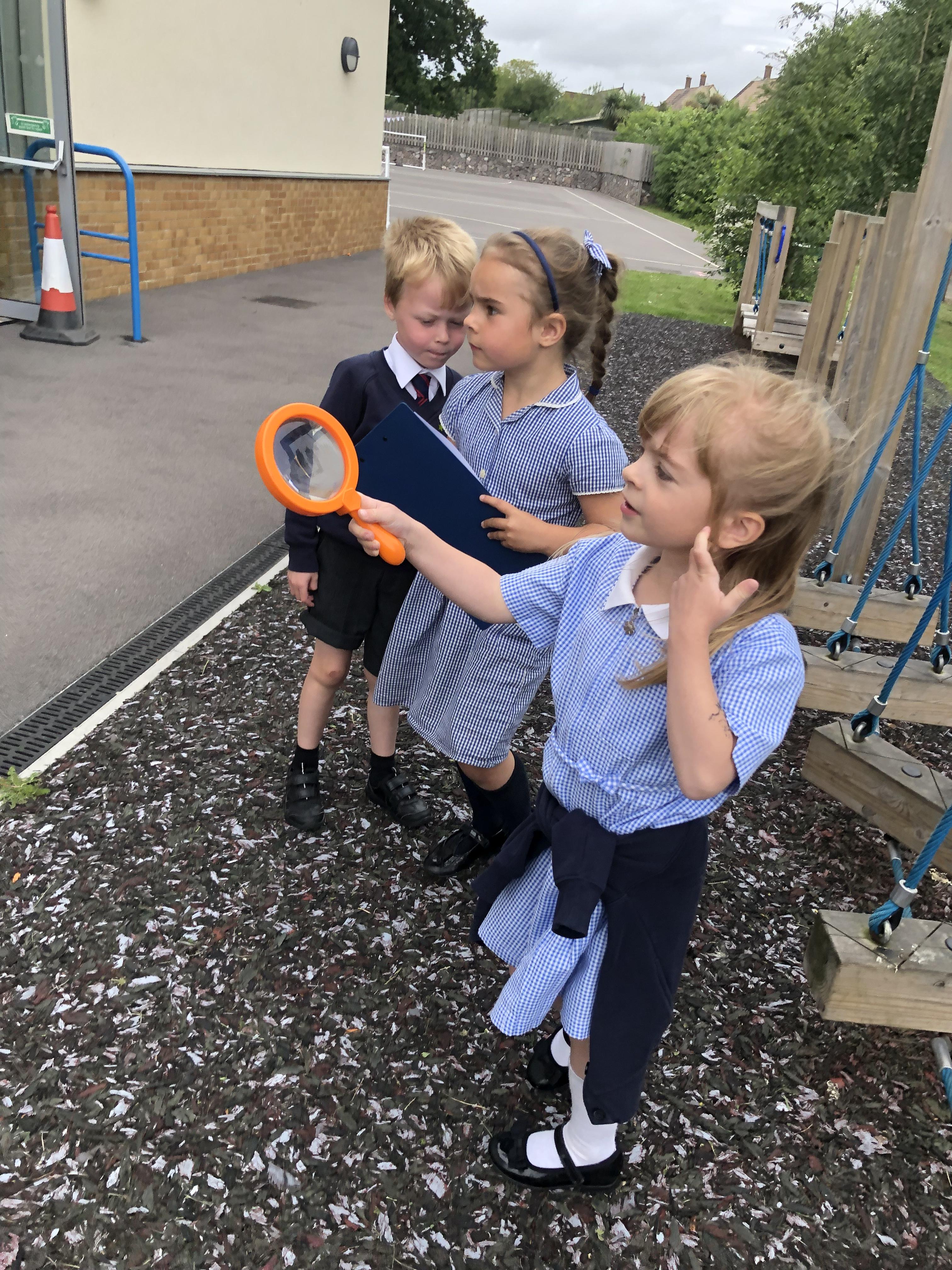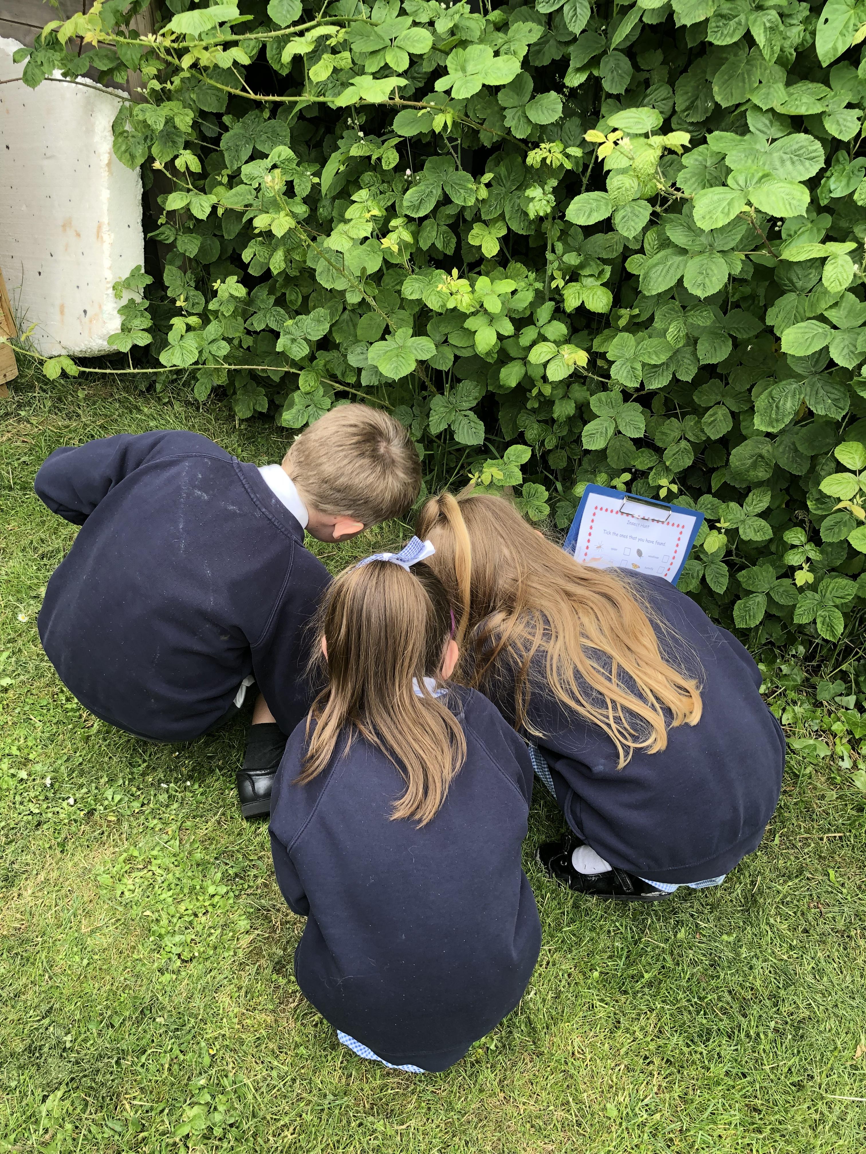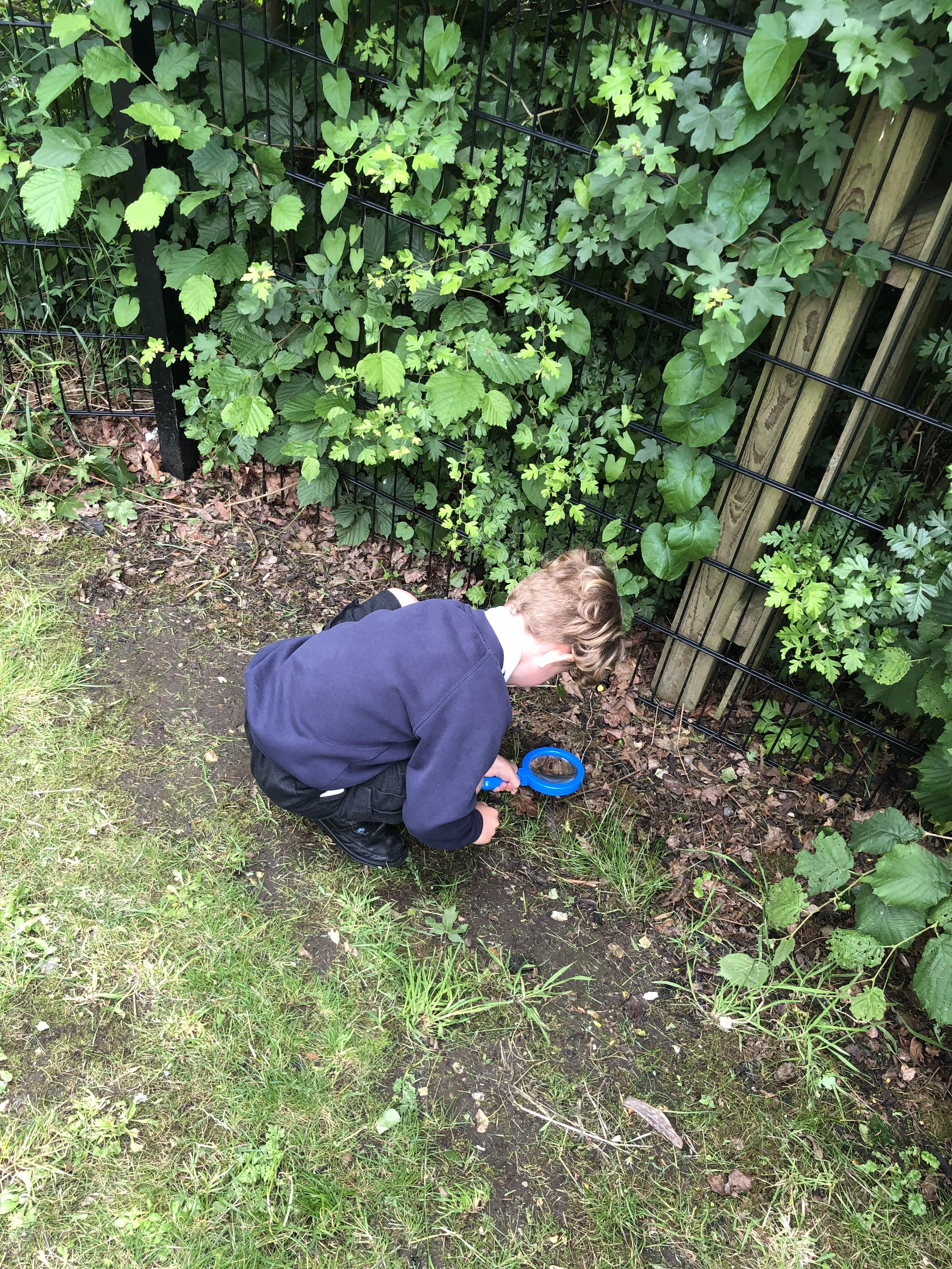In Science today, the children were learning all about insects. It was only fitting therefore, to go on a class bug hunt and see what mini beasts we could find on campus. The children had so much fun using the magnifying glasses and recording their findings.