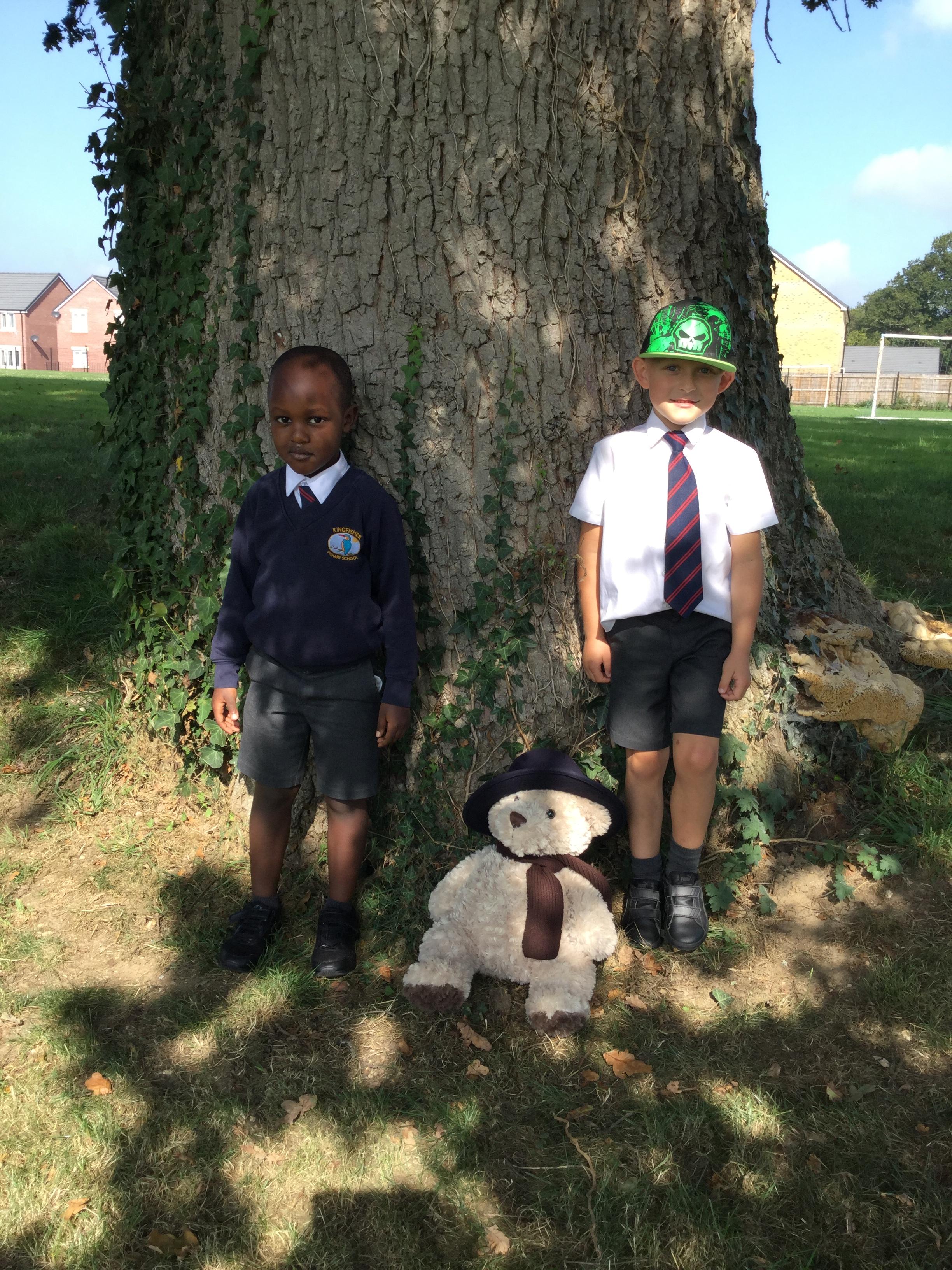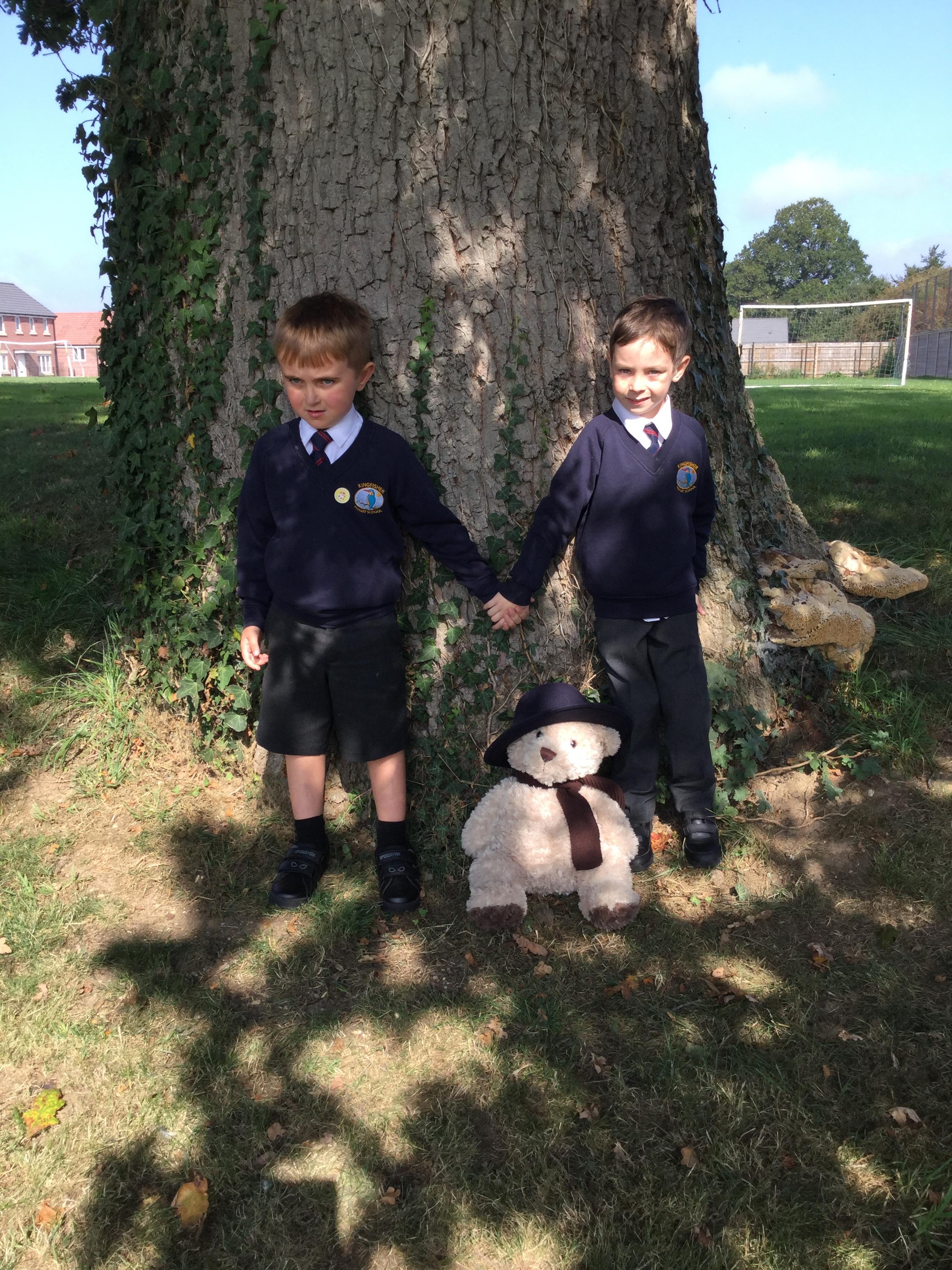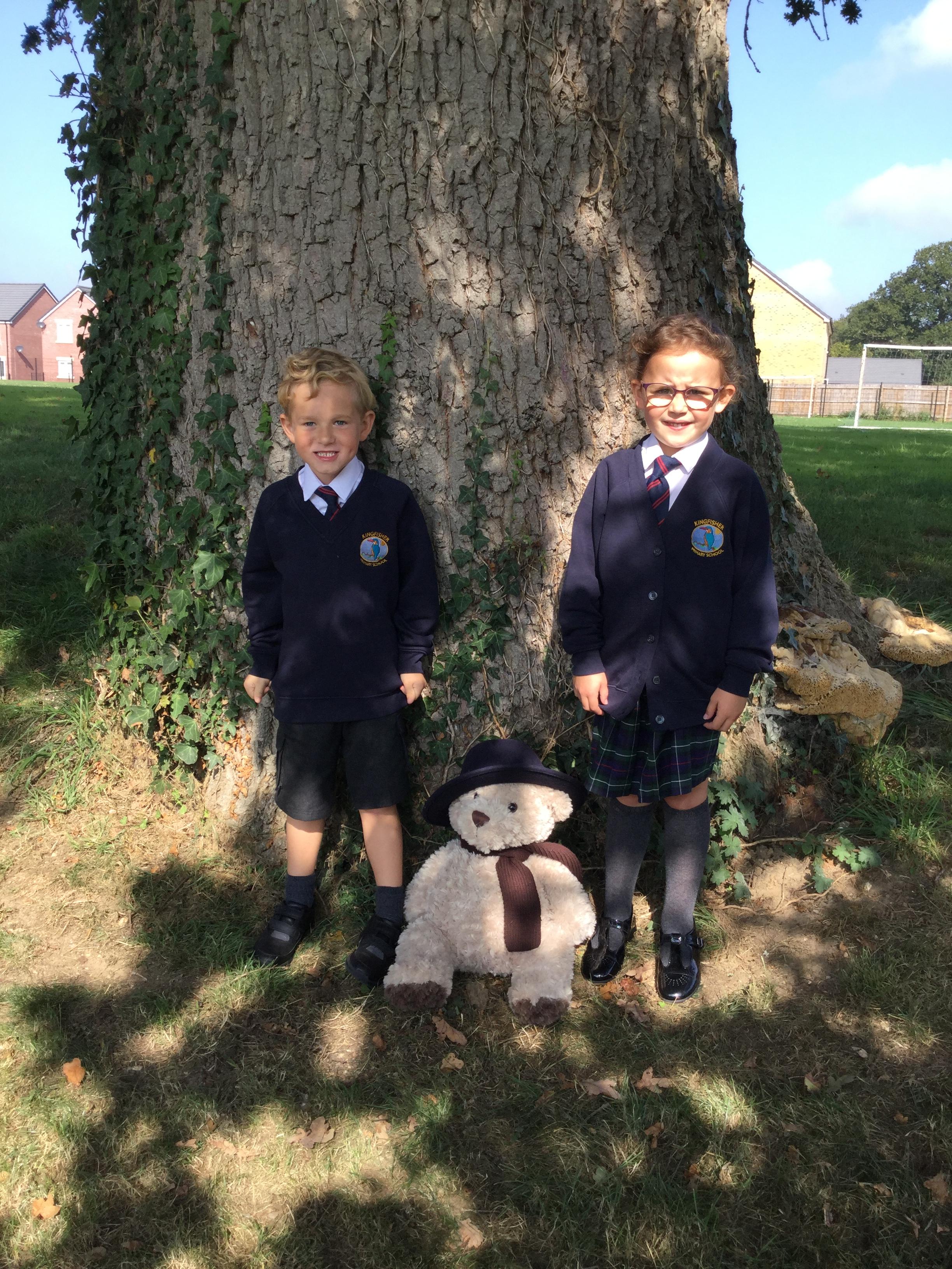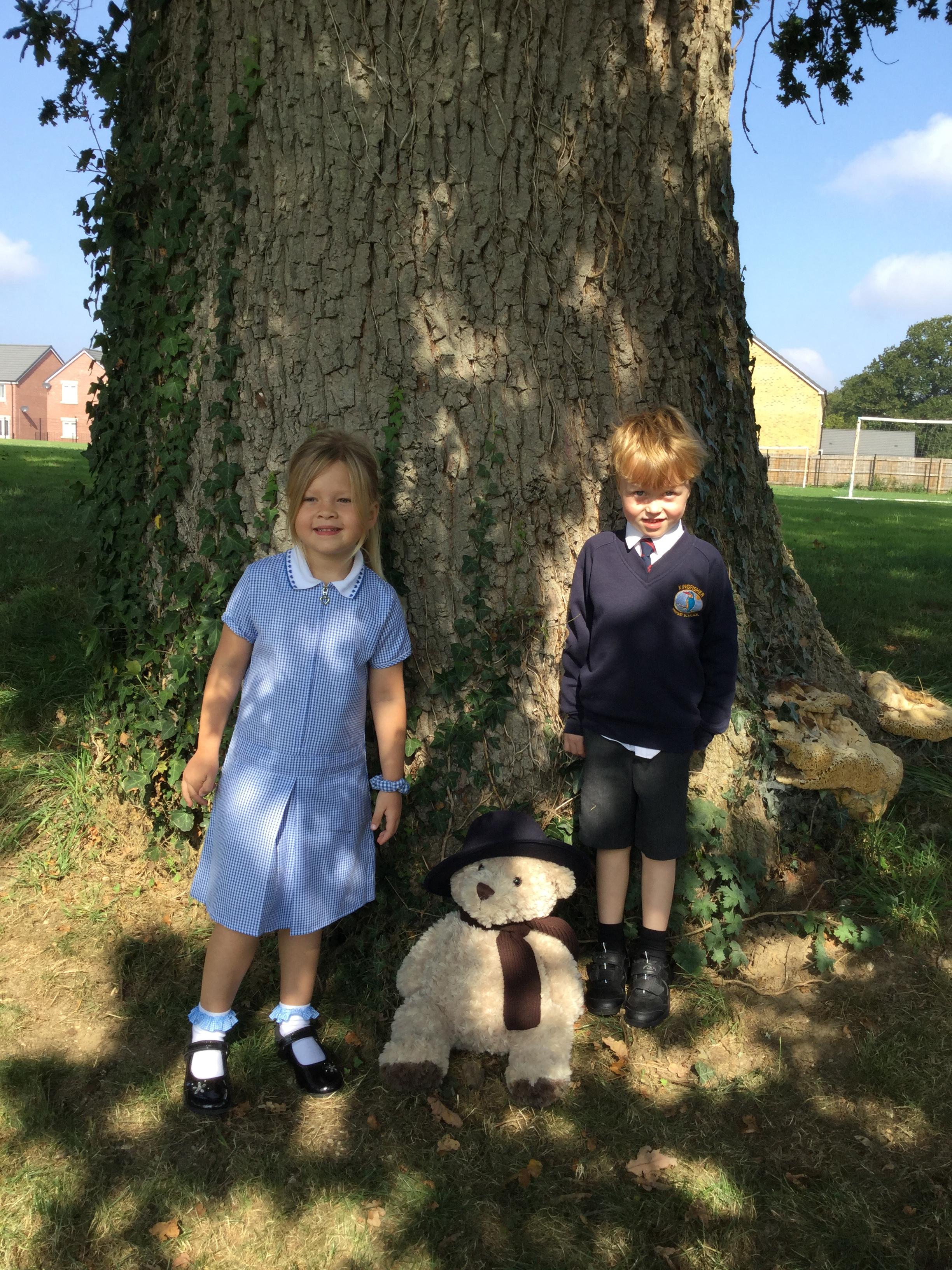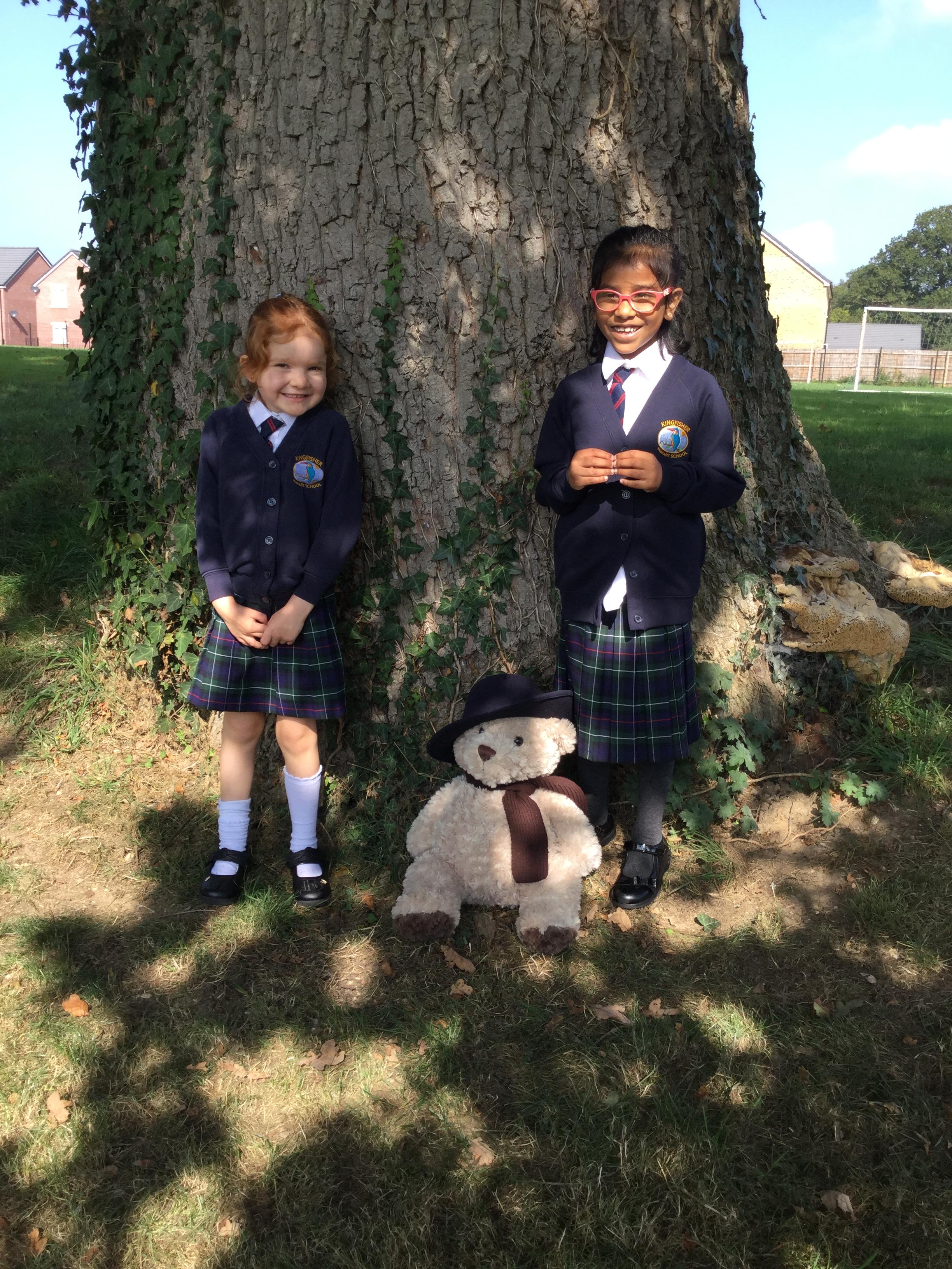 In English, we have been basing all of our work around the popular children's book 'We're going on a Bear Hunt'. After, a busy week of writing, the children were very excited to go on our very own bear hunt around the school. The children very carefully followed the bear foot prints and were very excited when they found the bear under the oak tree on the playing fields.