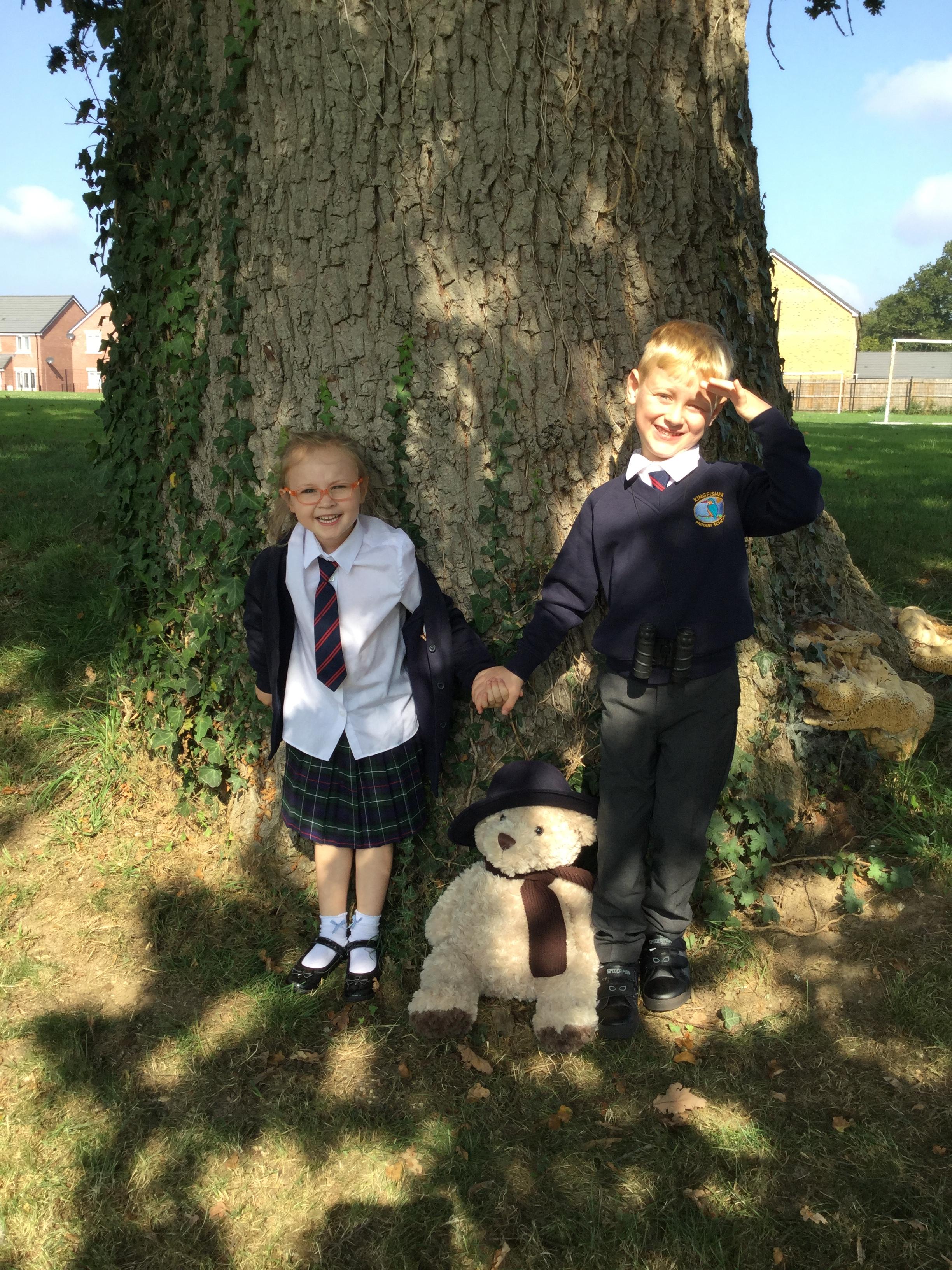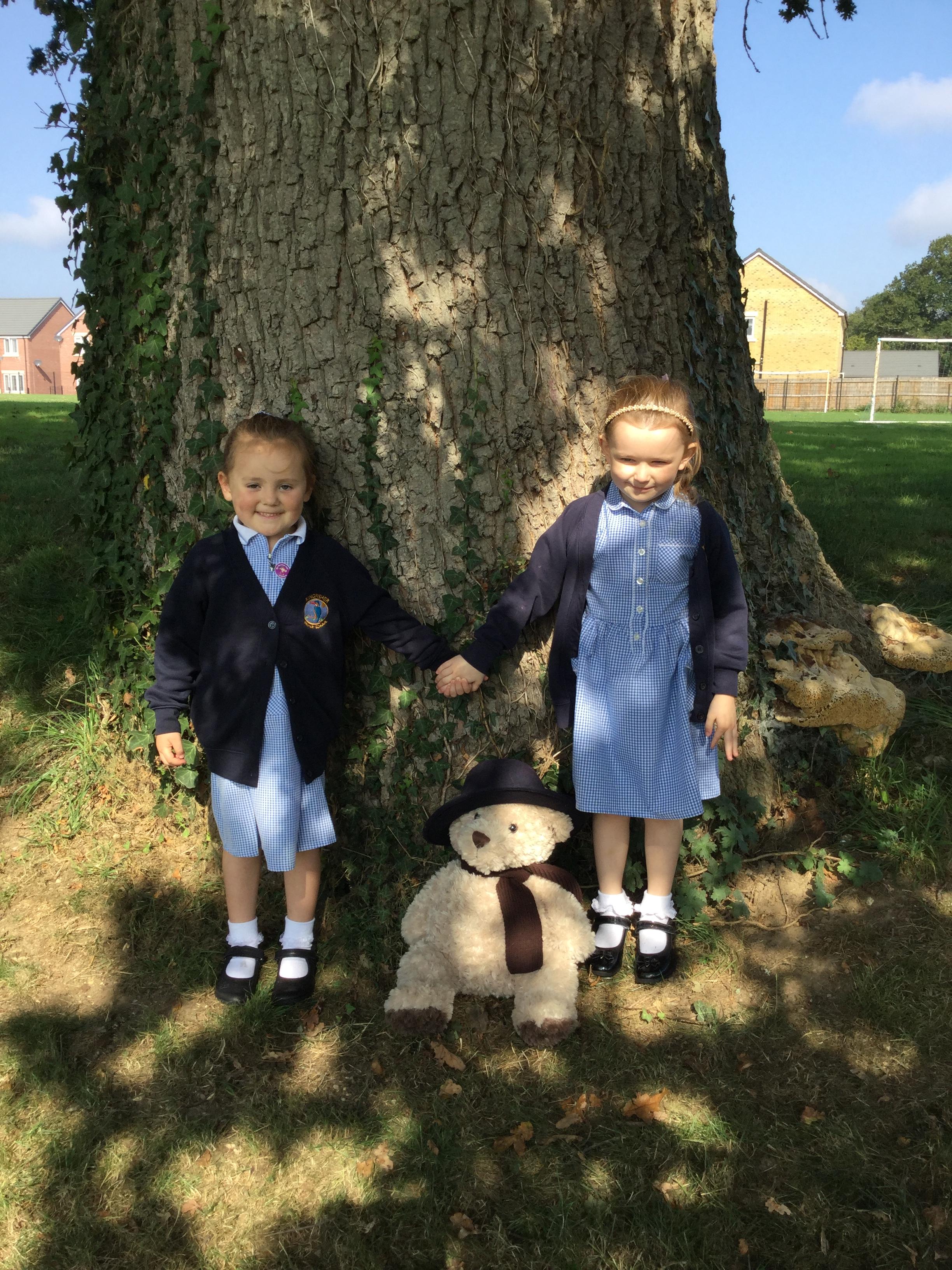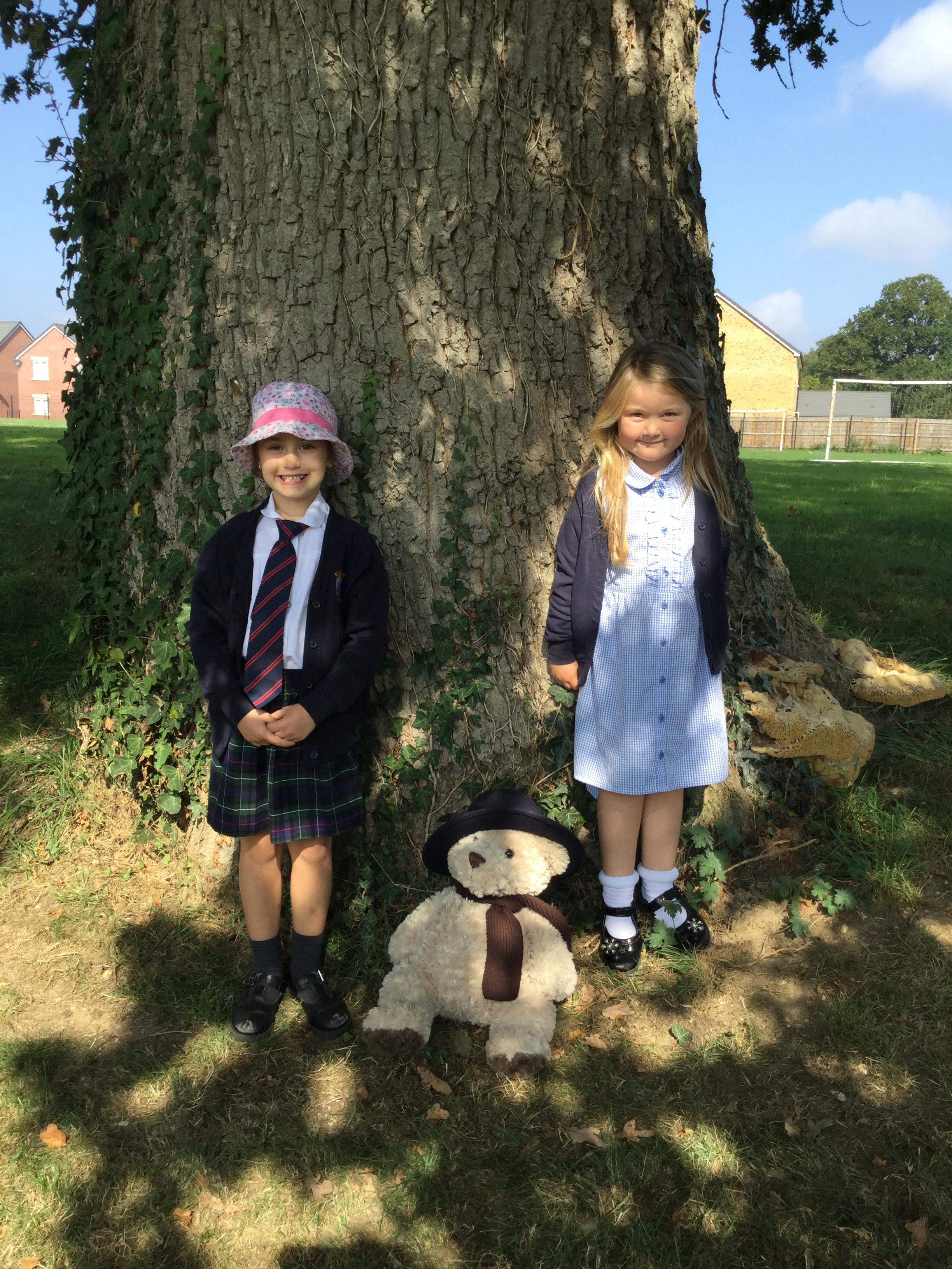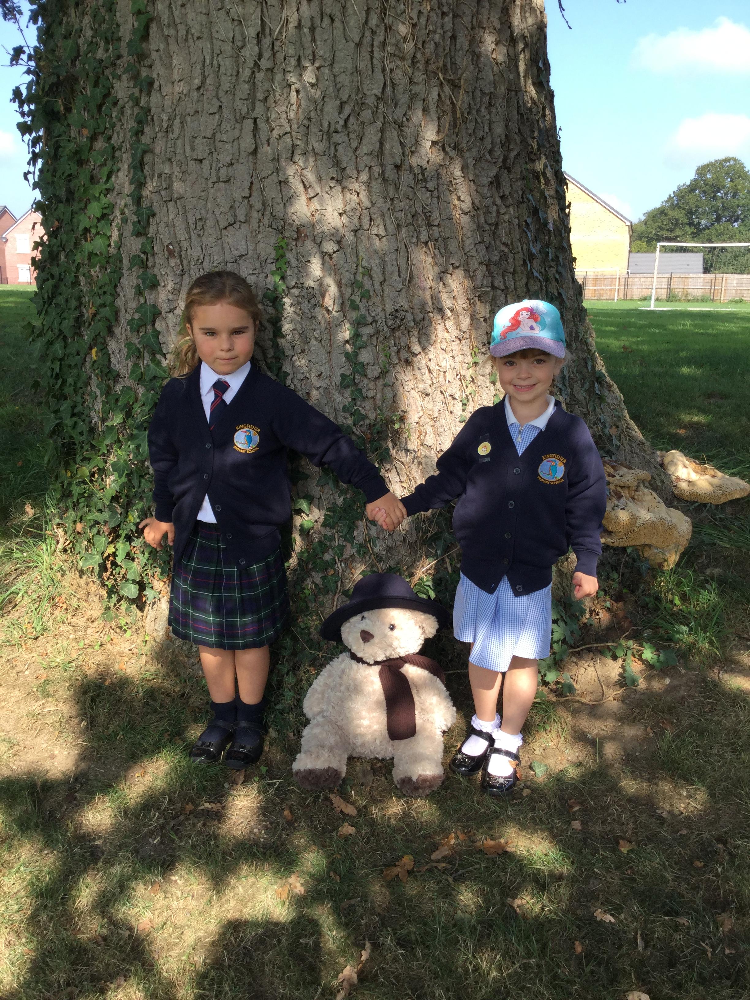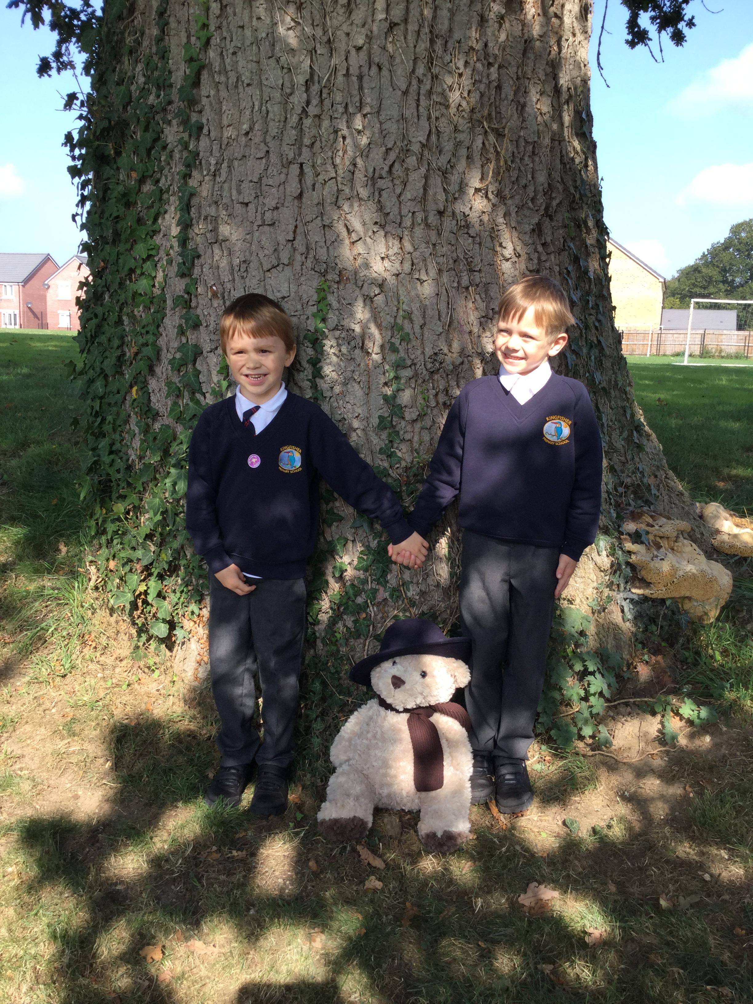 In English, we have been basing all of our work around the popular children's book 'We're going on a Bear Hunt'. After, a busy week of writing, the children were very excited to go on our very own bear hunt around the school. The children very carefully followed the bear foot prints and were very excited when they found the bear under the oak tree on the playing fields.