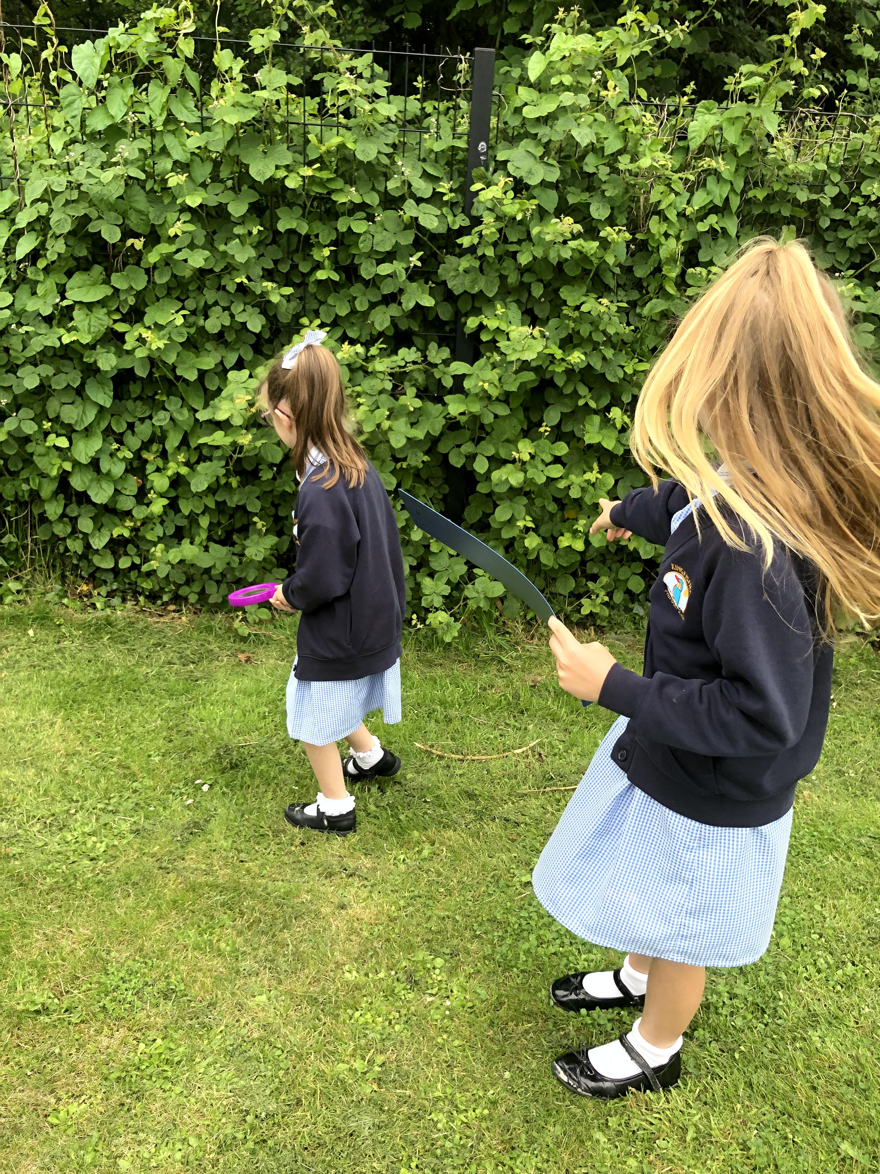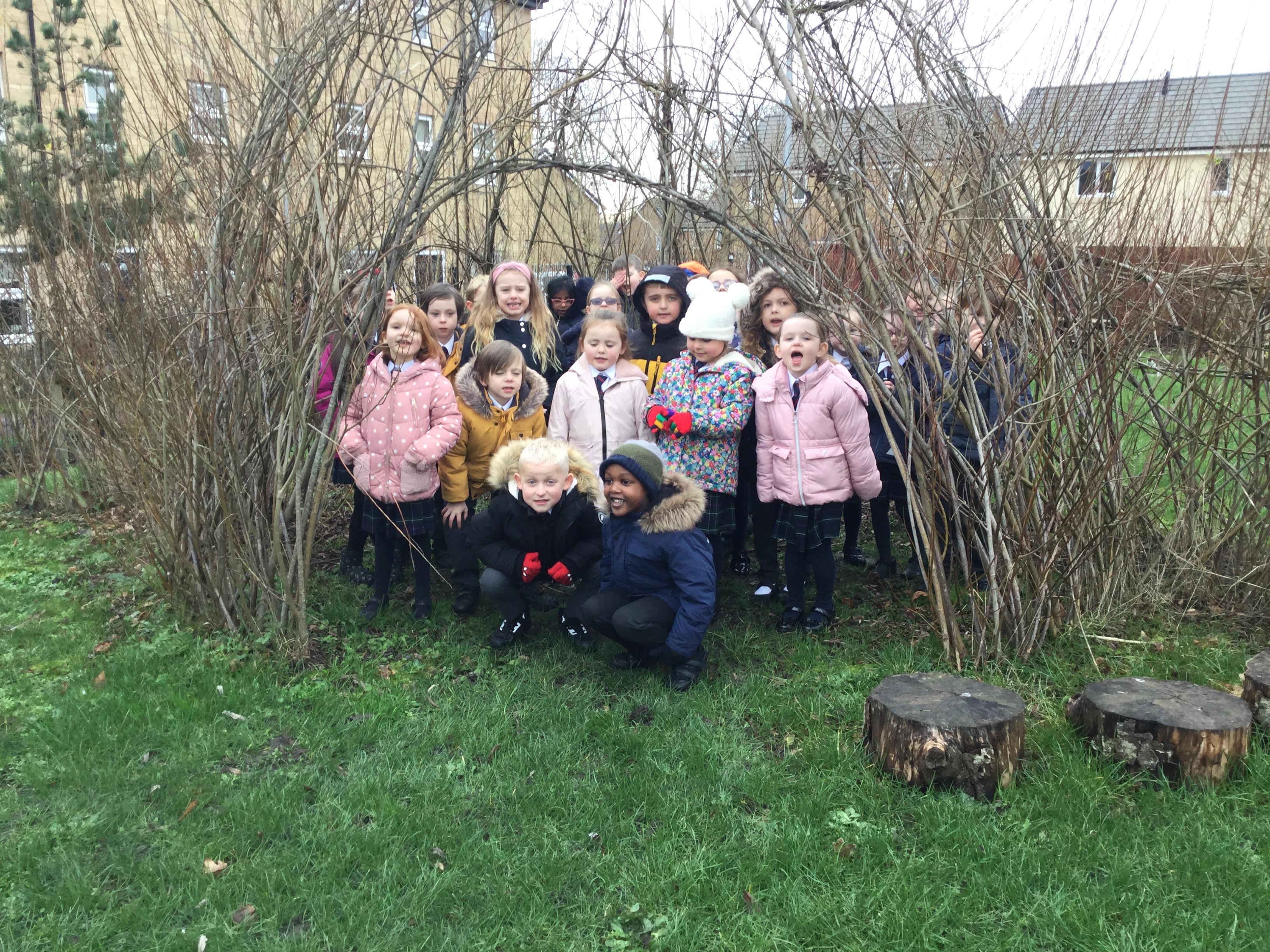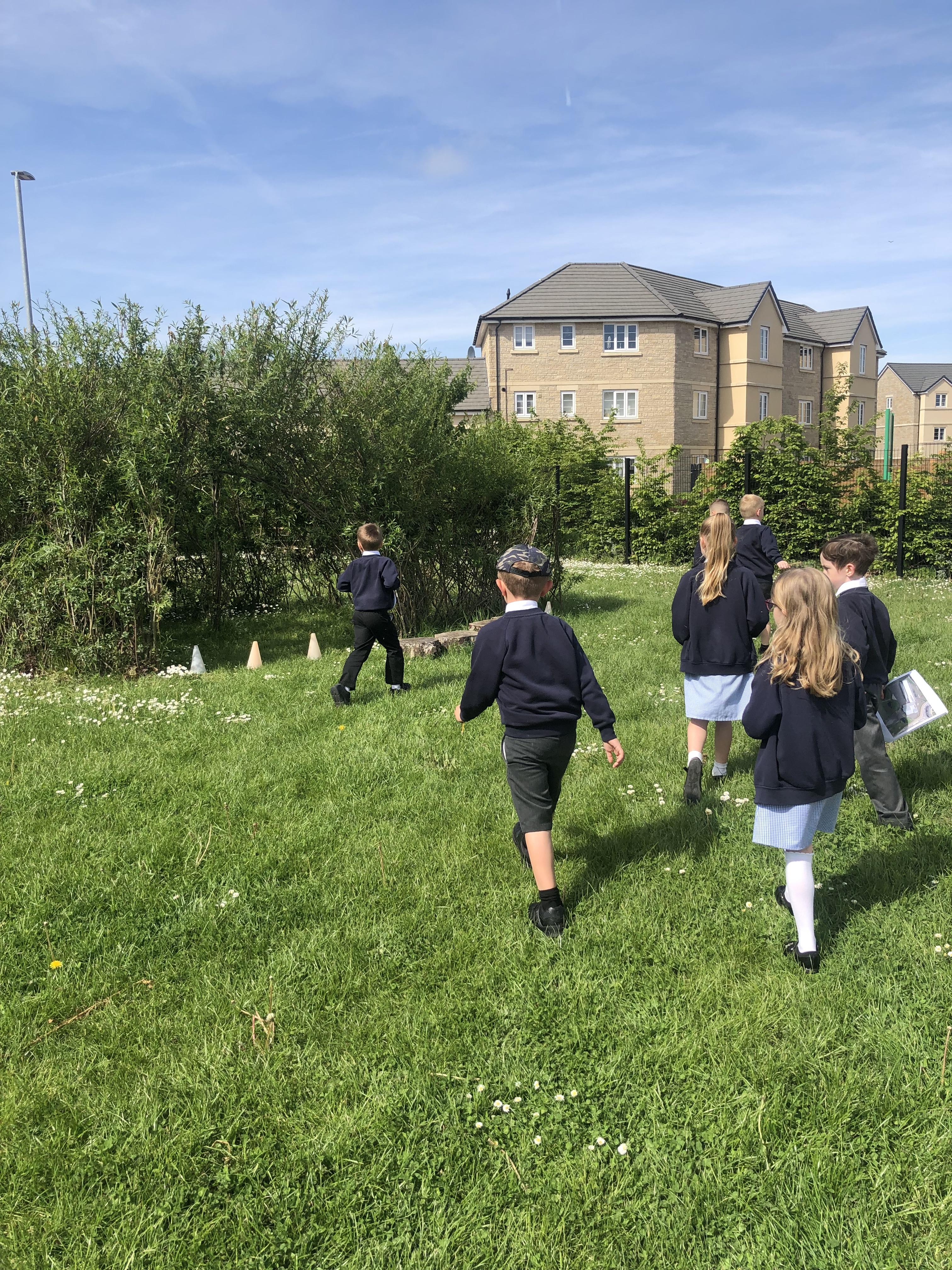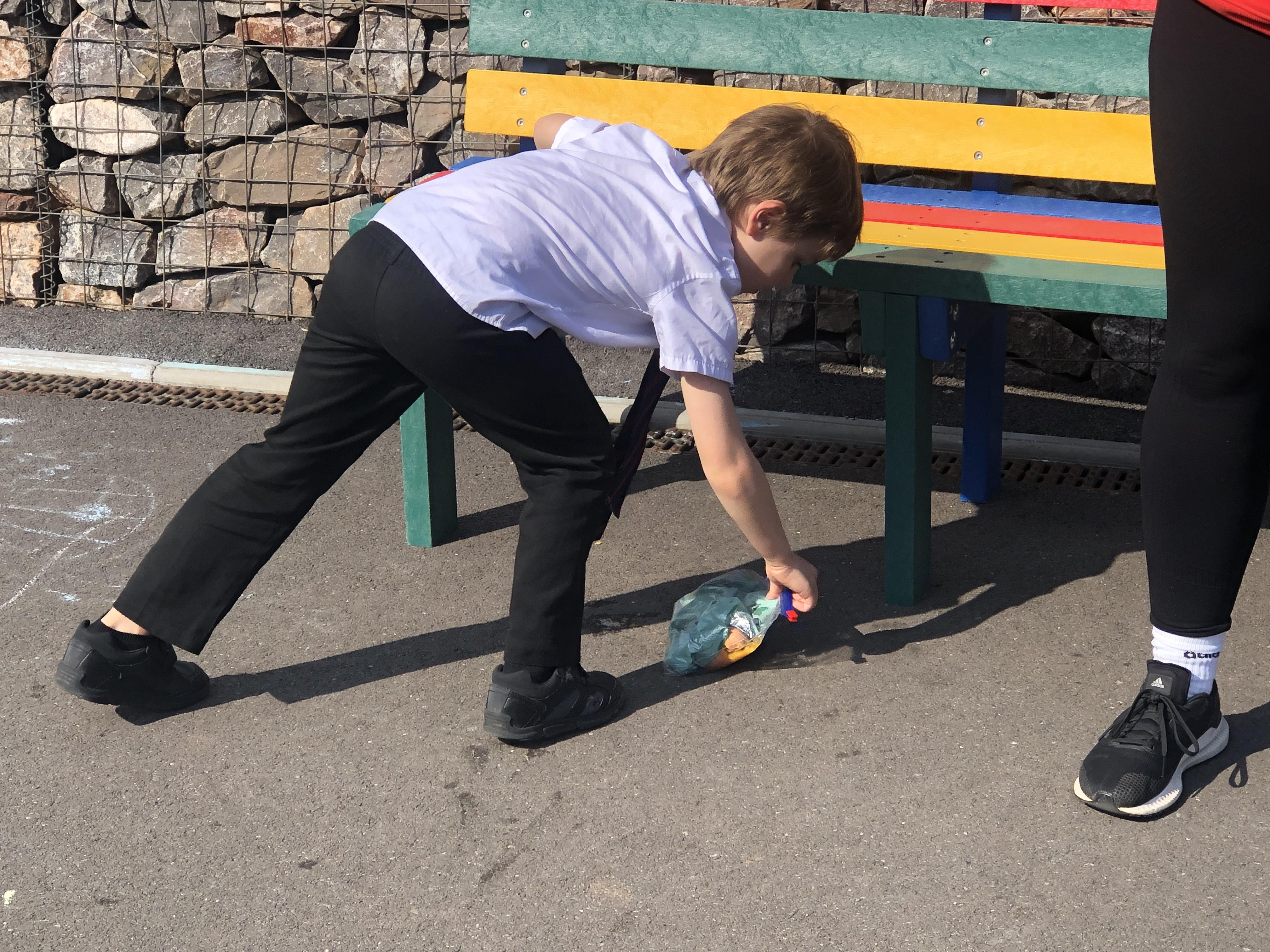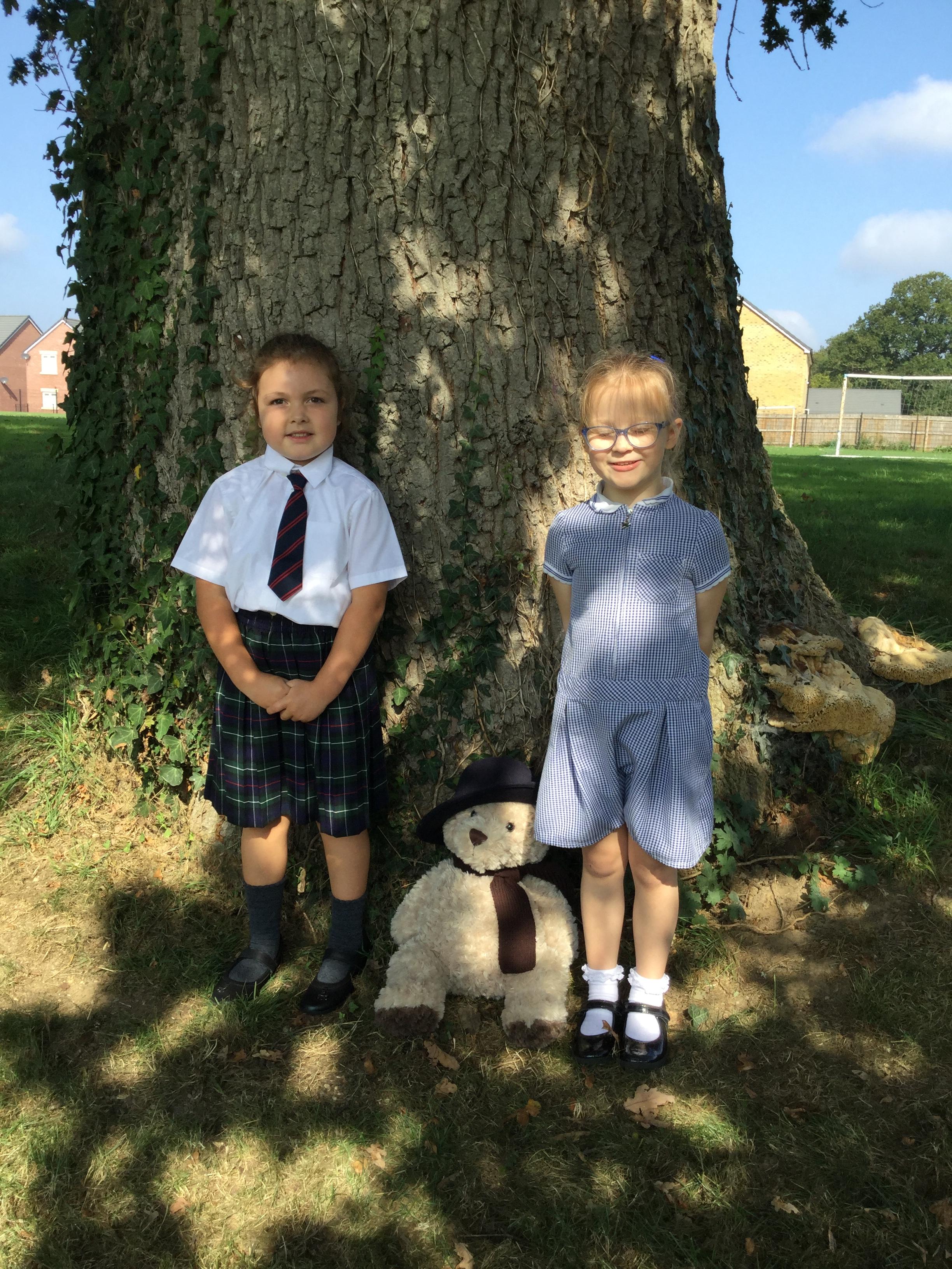 In English, we have been basing all of our work around the popular children's book 'We're going on a Bear Hunt'. After, a busy week of writing, the children were very excited to go on our very own bear hunt around the school. The children very carefully followed the bear foot prints and were very excited when they found the bear under the oak tree on the playing fields.