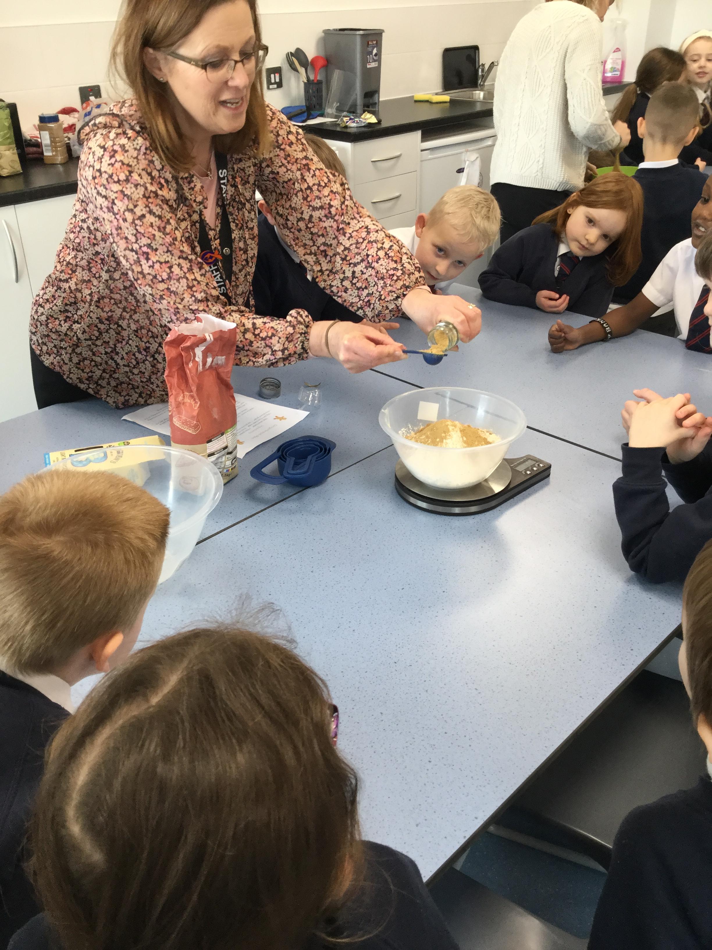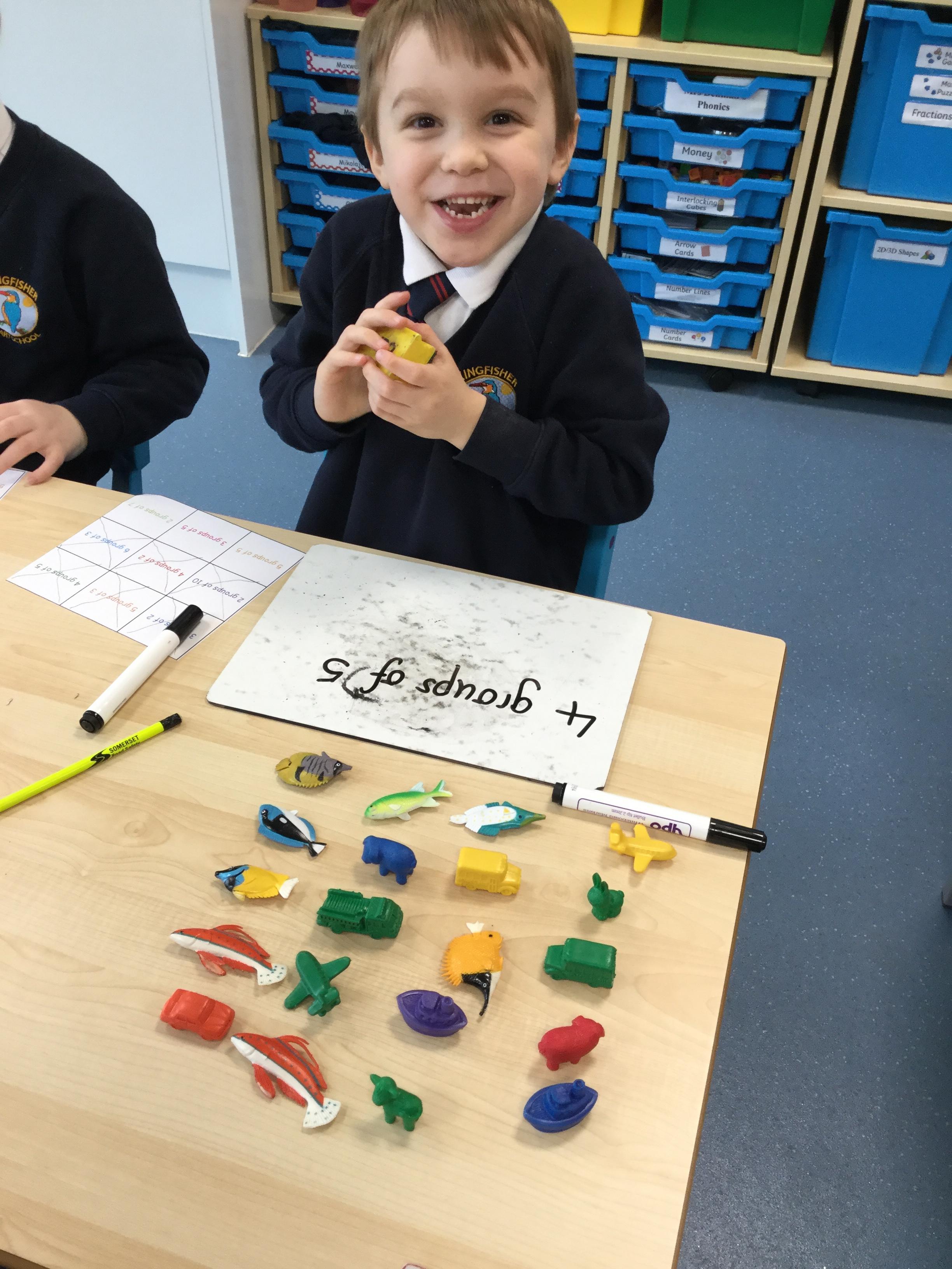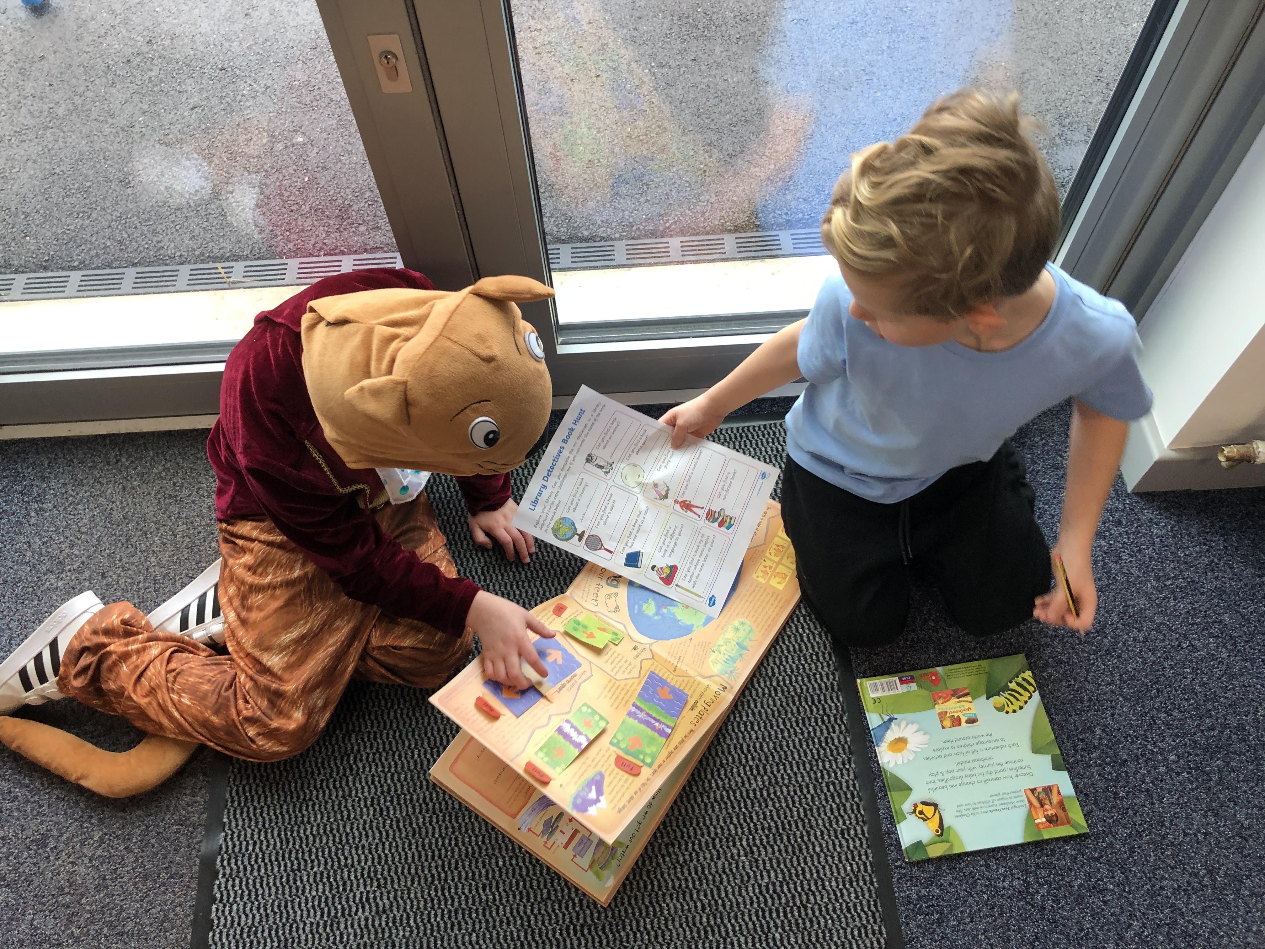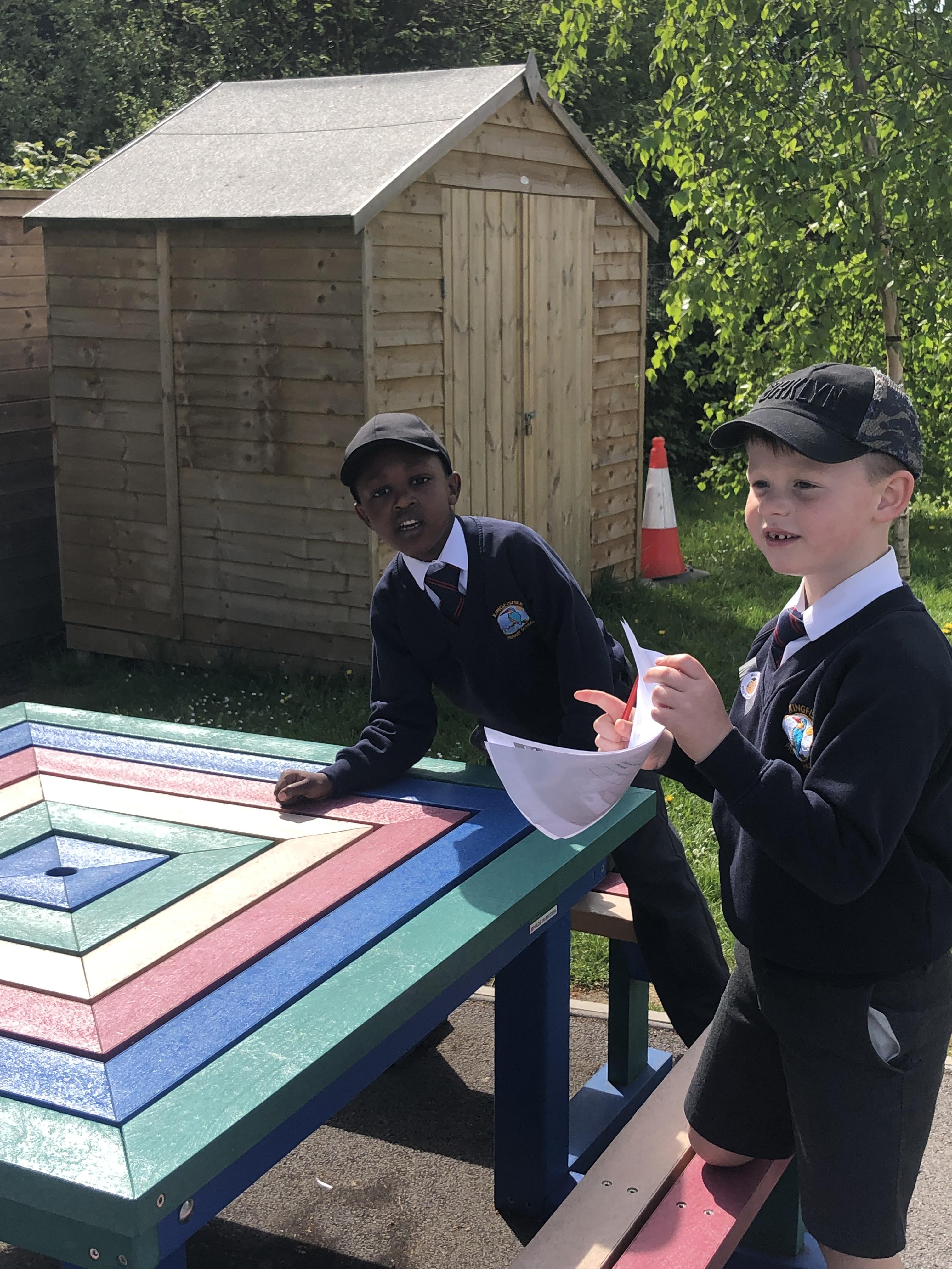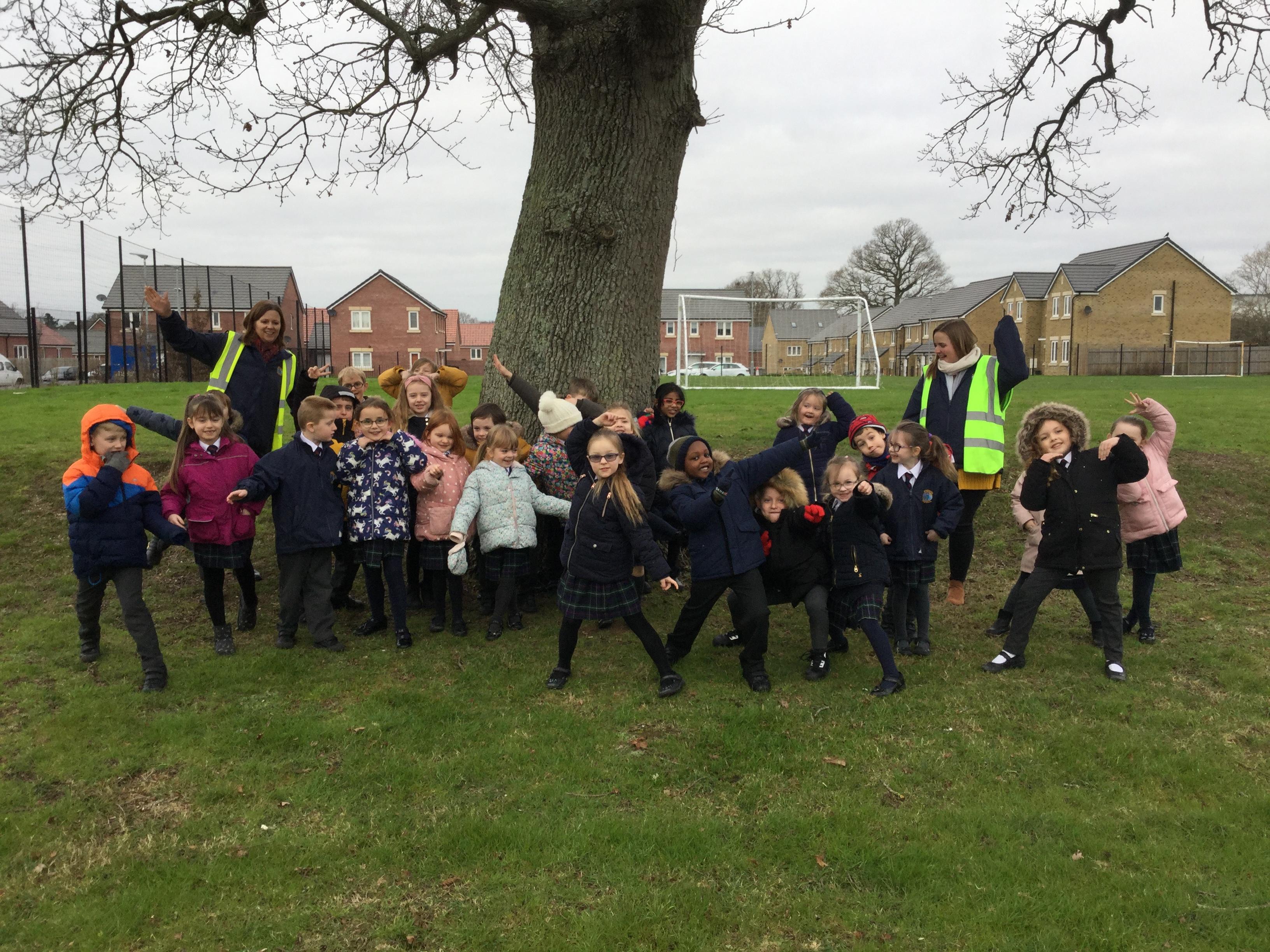 In English, we have been basing all of our work around the popular children's book 'We're going on a Bear Hunt'. After, a busy week of writing, the children were very excited to go on our very own bear hunt around the school. The children very carefully followed the bear foot prints and were very excited when they found the bear under the oak tree on the playing fields.