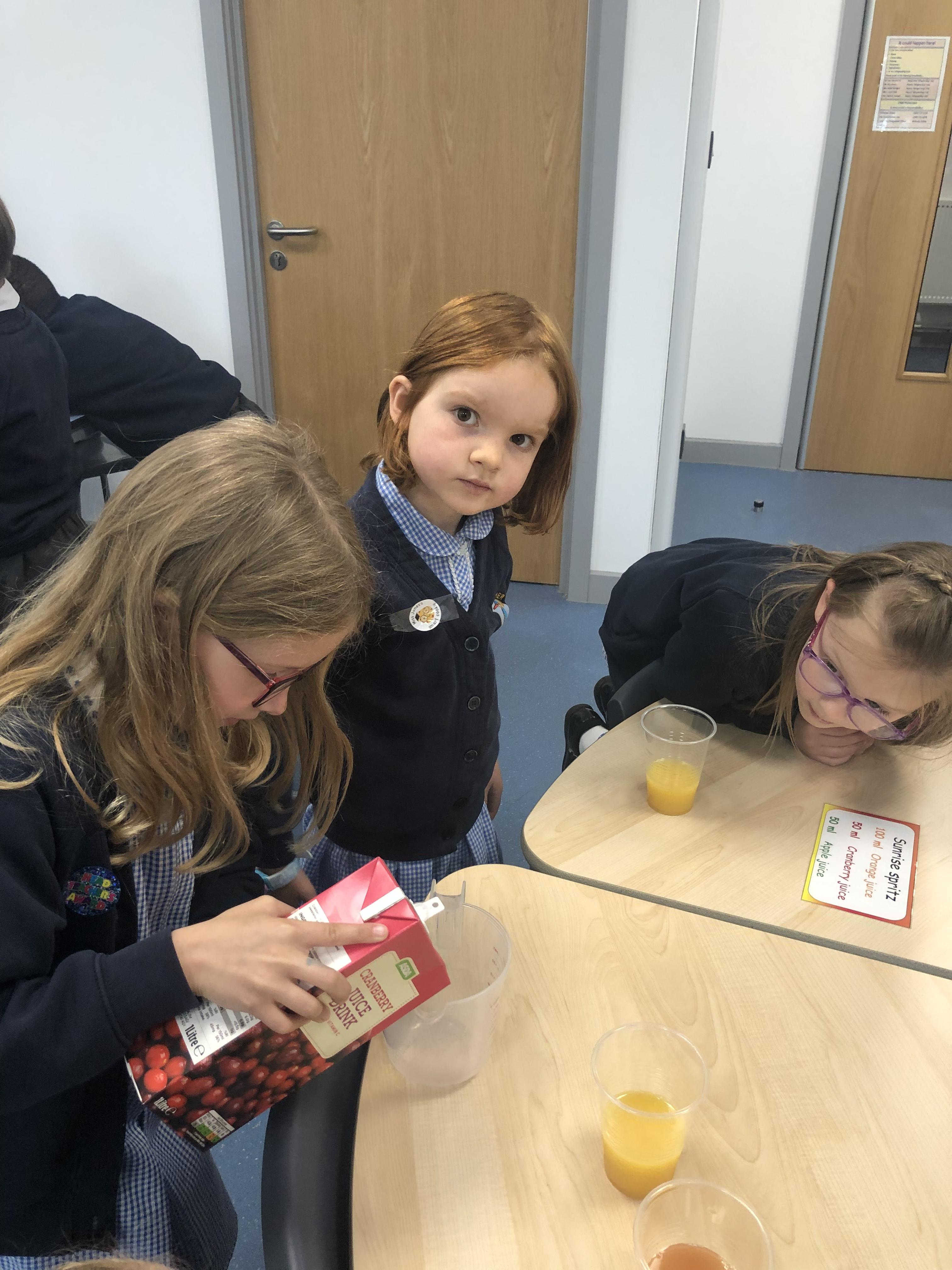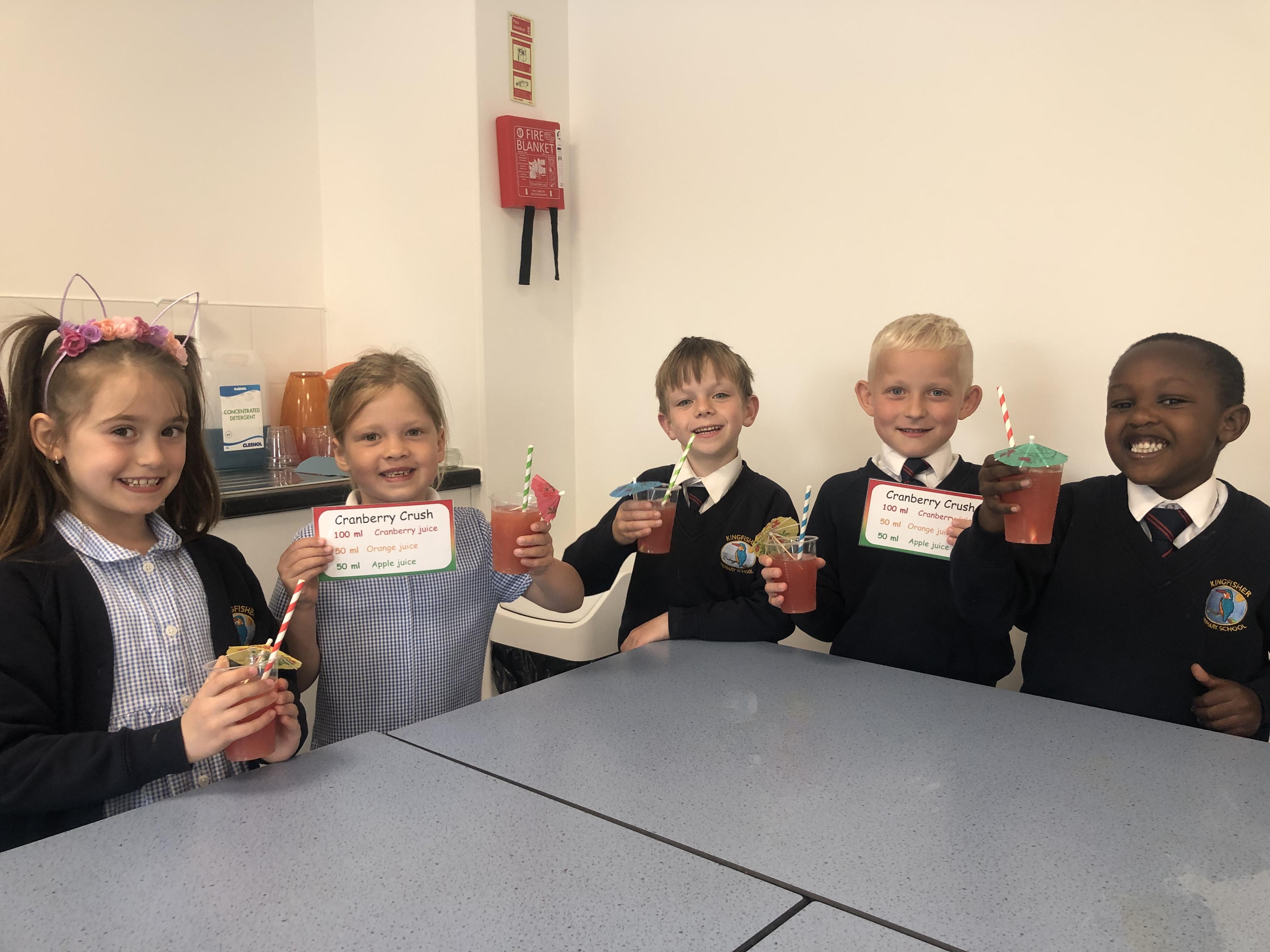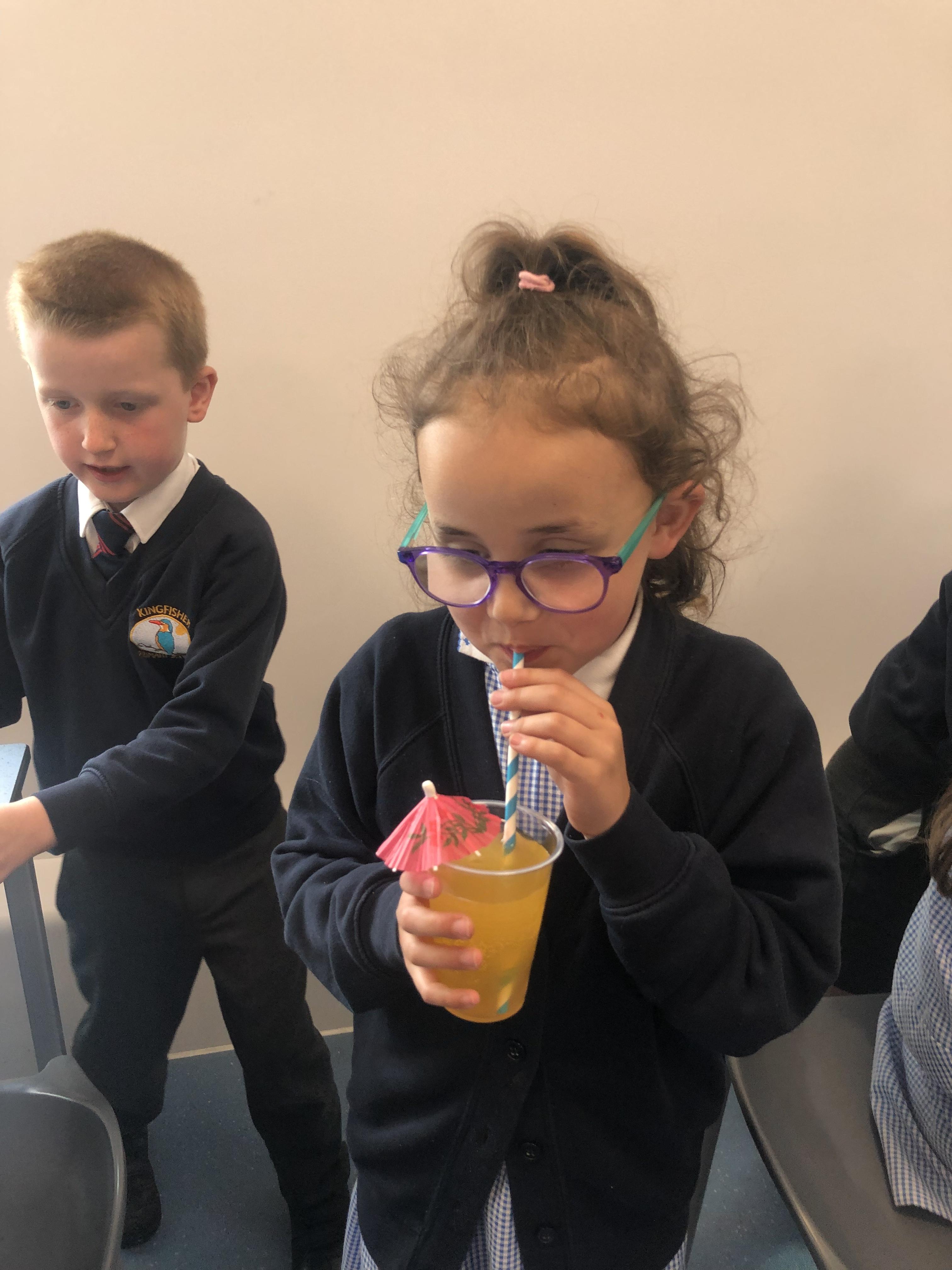 Over the last week the children have been learning all about capacity and volume. To practise measuring volume using standard units of measurement, the children followed a recipe to create their own ‘mocktails’. They all carefully measured the exact amount of each fruit juice they needed using measuring jugs and mixed them altogether to make their perfect concoction. The children topped off their mocktails with cocktail umbrellas before quickly gulping them down.