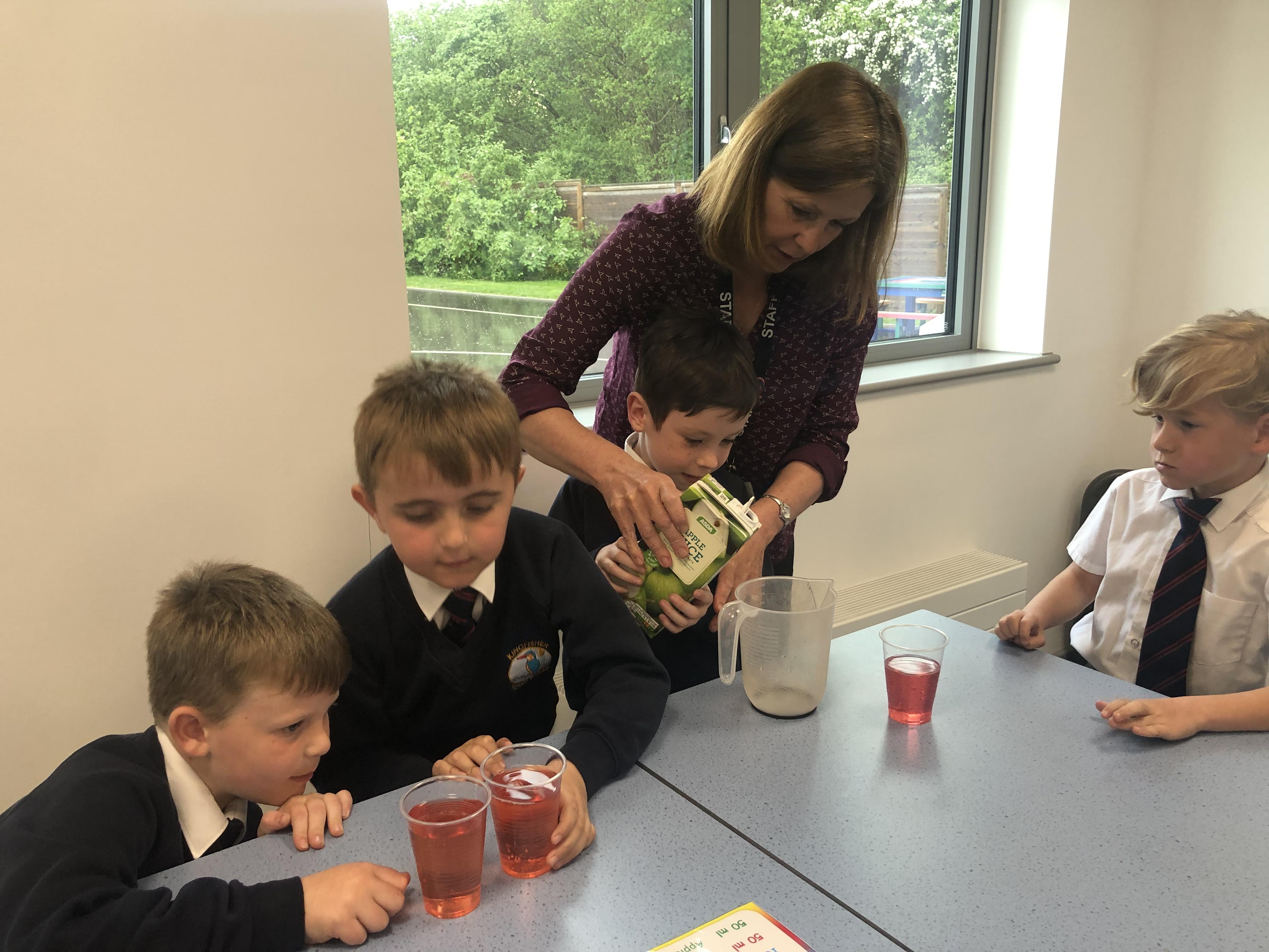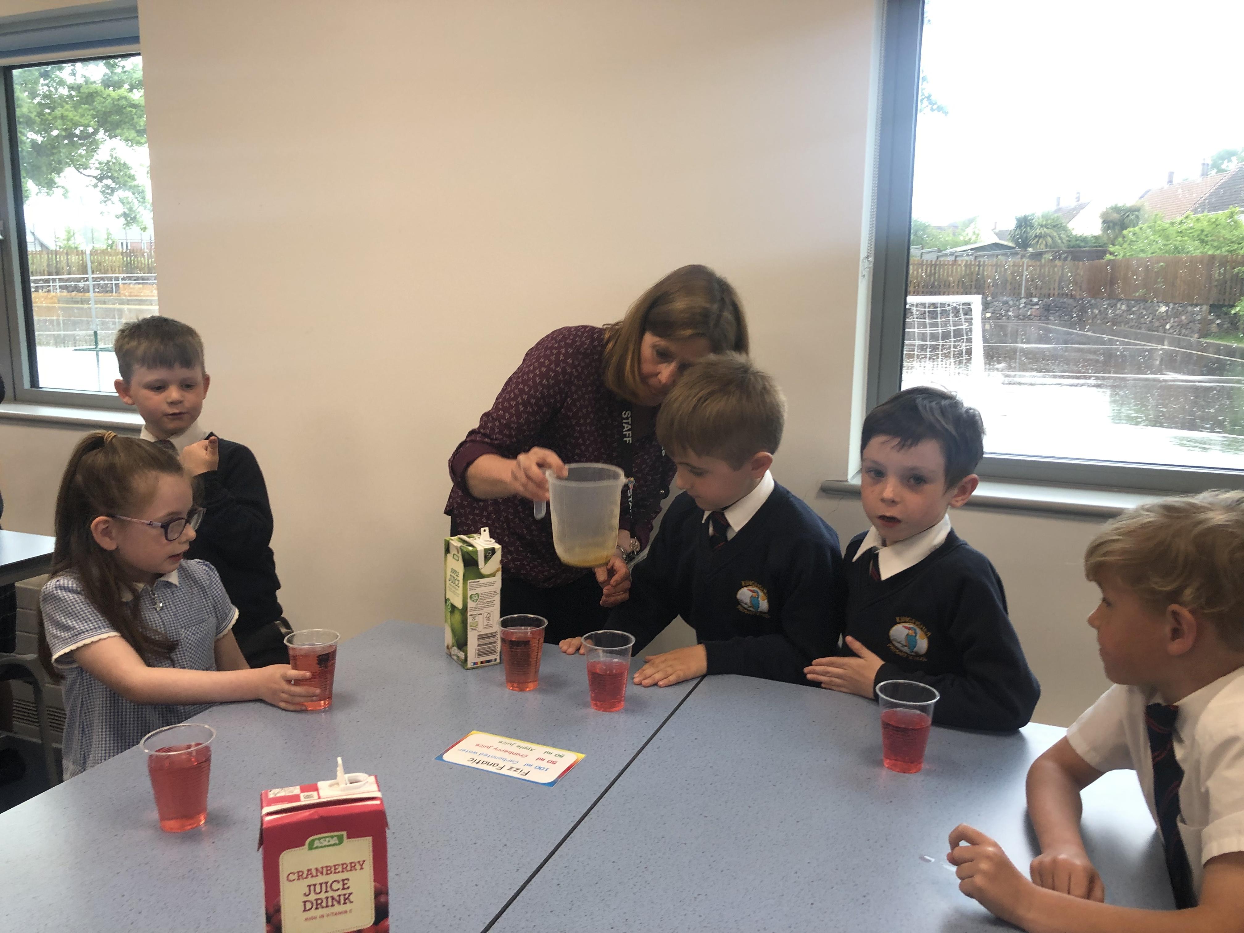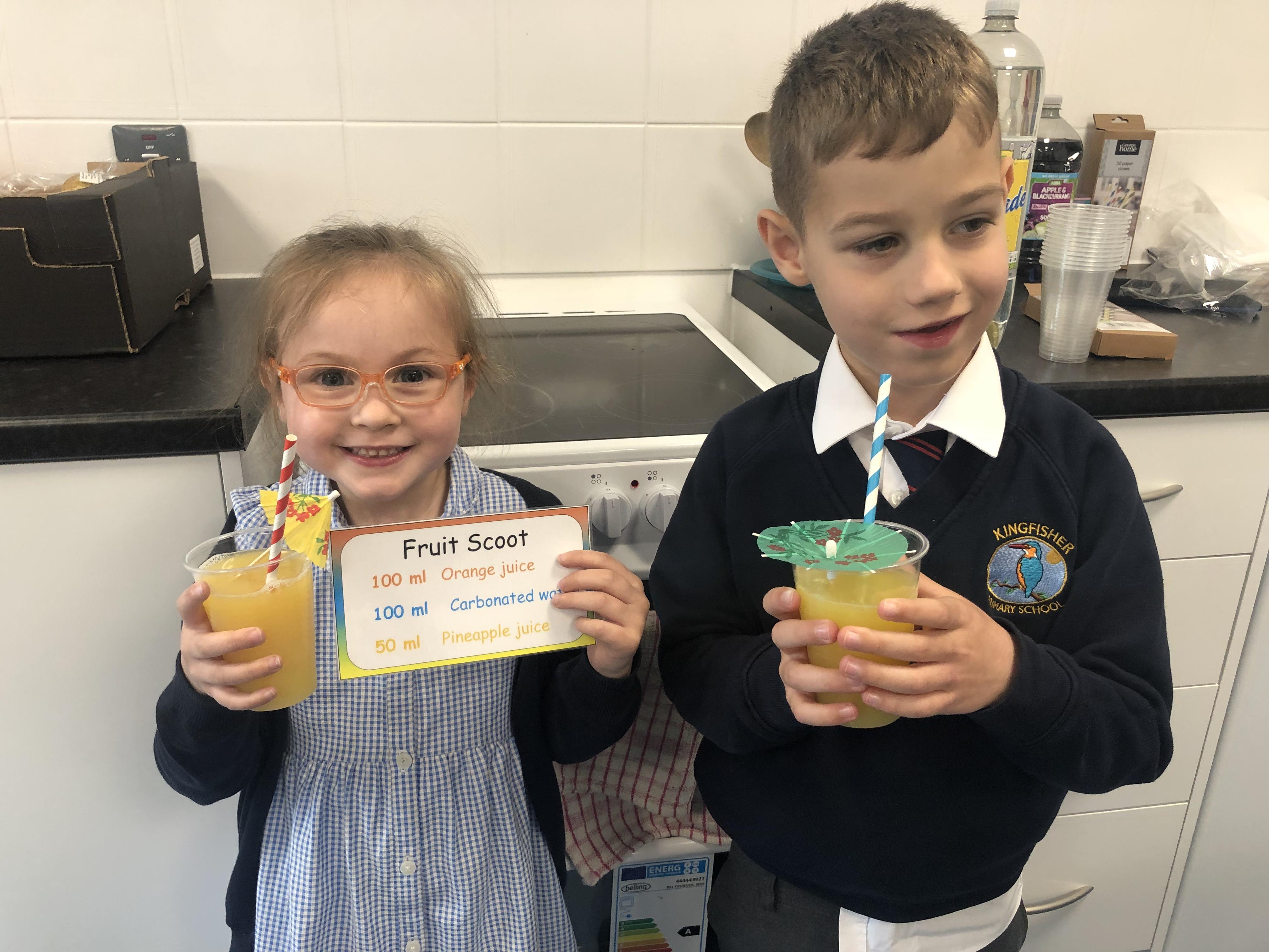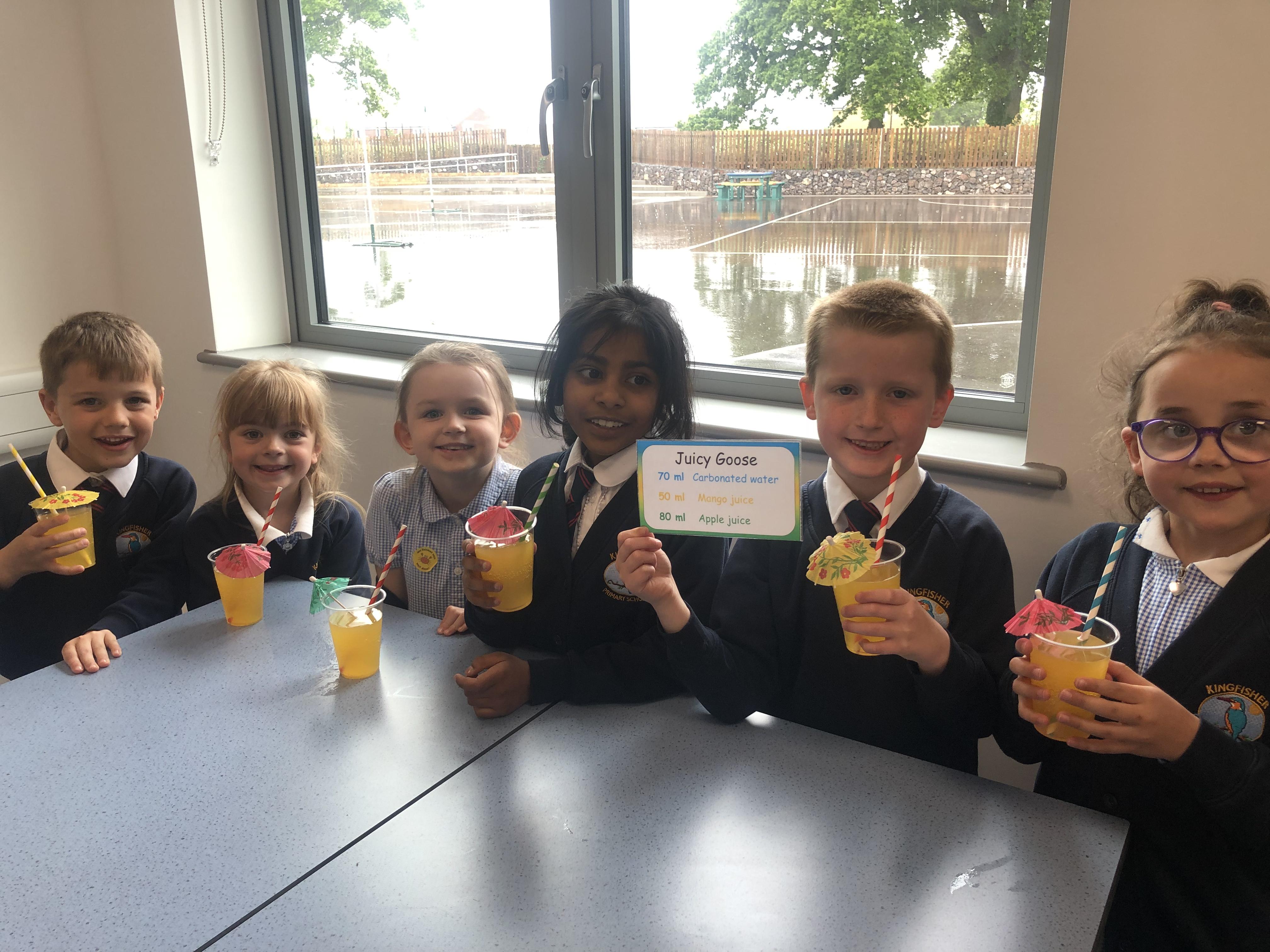Over the last week the children have been learning all about capacity and volume. To practise measuring volume using standard units of measurement, the children followed a recipe to create their own ‘mocktails’. They all carefully measured the exact amount of each fruit juice they needed using measuring jugs and mixed them altogether to make their perfect concoction. The children topped off their mocktails with cocktail umbrellas before quickly gulping them down.