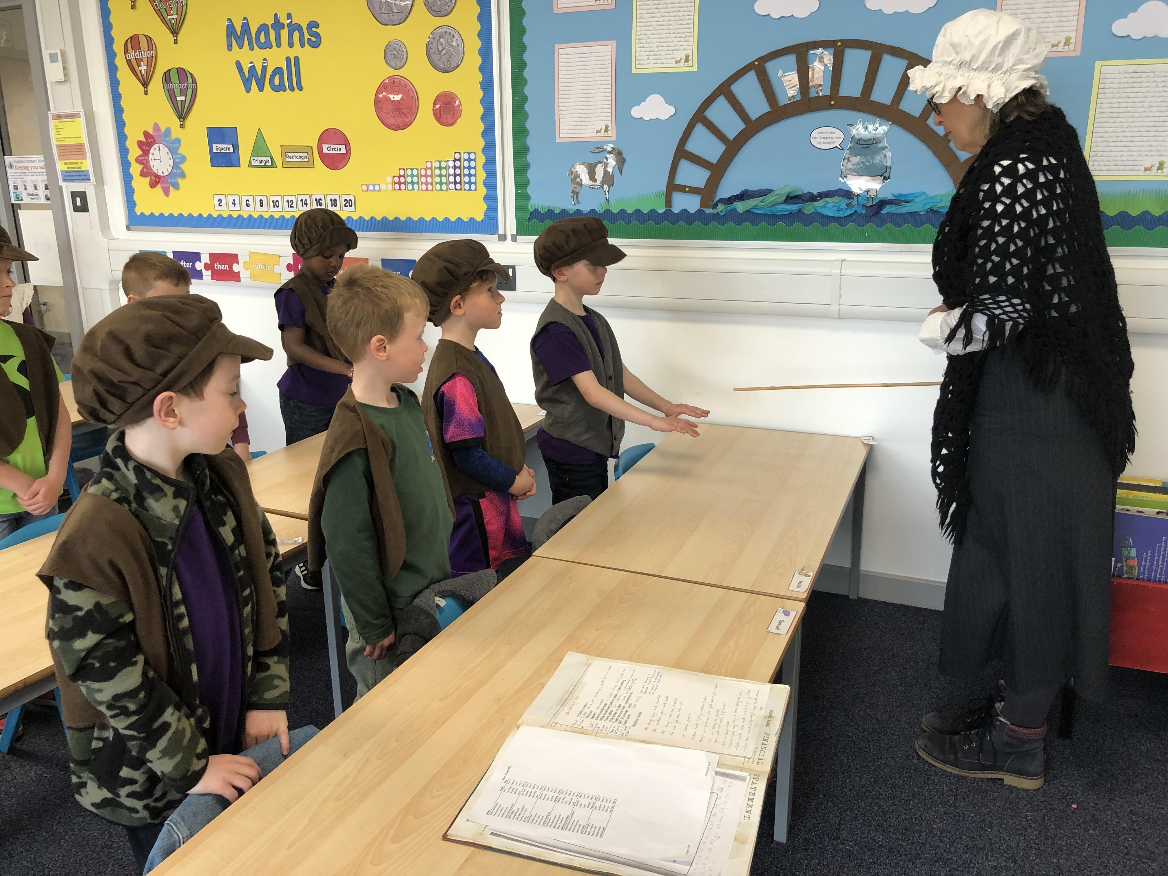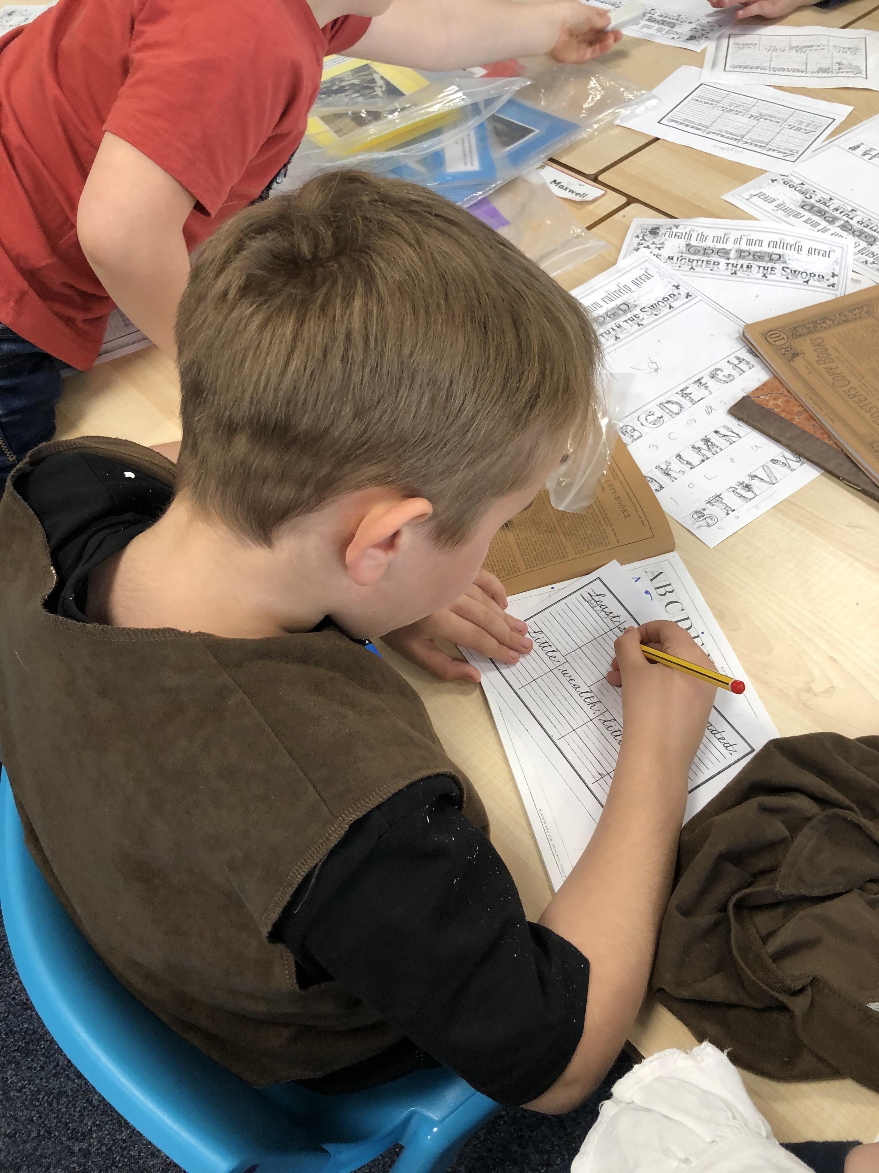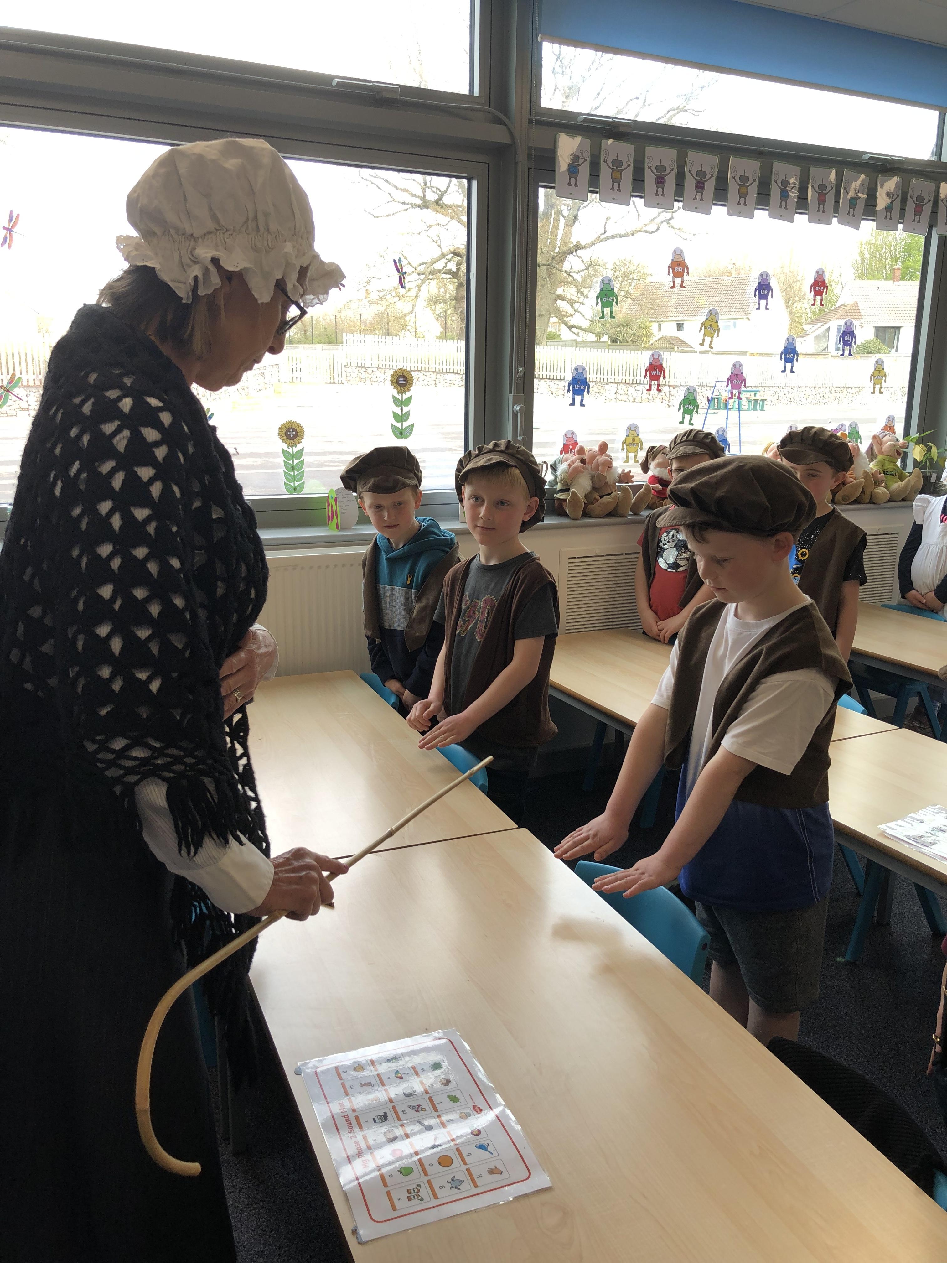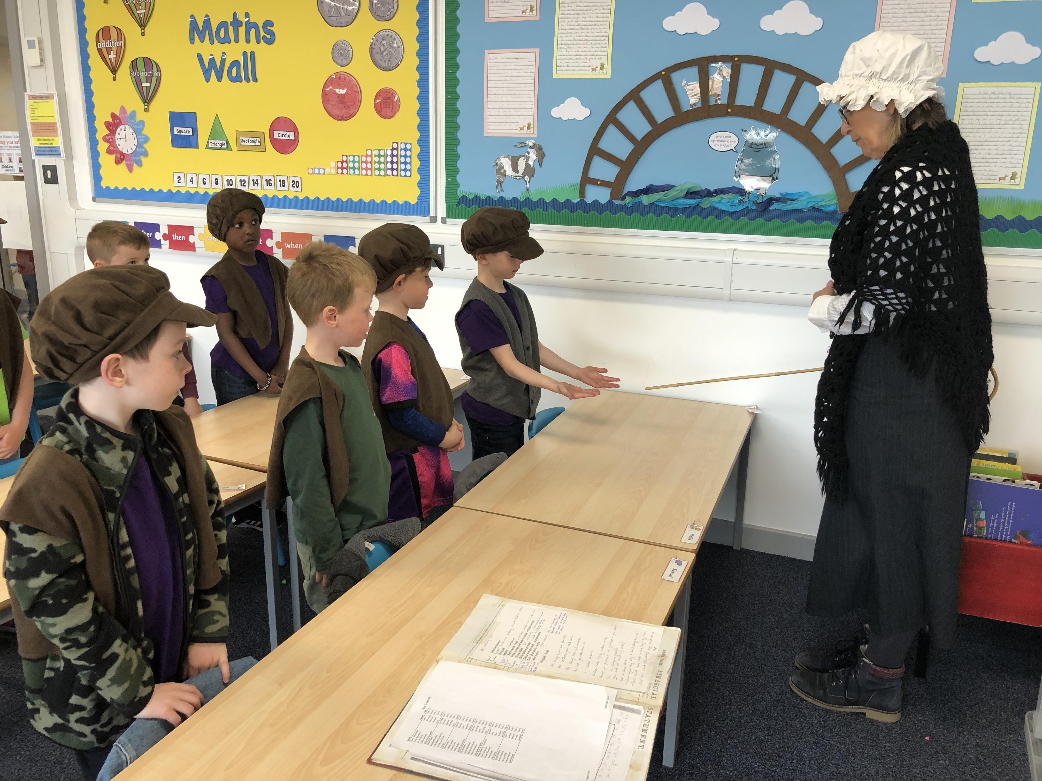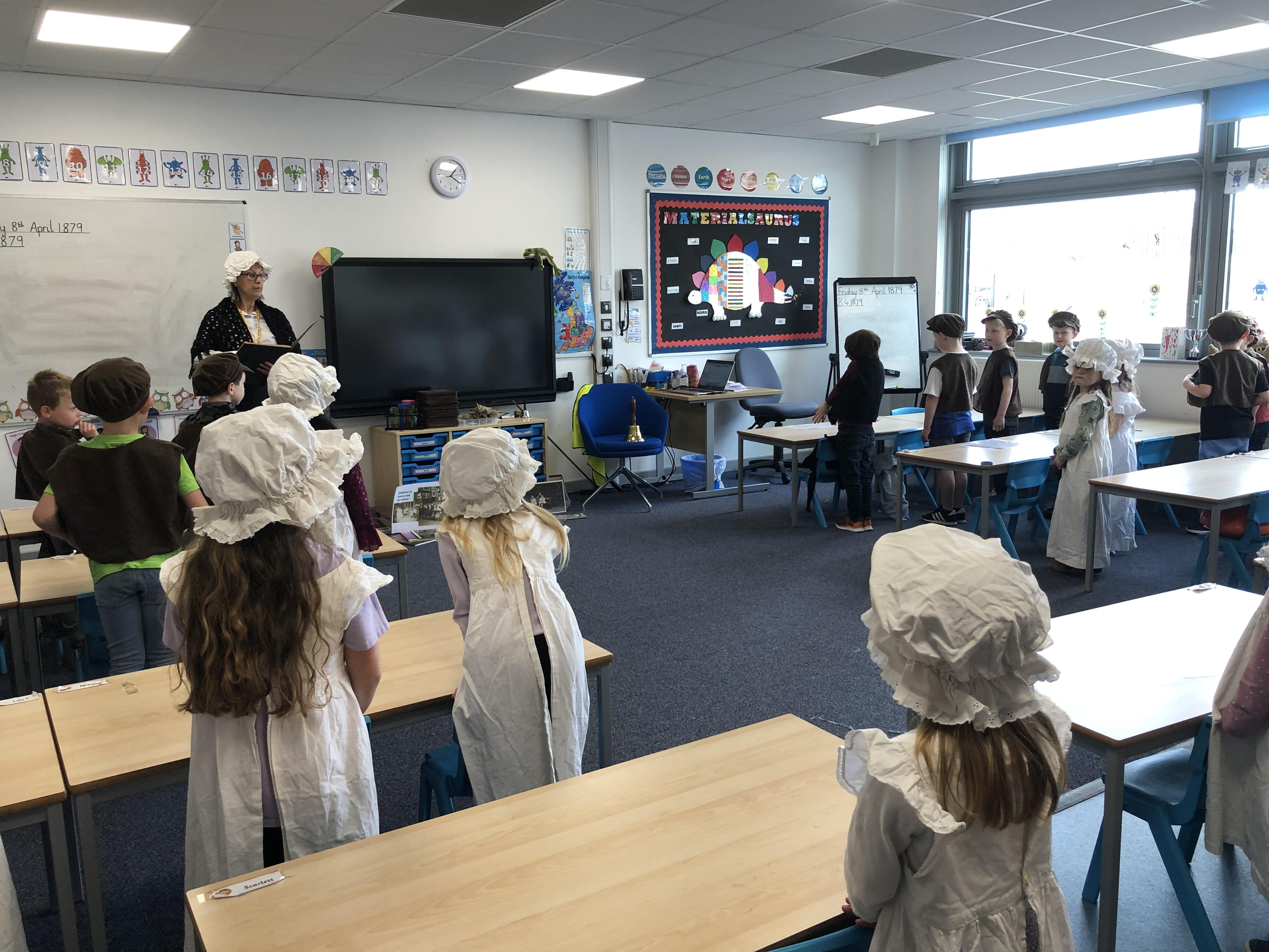 This afternoon, the children were very lucky to have a visit from Sharon from the South West Heritage Trust. She gave the children a glimpse of what school was like for Victorian children. All the children were given the opportunity to dress up as a Victorian school child; a waistcoat and cap for the boys and a dress and bonnet for the girls. The boys and girls were split up in class, just like what happened in Victorian schools and they were able to try out writing on slates. Everyone also had a go at sewing and practising handwriting. Sharon very kindly showed the children a range of Victorian artefacts. It was a really fun afternoon with the children super engaged throughout. It goes without saying that they are all very happy that school life has advanced since the Victorian times.