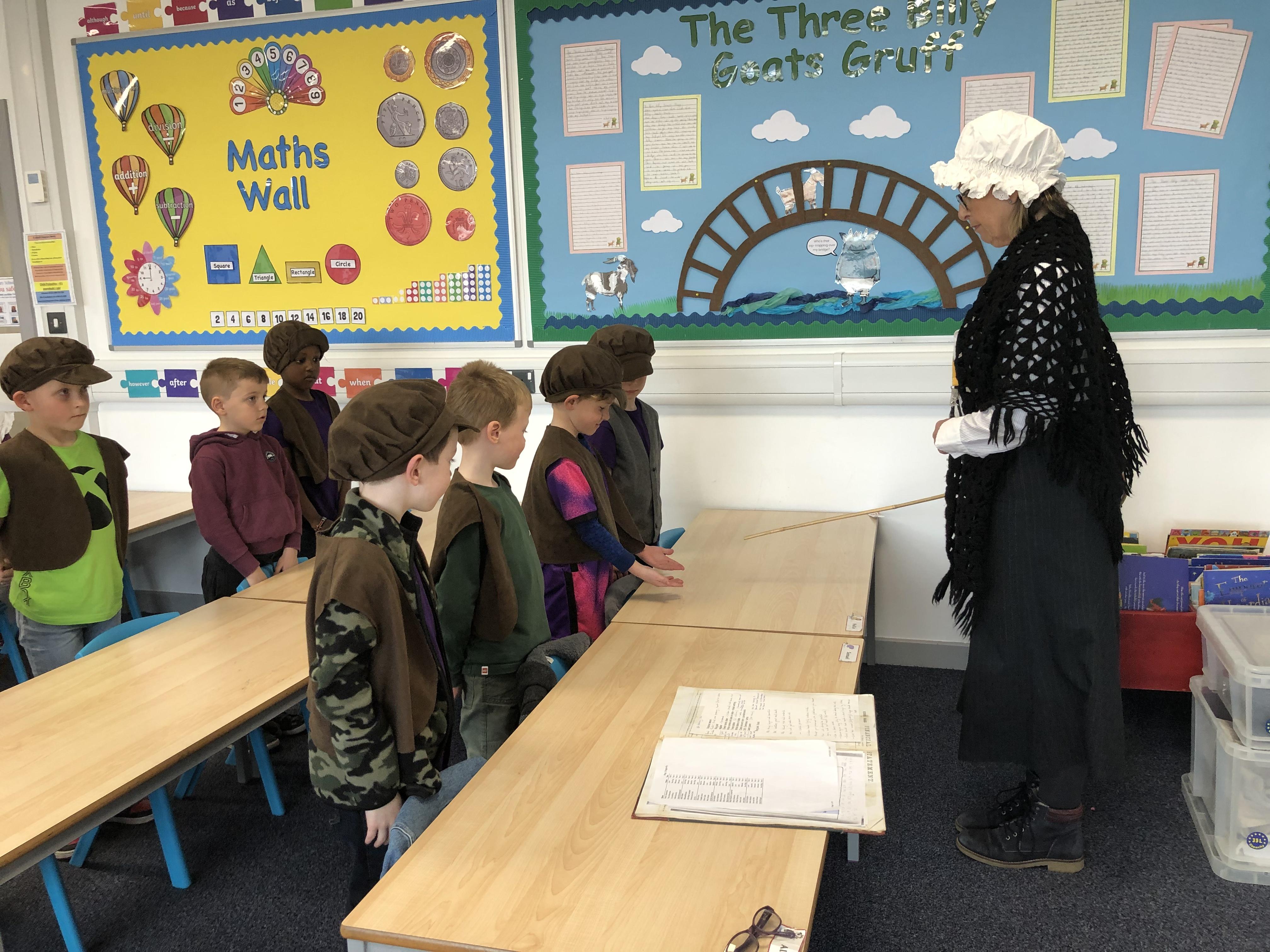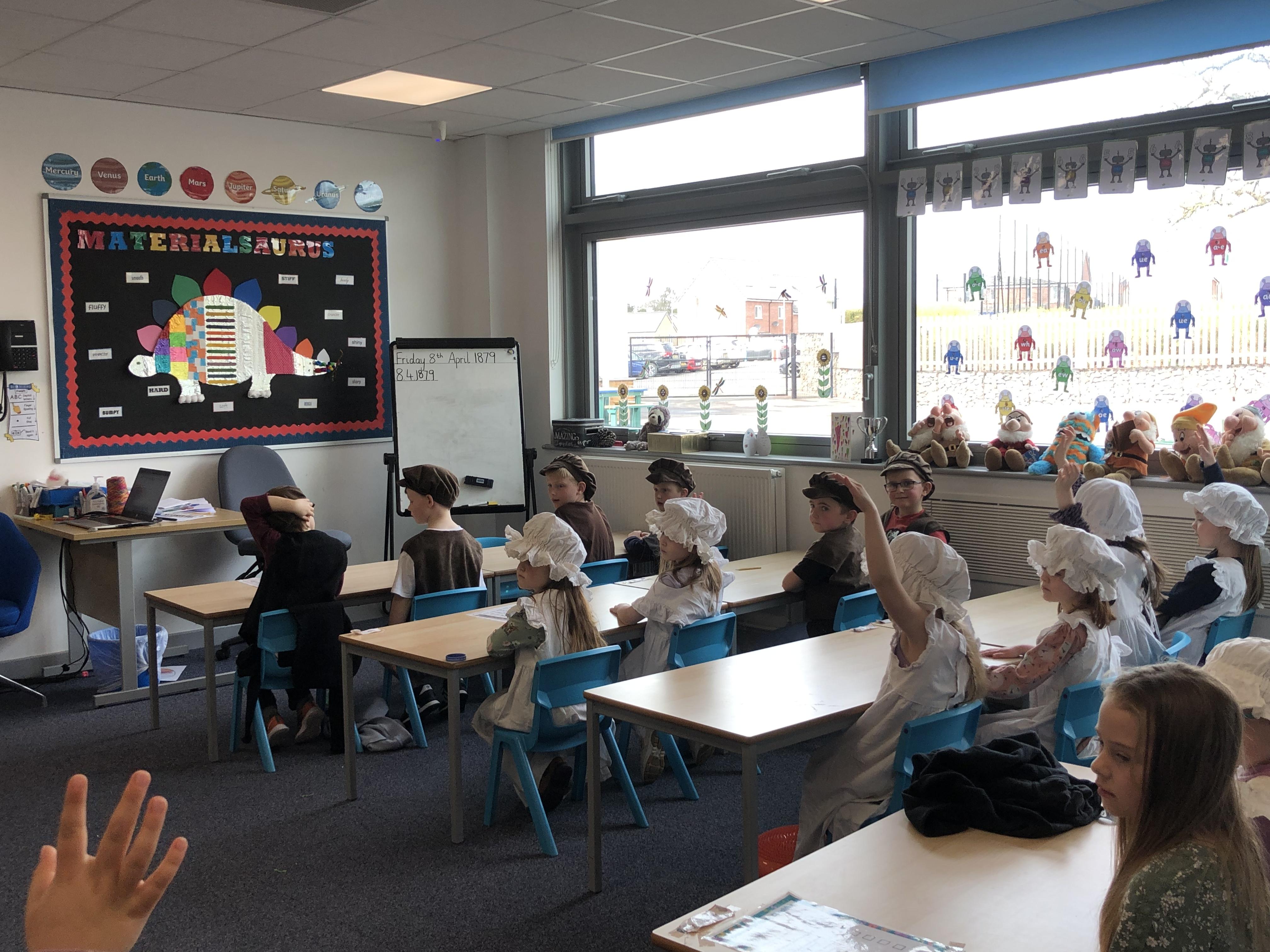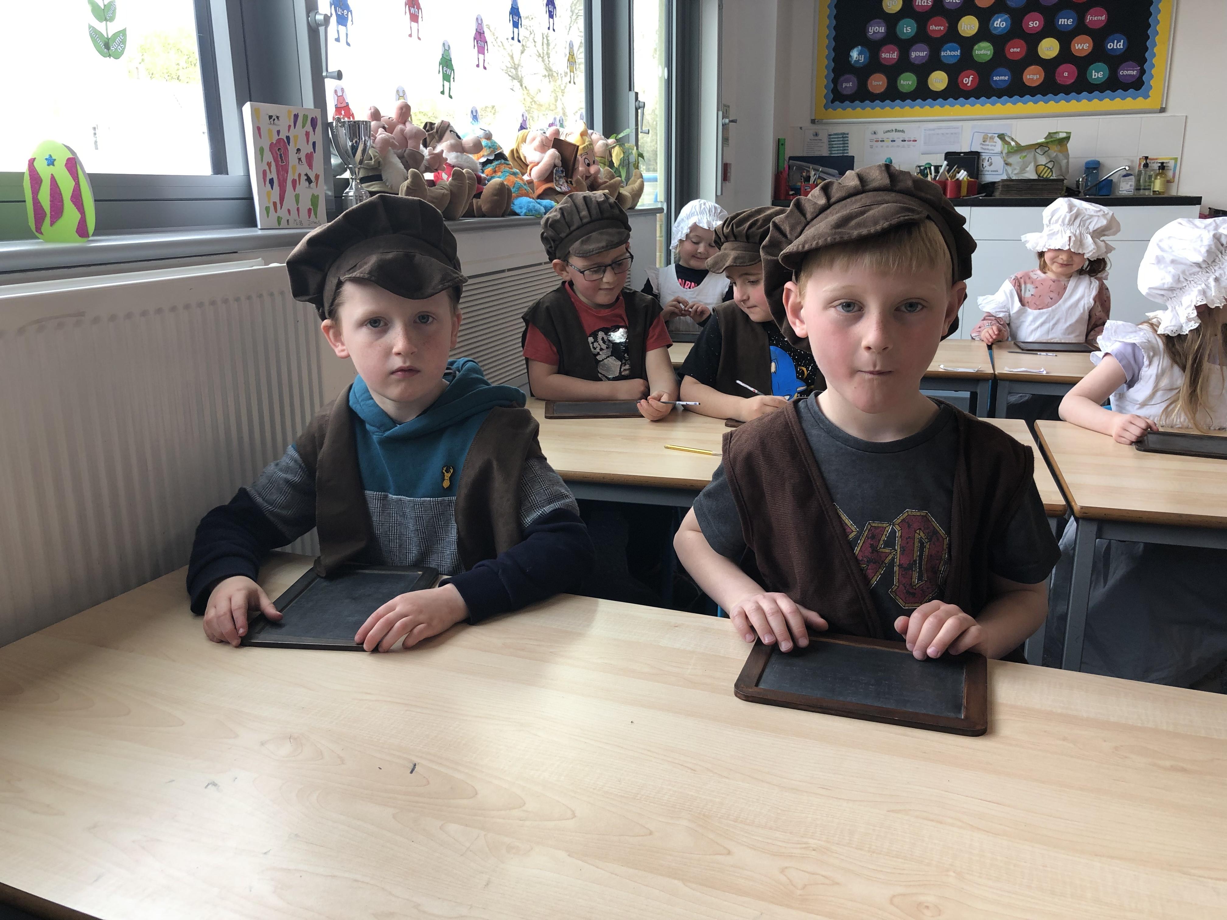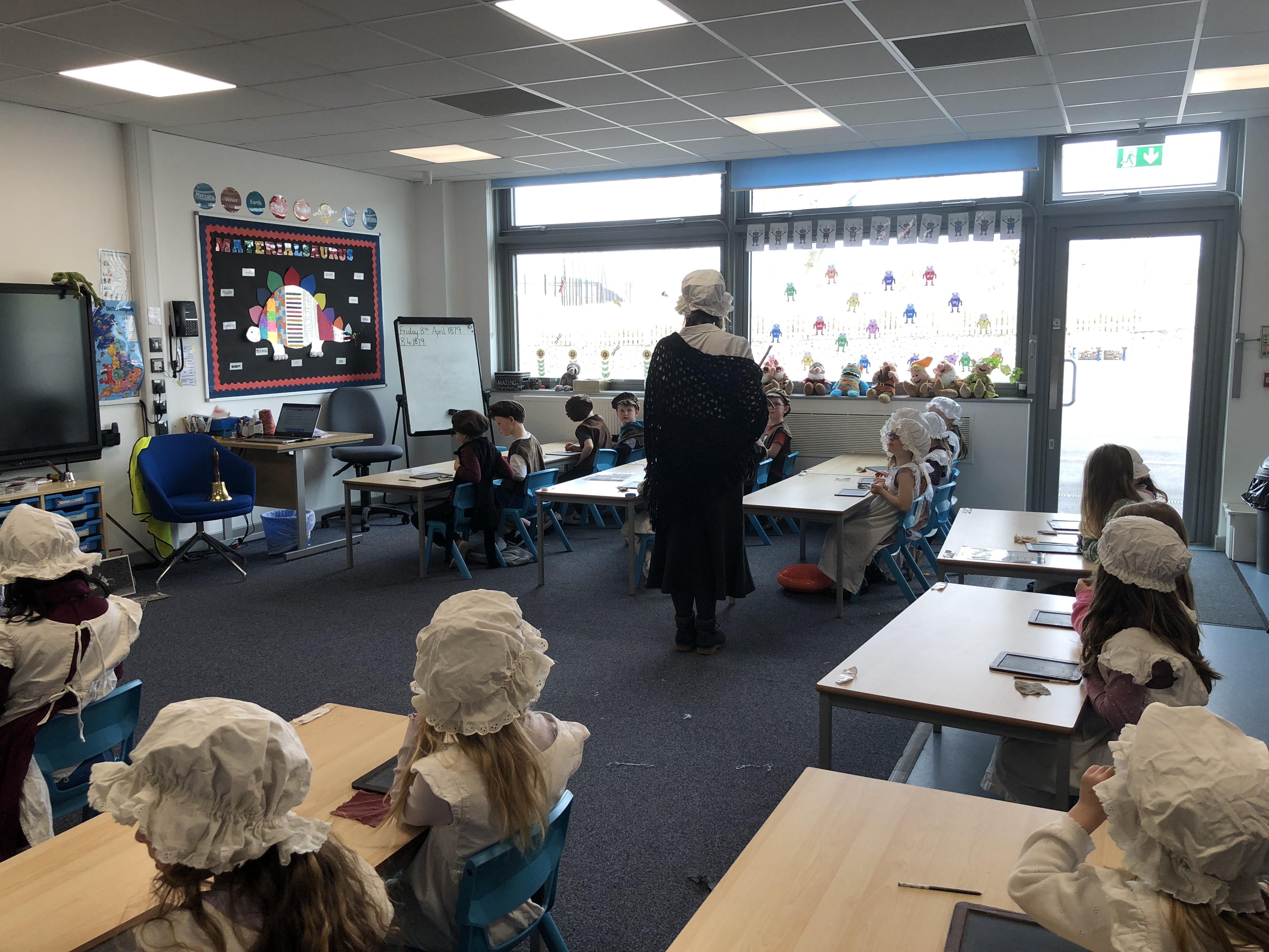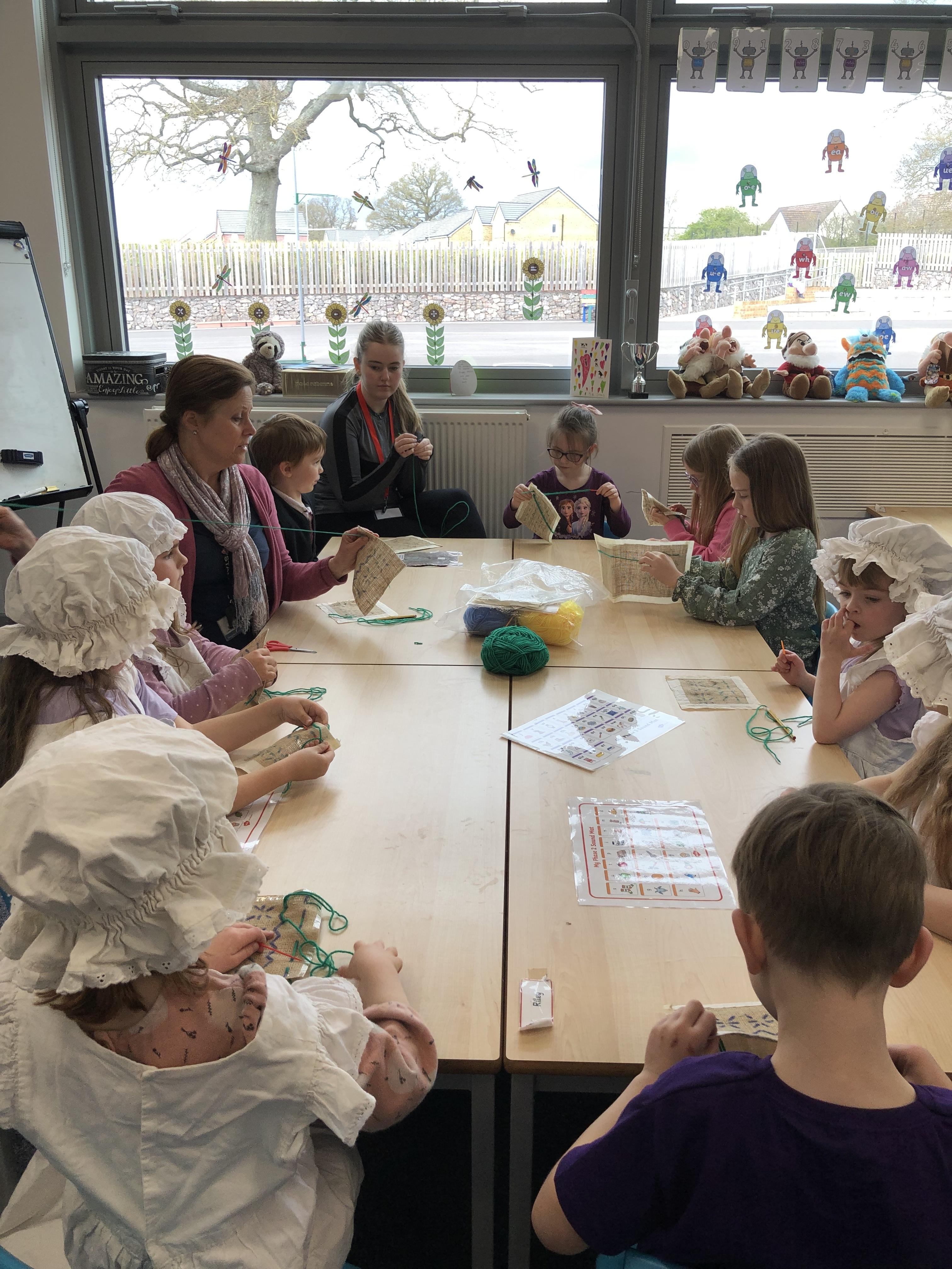 This afternoon, the children were very lucky to have a visit from Sharon from the South West Heritage Trust. She gave the children a glimpse of what school was like for Victorian children. All the children were given the opportunity to dress up as a Victorian school child; a waistcoat and cap for the boys and a dress and bonnet for the girls. The boys and girls were split up in class, just like what happened in Victorian schools and they were able to try out writing on slates. Everyone also had a go at sewing and practising handwriting. Sharon very kindly showed the children a range of Victorian artefacts. It was a really fun afternoon with the children super engaged throughout. It goes without saying that they are all very happy that school life has advanced since the Victorian times.