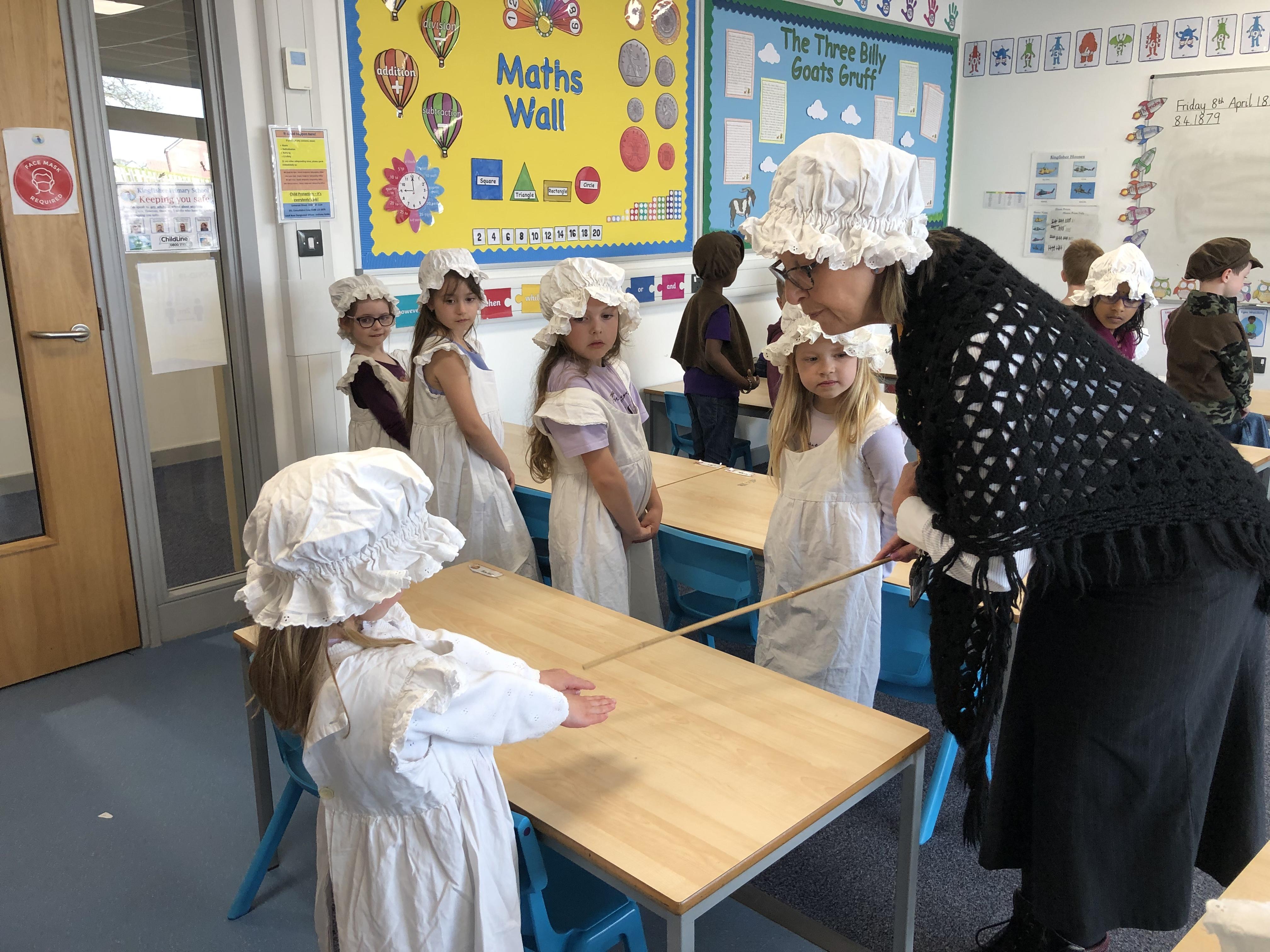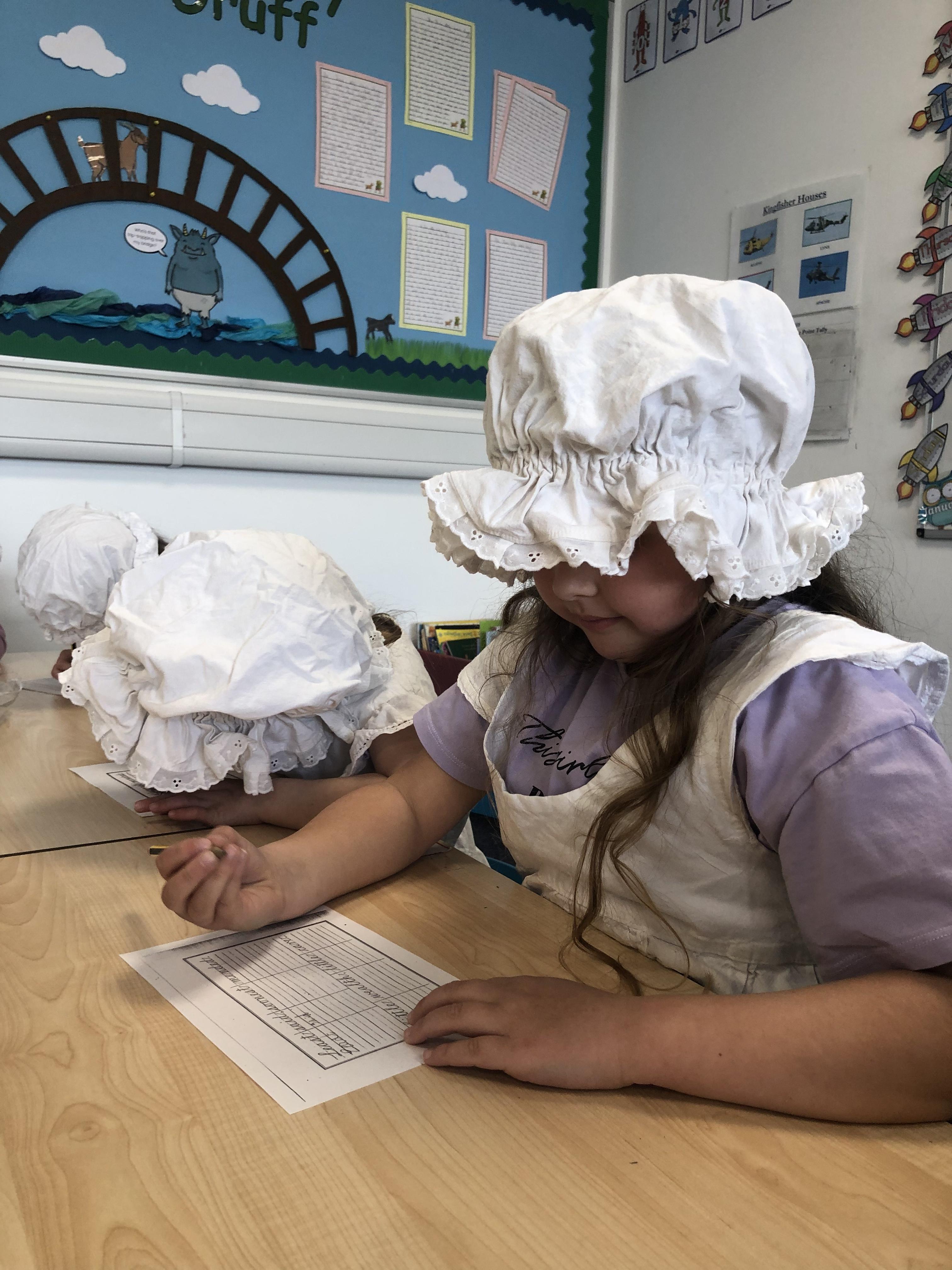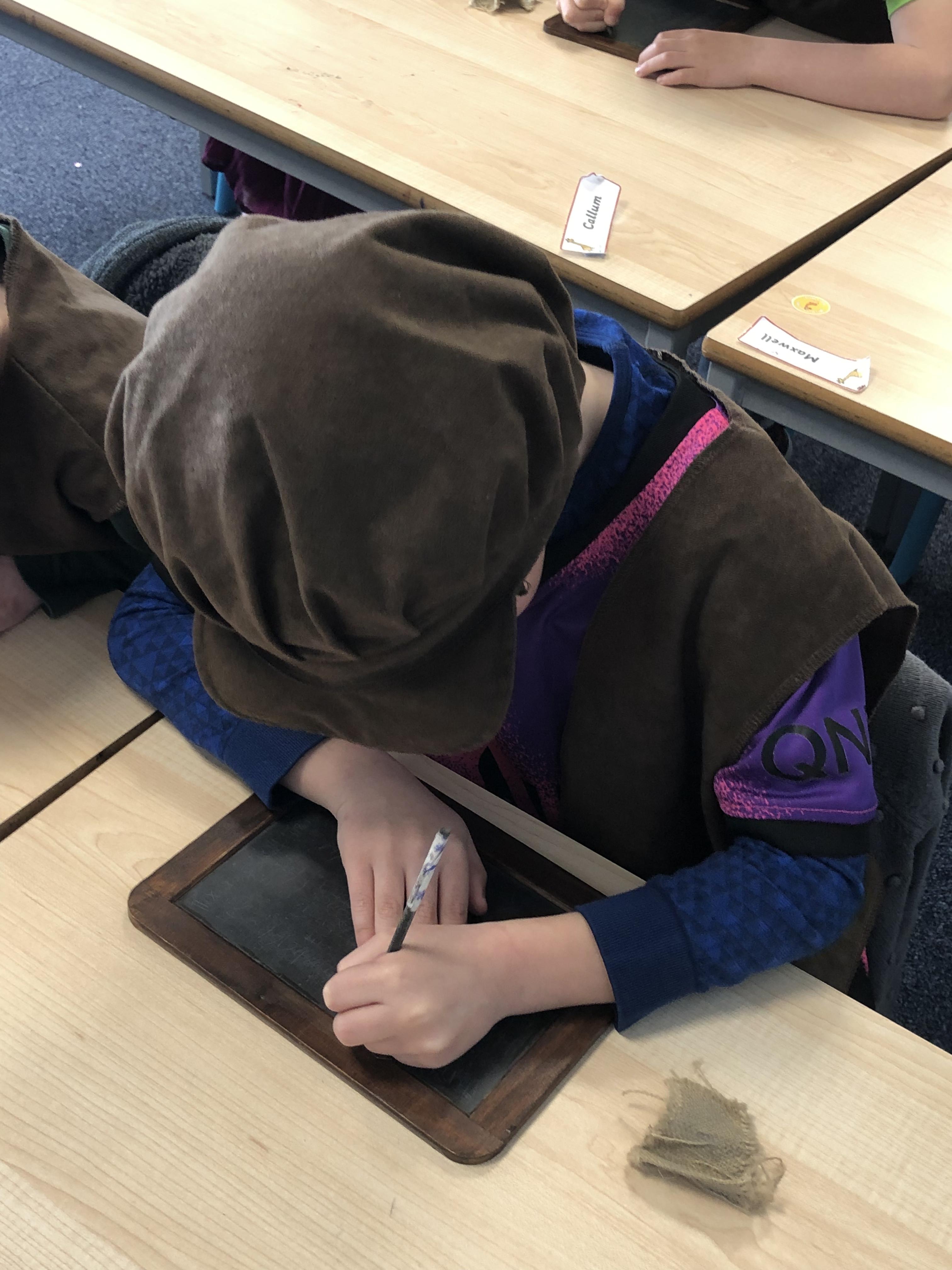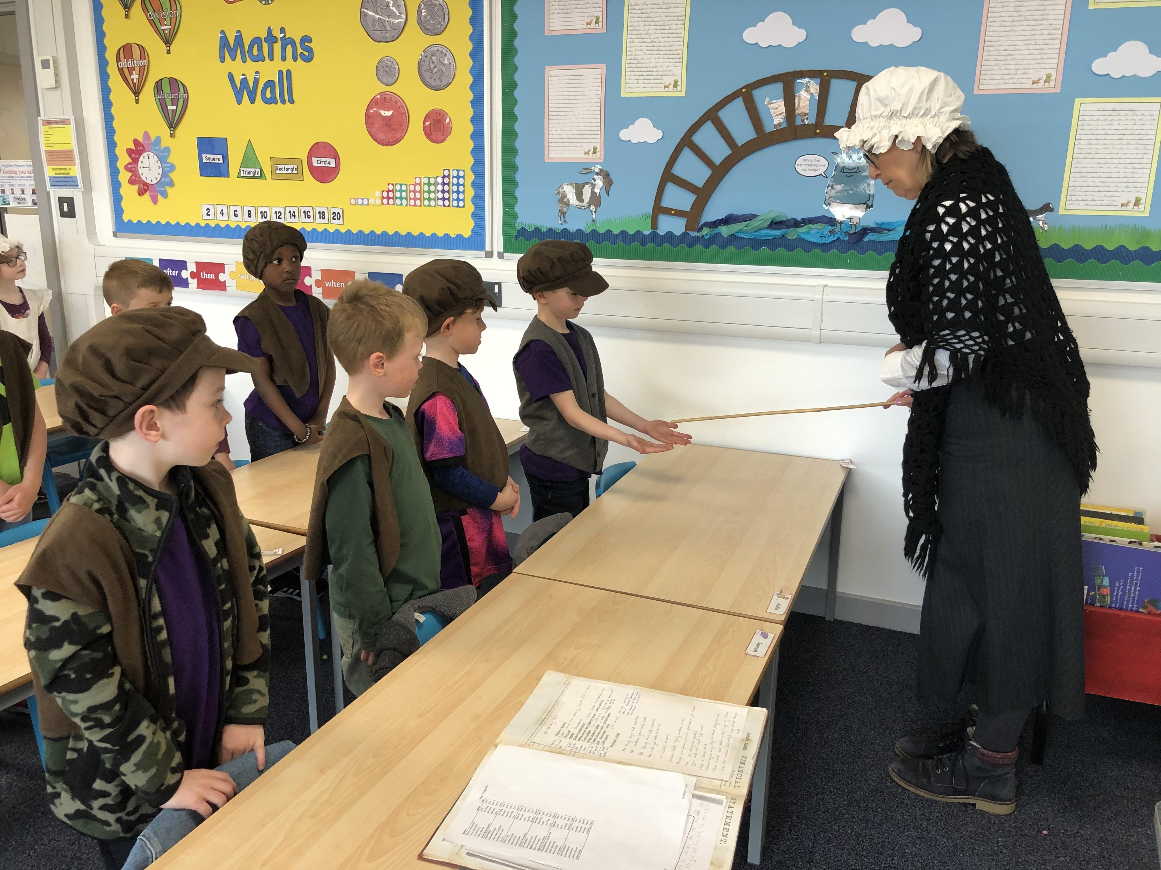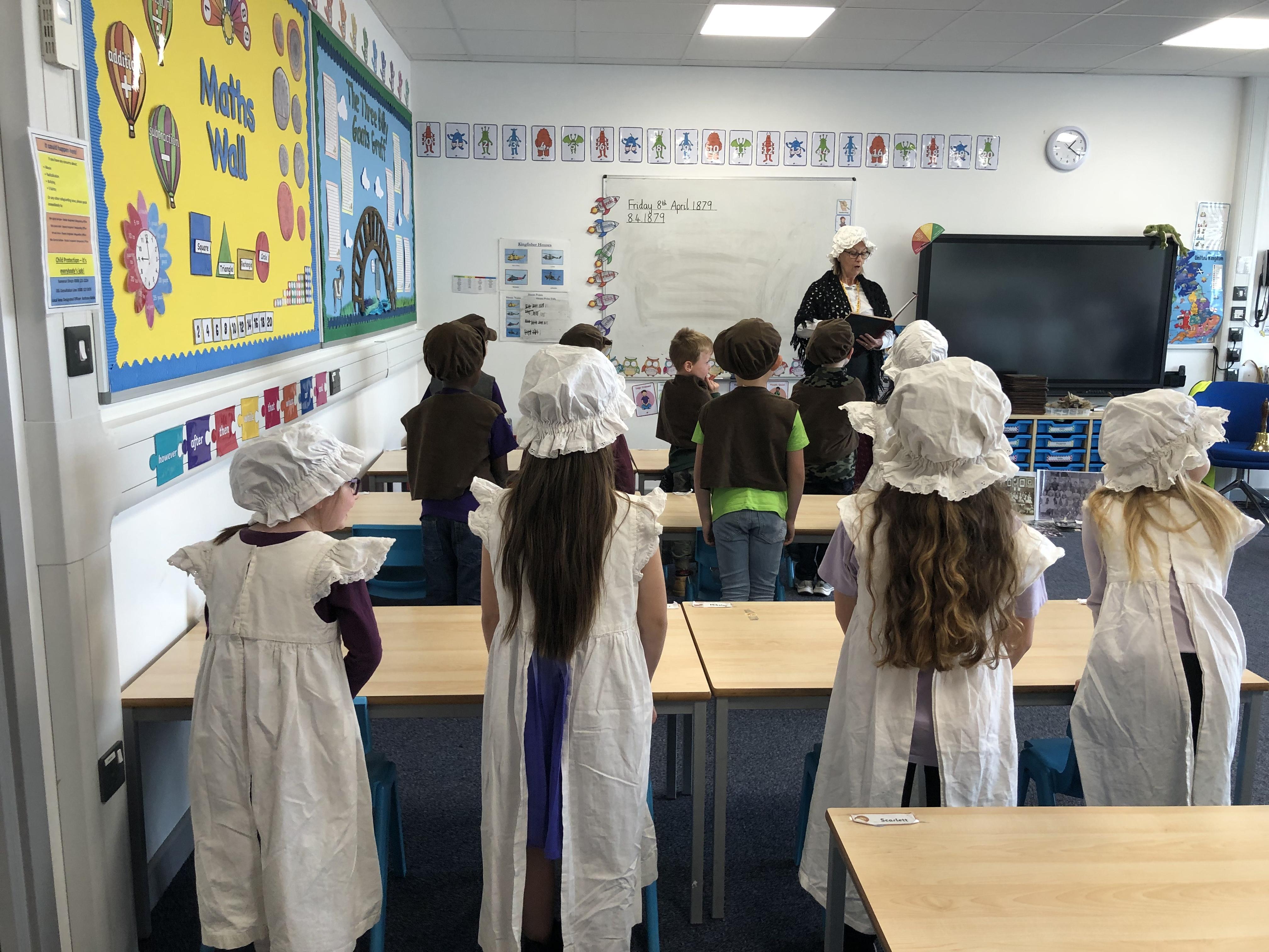 This afternoon, the children were very lucky to have a visit from Sharon from the South West Heritage Trust. She gave the children a glimpse of what school was like for Victorian children. All the children were given the opportunity to dress up as a Victorian school child; a waistcoat and cap for the boys and a dress and bonnet for the girls. The boys and girls were split up in class, just like what happened in Victorian schools and they were able to try out writing on slates. Everyone also had a go at sewing and practising handwriting. Sharon very kindly showed the children a range of Victorian artefacts. It was a really fun afternoon with the children super engaged throughout. It goes without saying that they are all very happy that school life has advanced since the Victorian times.